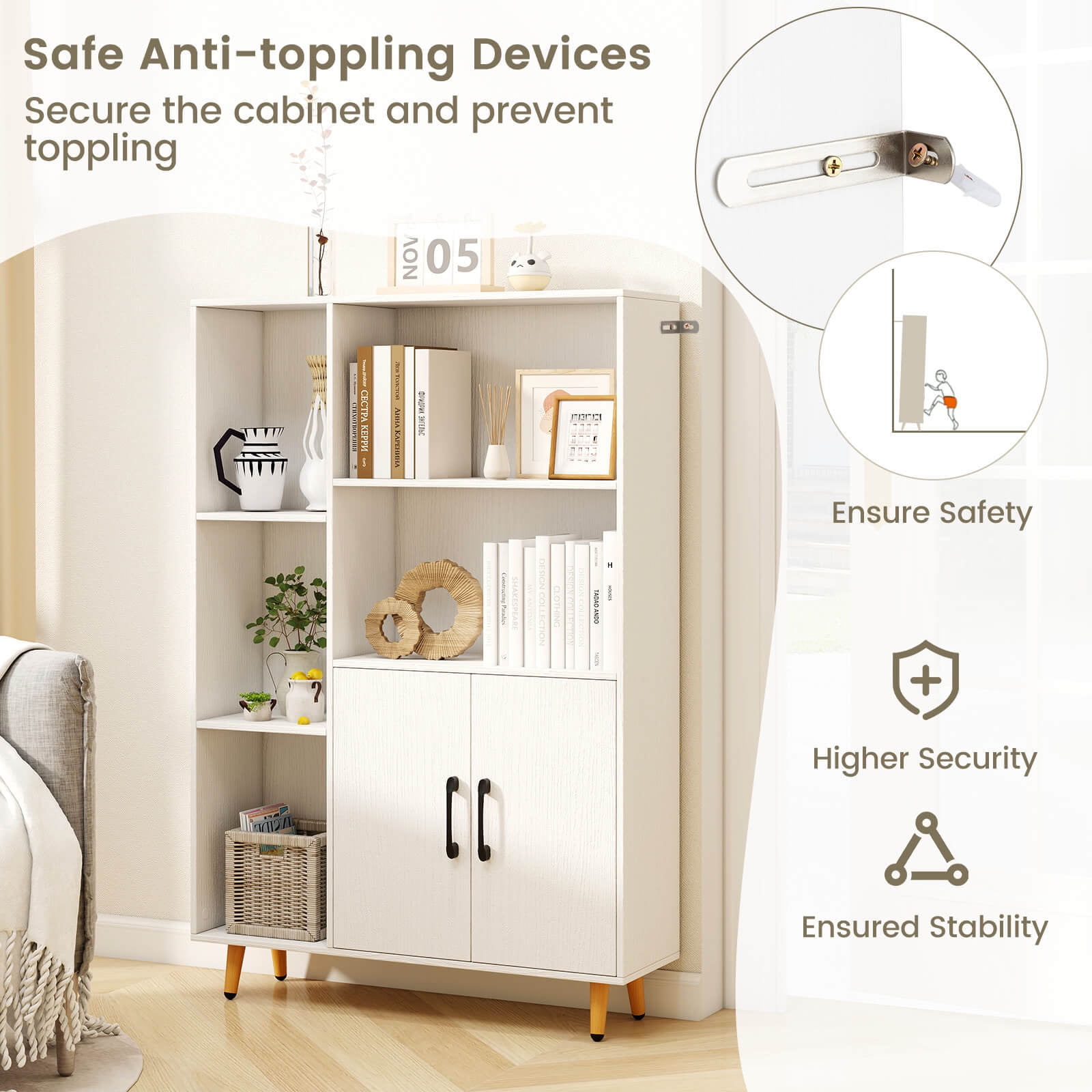 Costway HW63875 Floor Storage Cabinet Free Standing Wooden Display Bookcase Side Decor Furniture