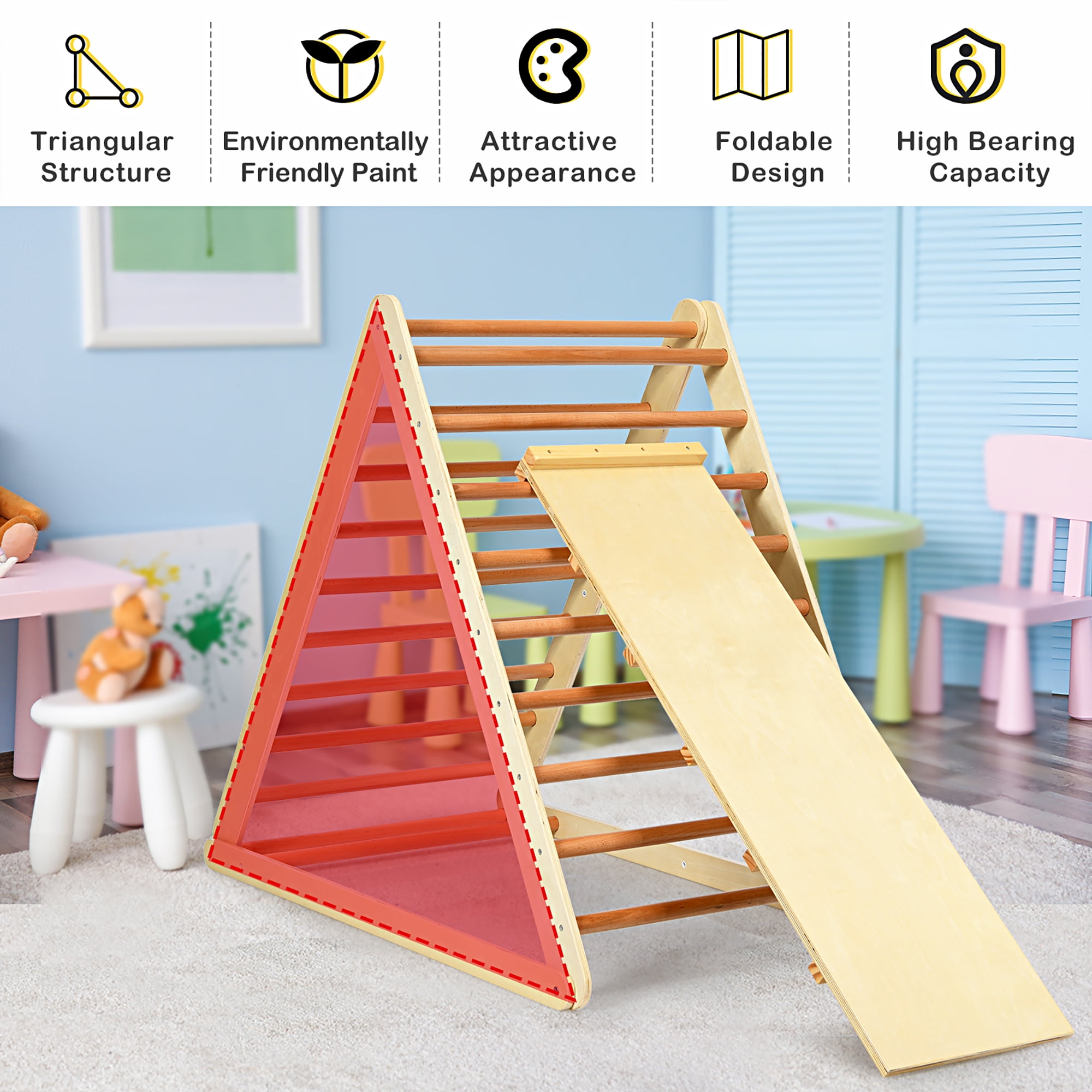 Costway Foldable Wooden Climbing Triangle Indoor Home Climber w/ Ladder for Toddler Baby