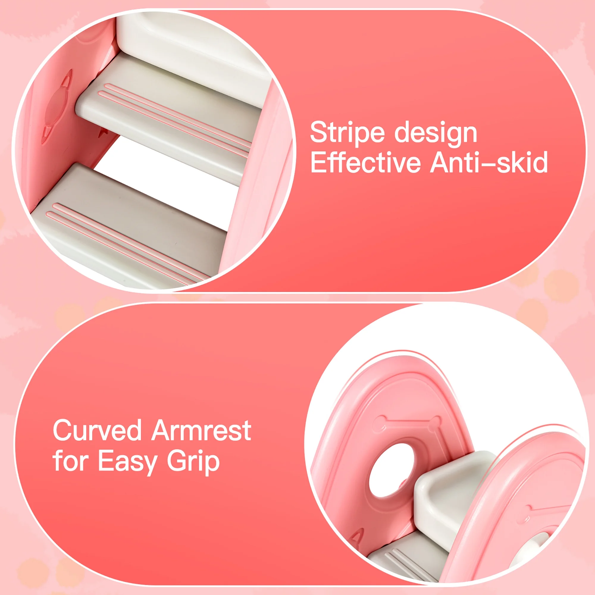 Easy-to-Climb Steps & Smooth Slide: This children’s slide features spacious pedals with anti-slip design, which provides enough space for children to climb. The slide not only has an acceleration zone and a buffer zone, but is also designed with a gentle slope, so that children can play more happily and safely. Higher Handrails & Stable Base: Compared with ordinary slide handrails, this freestanding slide comes with a higher handrail height, so your children can play the slide more safely. The ladders and slides adopt a triangular structure system and are equipped with fixed nuts, which are more solid while bringing good load-bearing. Safe HDPE Material: Made of high-quality HDPE thick material, this toddler slide is odorless and sturdy, providing a safe playing environment for your kids. The surface of the slide is well polished and the edges are not sharp, so it will not harm the baby’s delicate skin and scratched clothing fabrics. Easy to Assemble &Convenient to Carry: You only need to tighten the nut to easily fix the nut without any tools. It only takes a few minutes to complete the installation, which is simple and convenient. In addition, you can move the slide to different places effortlessly due to the light weight. User friendly Design: When babies slide or climb steps, the kid slide will practice their coordination and improve their balance. As long as the smooth surface is cleaned gently with a wipe rag, it saves time and effort. The non-slip foot pads effectively prevent the floor from scratching when the slide moves.