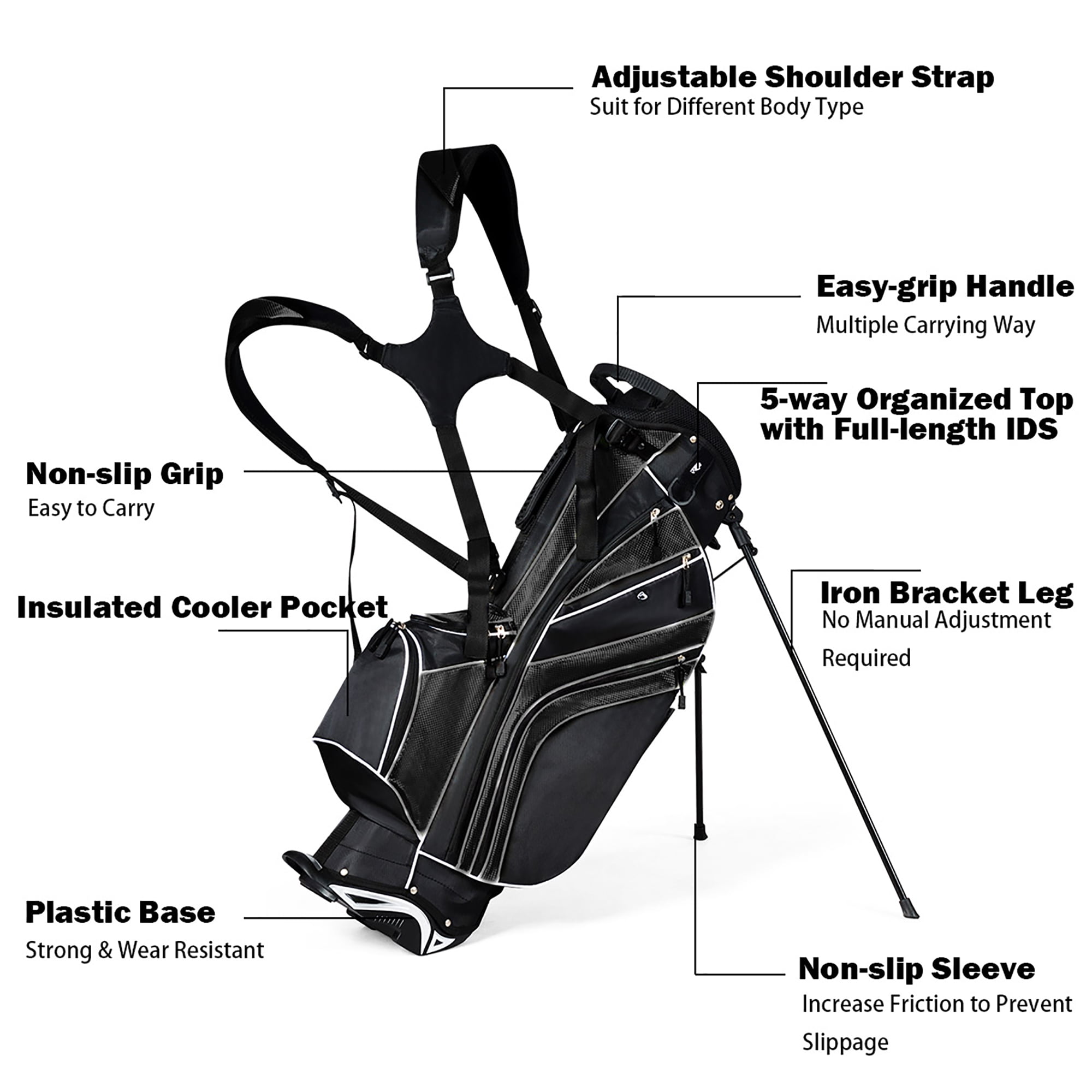 Costway Golf Stand Cart Bag Club w/6 Way Divider Carry Organizer Pockets Storage Black