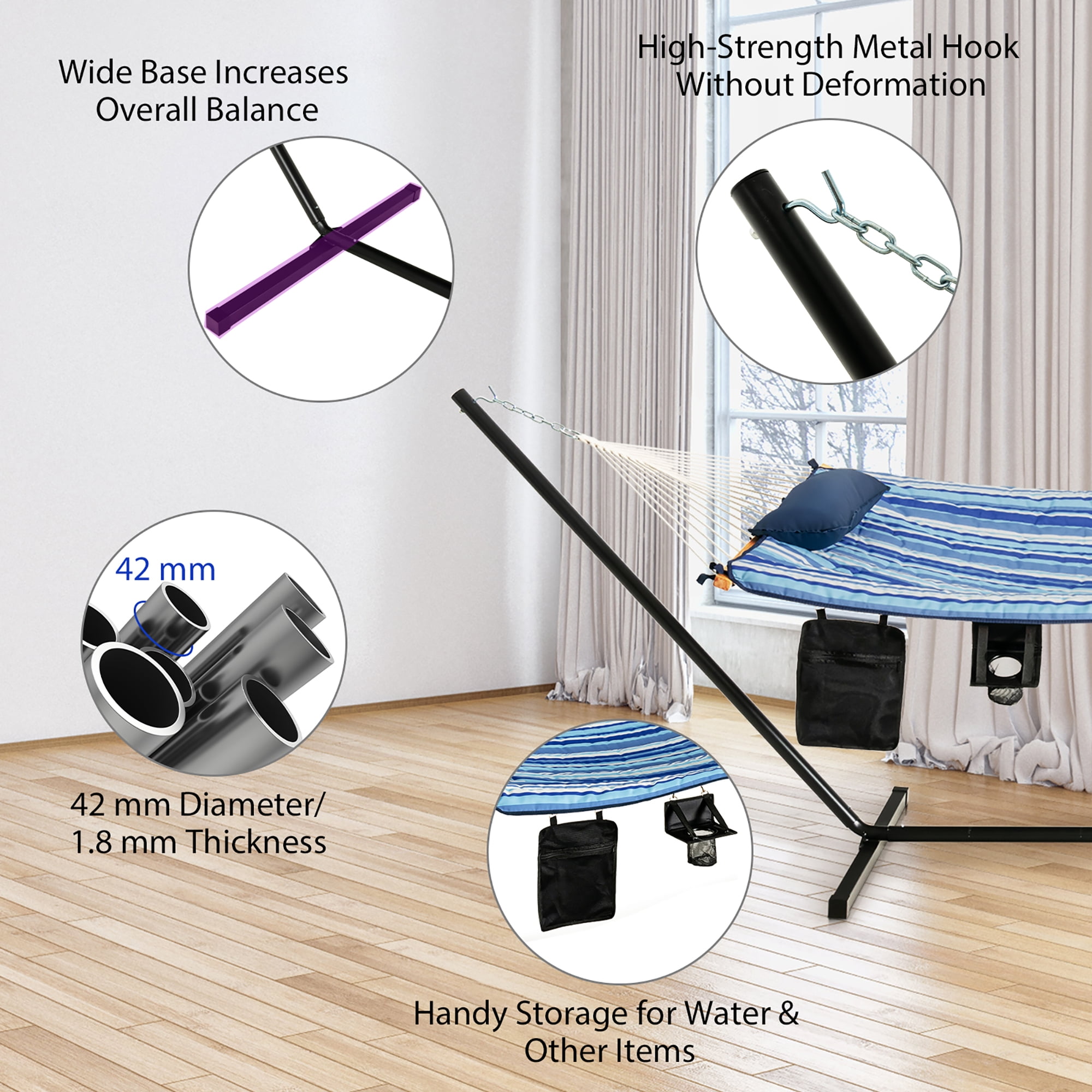 Costway Hammock Chair Stand Set Cotton Swing w/ Pillow Cup Holder Indoor Outdoor