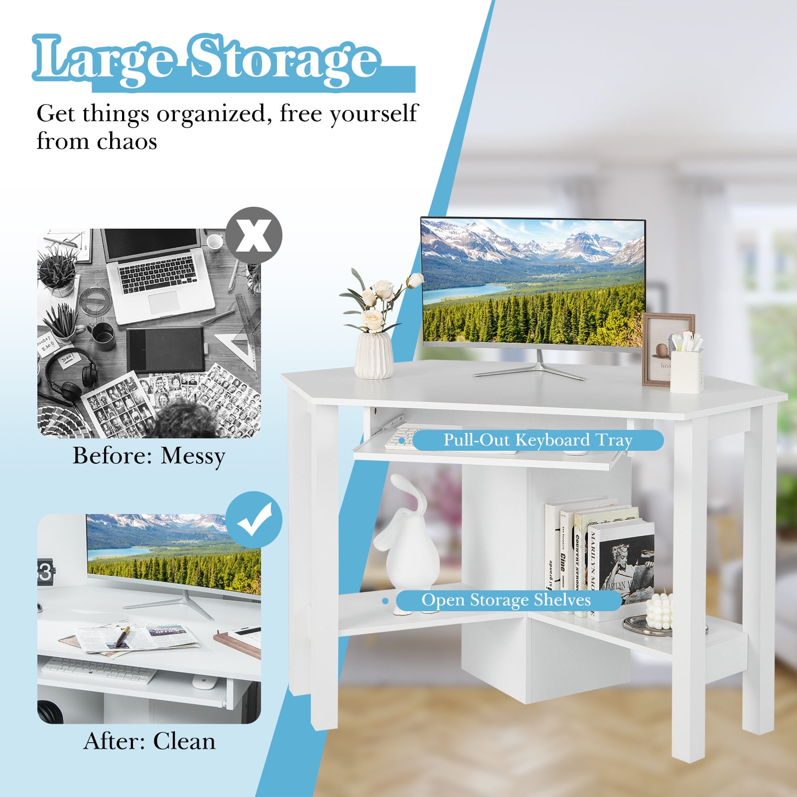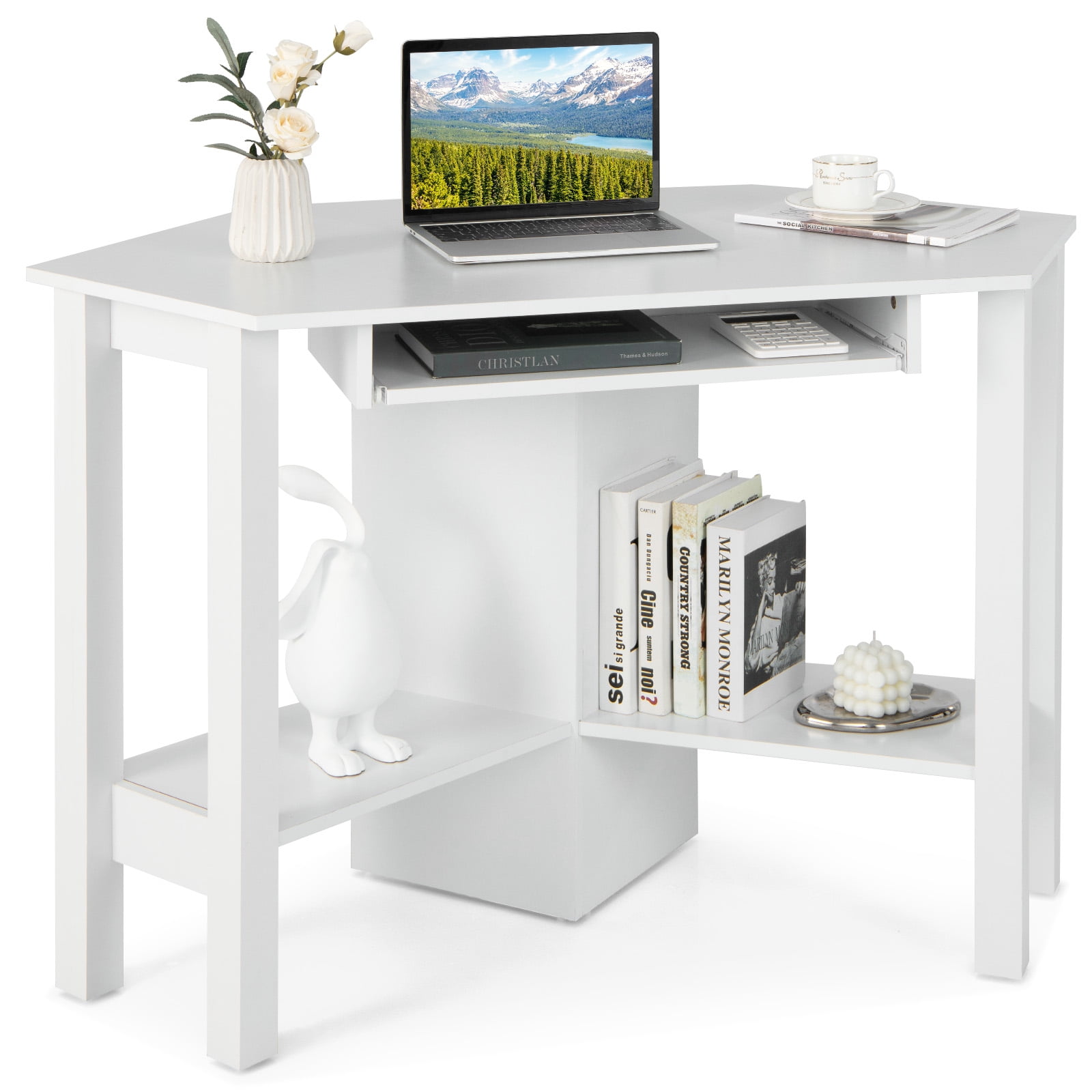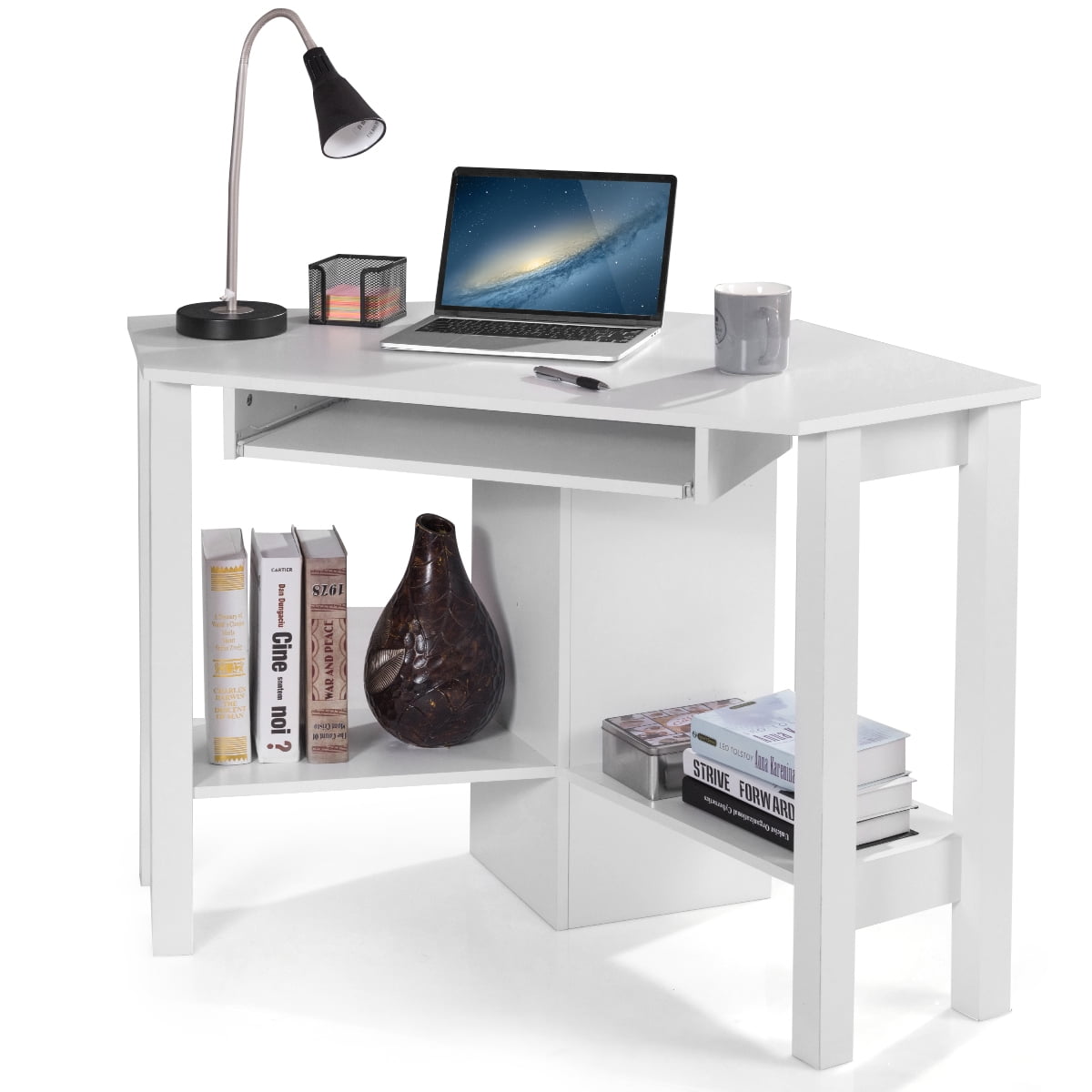 Costway Implied as Simple and Elegant Corner Desk with Drawer and Shelves, White