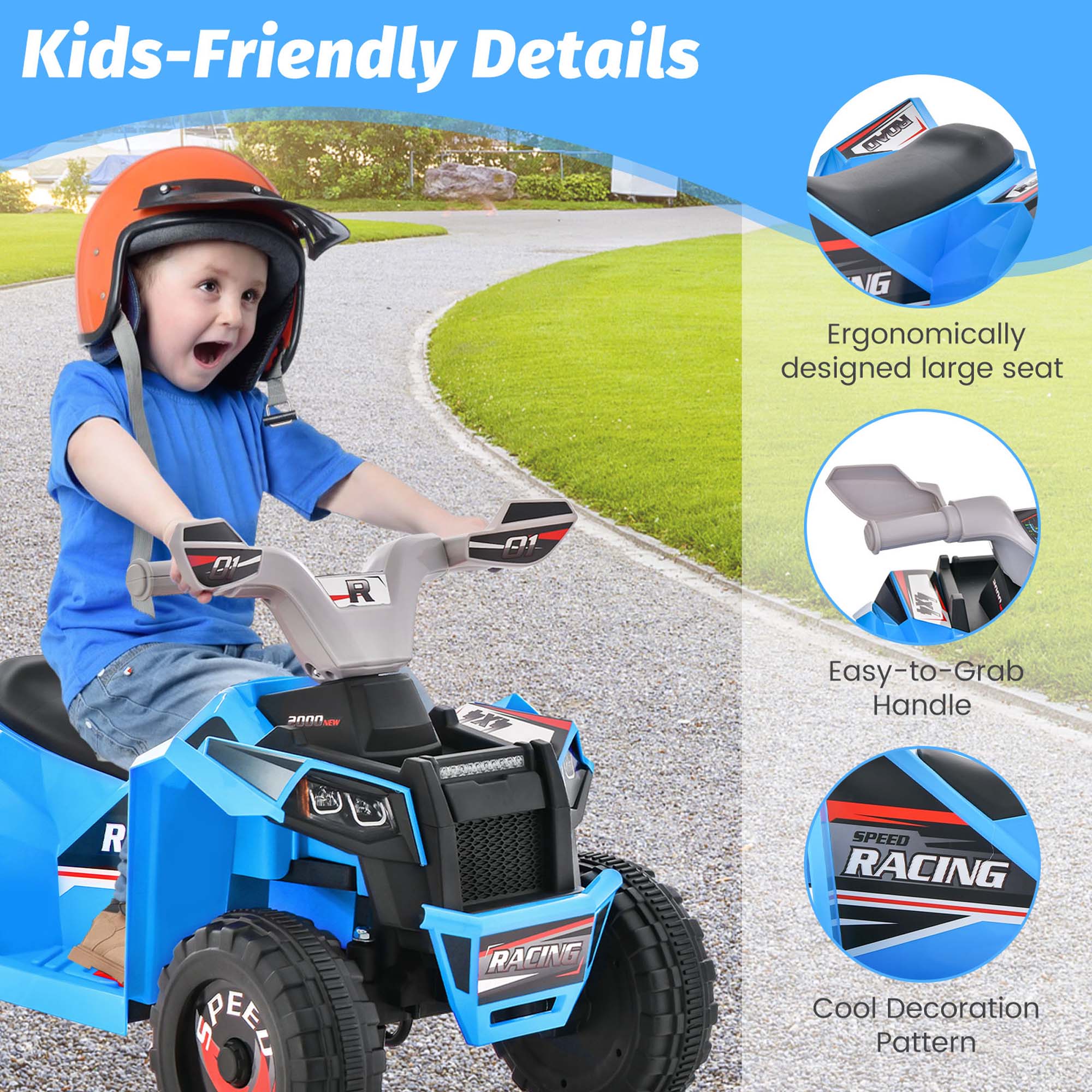 Costway Kids Ride on ATV 4 Wheeler Quad Toy Car 6V Battery Powered Motorized Toy Blue