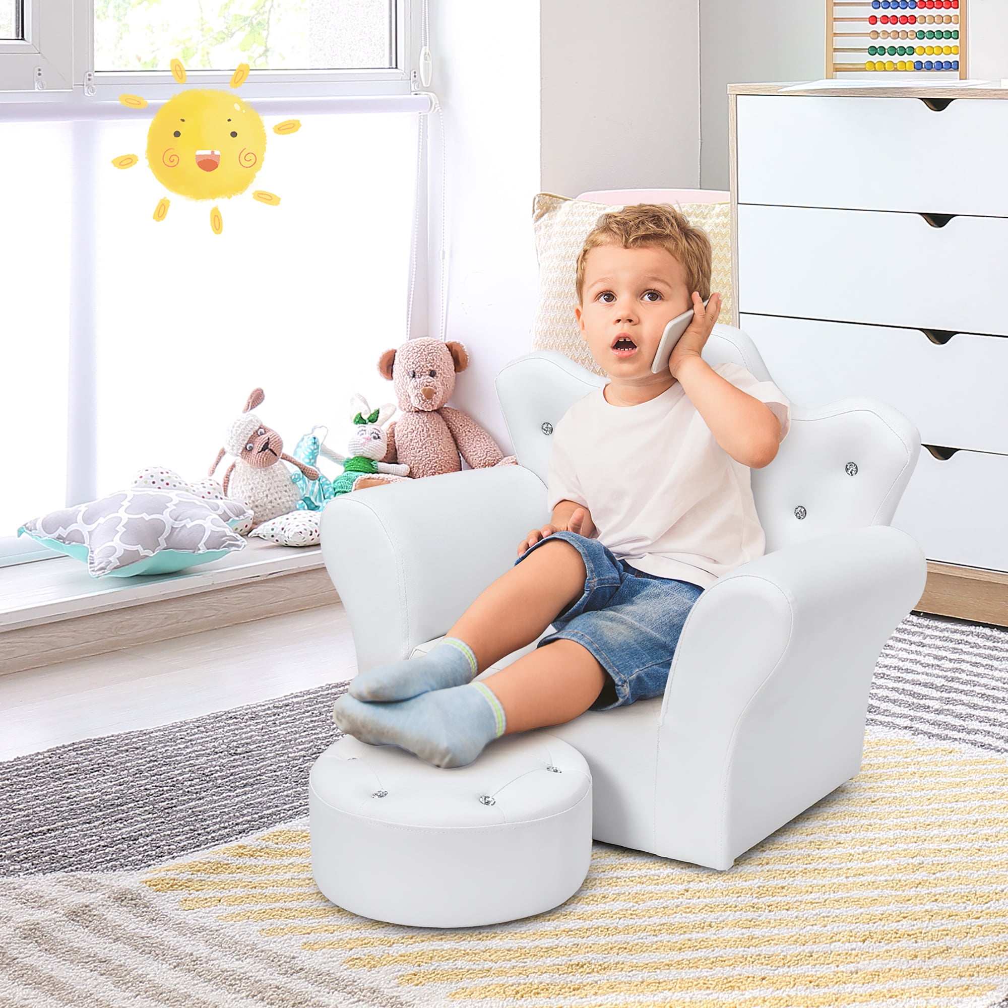 Costway Kids Sofa Toddler Couch Princess Armchair Children Gift with Ottoman White