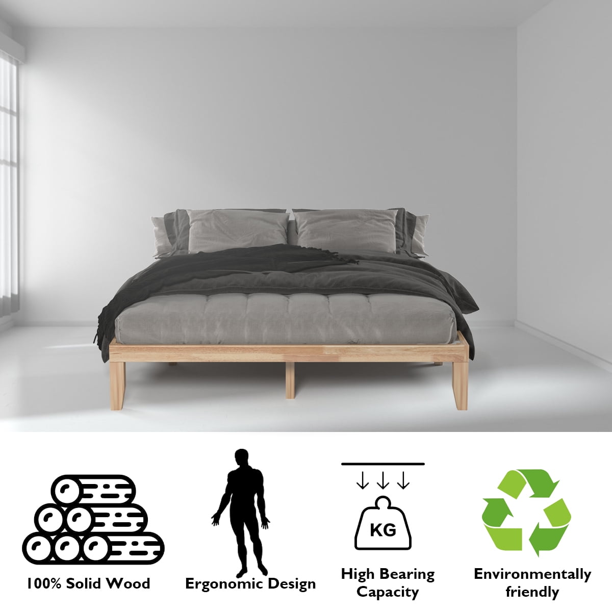 sturdy Solid Wood Frame: Made of solid wood, this frame of this wooden bed is not easy to be affected by humidity change and lead to crack. 4 strong legs in the middle of bed and other 6 support legs in the side ensure the stableness. In addition, 14 thickened bed boards are on the top which can arrange the weight of mattress evenly. Stylish Design with Premium Accessories: Designed in modern and concise style, this wooden bed will match really well with the rest of your furniture or decors. And equipped with antirust and strong accessories, the parts of our bed are tightly connected with each other. It won’t make noise when you turn over on the bed. Multipurpose for Different Scenes: Most of children and adults can use our classical wooden bed. Designed in suitable size, not only the bed can be placed in your bedroom but also for some other places like apartment, hotel and so on. Our wooden bed will meet your different needs perfectly. Provide Additional Storage Space: Under the wooden bed, there is plenty of room for you to store some things like storage boxes, suitcases and luggages and it is easy to take them out. The height between floor and the board of bed is about 10.5 inches. Your room will be clean and neat after you put them under your bed. Easy to Assemble: All the necessary accessories and the detailed installation instructions are packaged well in the parcel. Therefore, it is even not difficult to install our wooden bed by yourself in short time according to the instructions step by following steps.