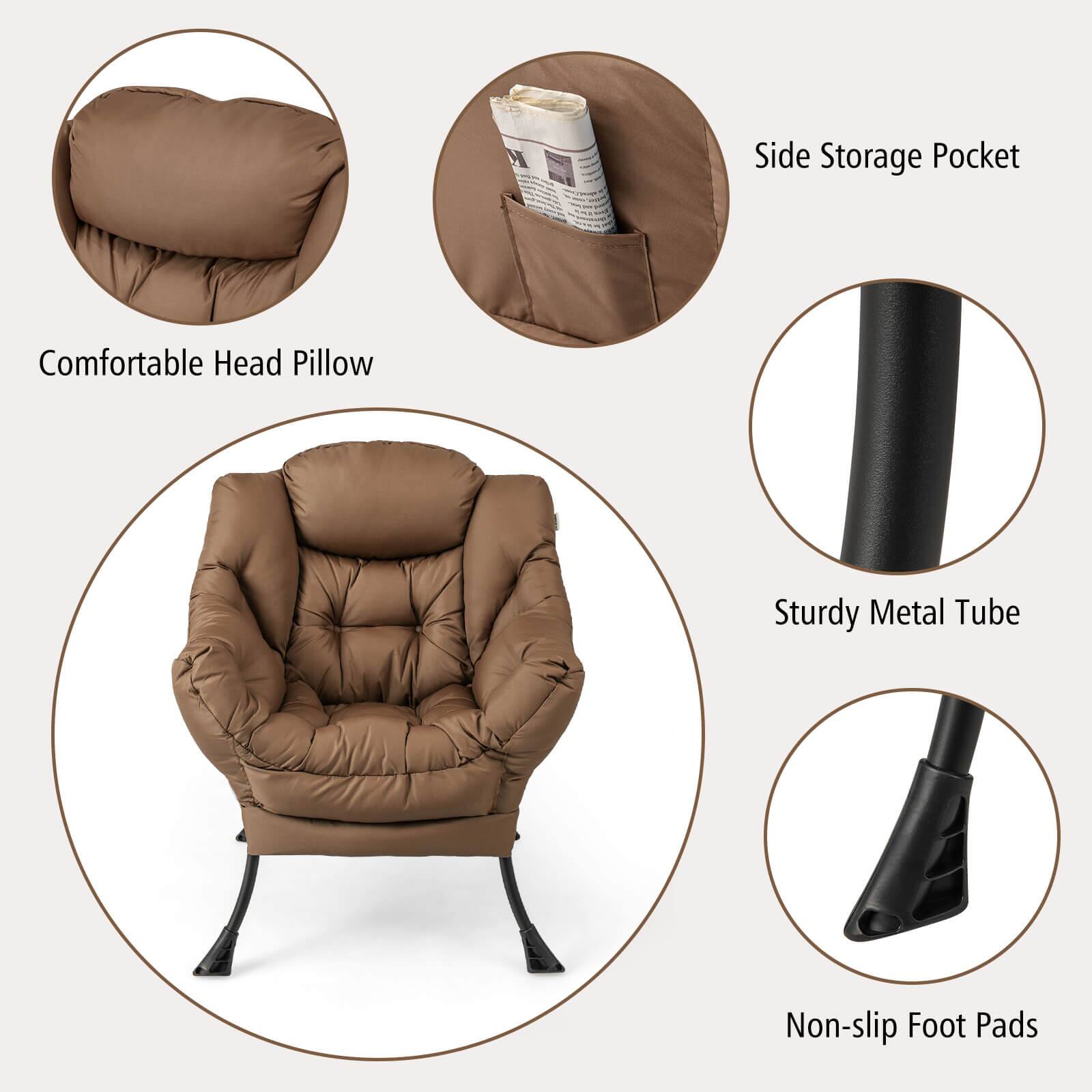 - Product Name: Lazy Sofa Chair with Folding Footrest and Storage Pocket