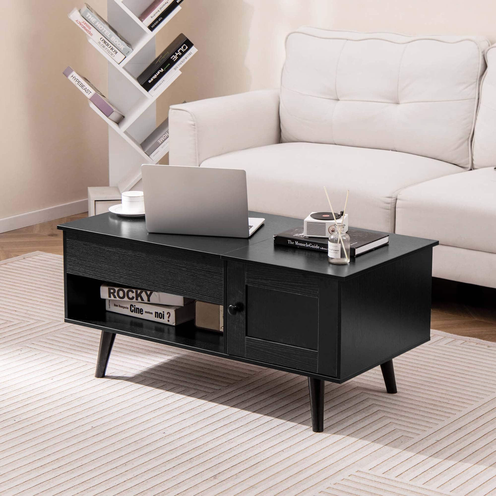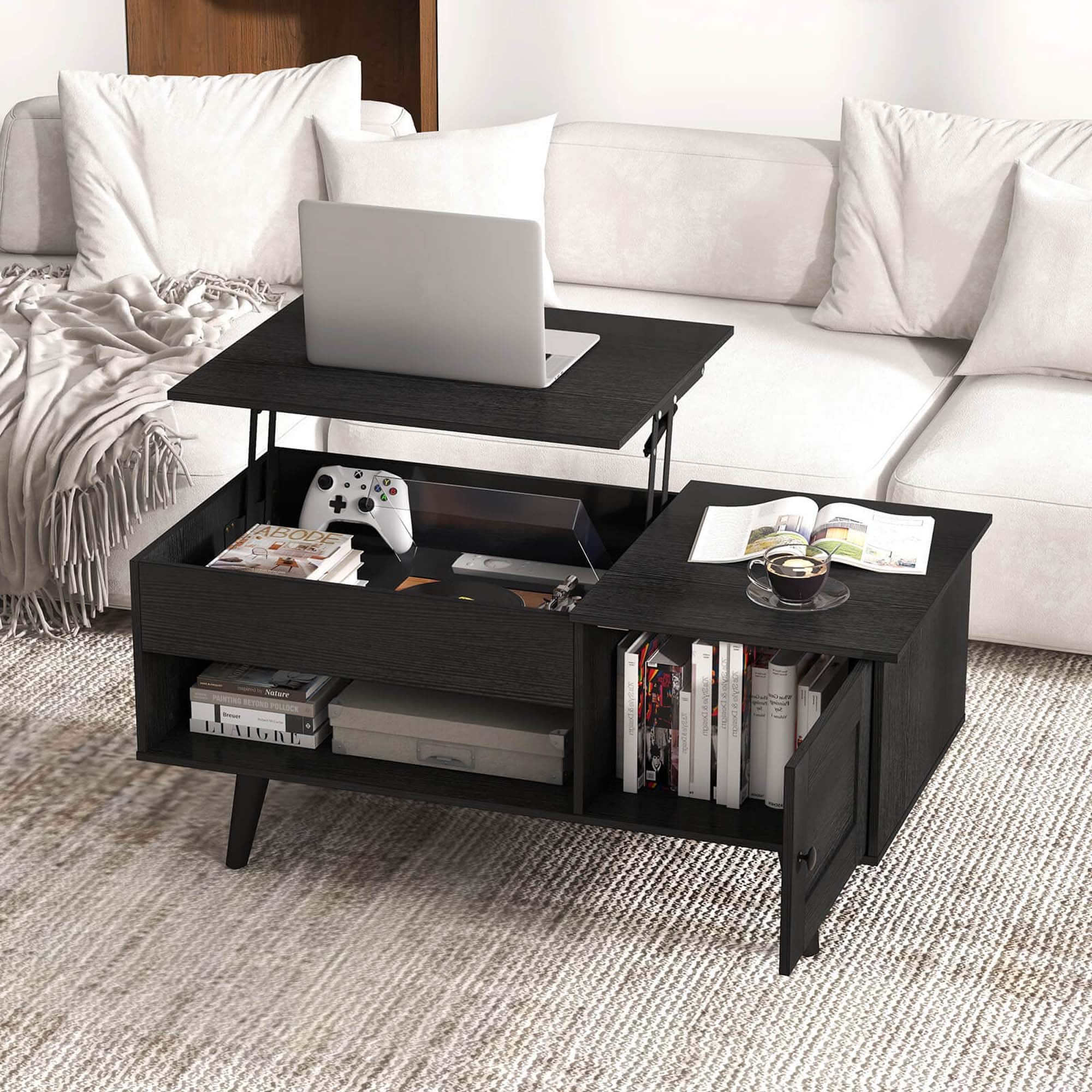 - Product Name: Lift Top Coffee Table with Storage Hidden Compartment Cabinet & Open Shelf Black