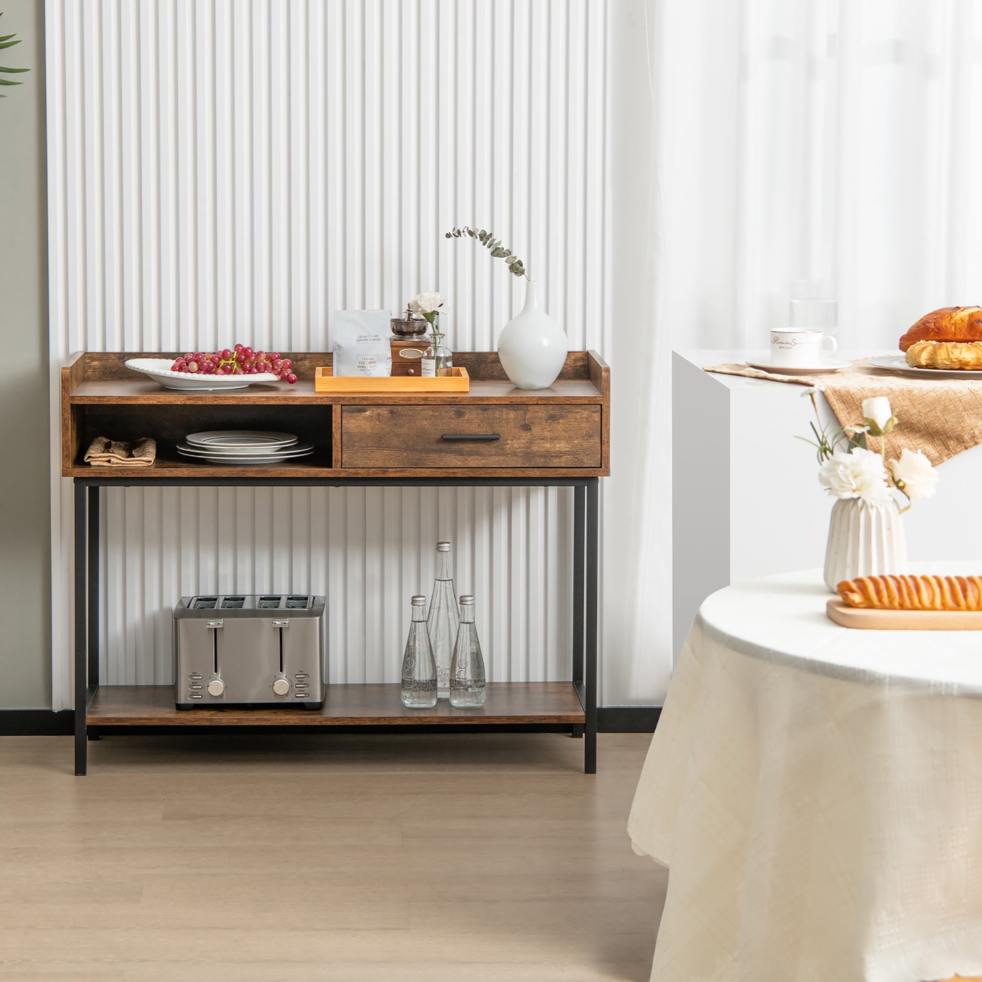 Costway Long Console Couch Side Table withDrawer Metal Frame for Living Room Entryway