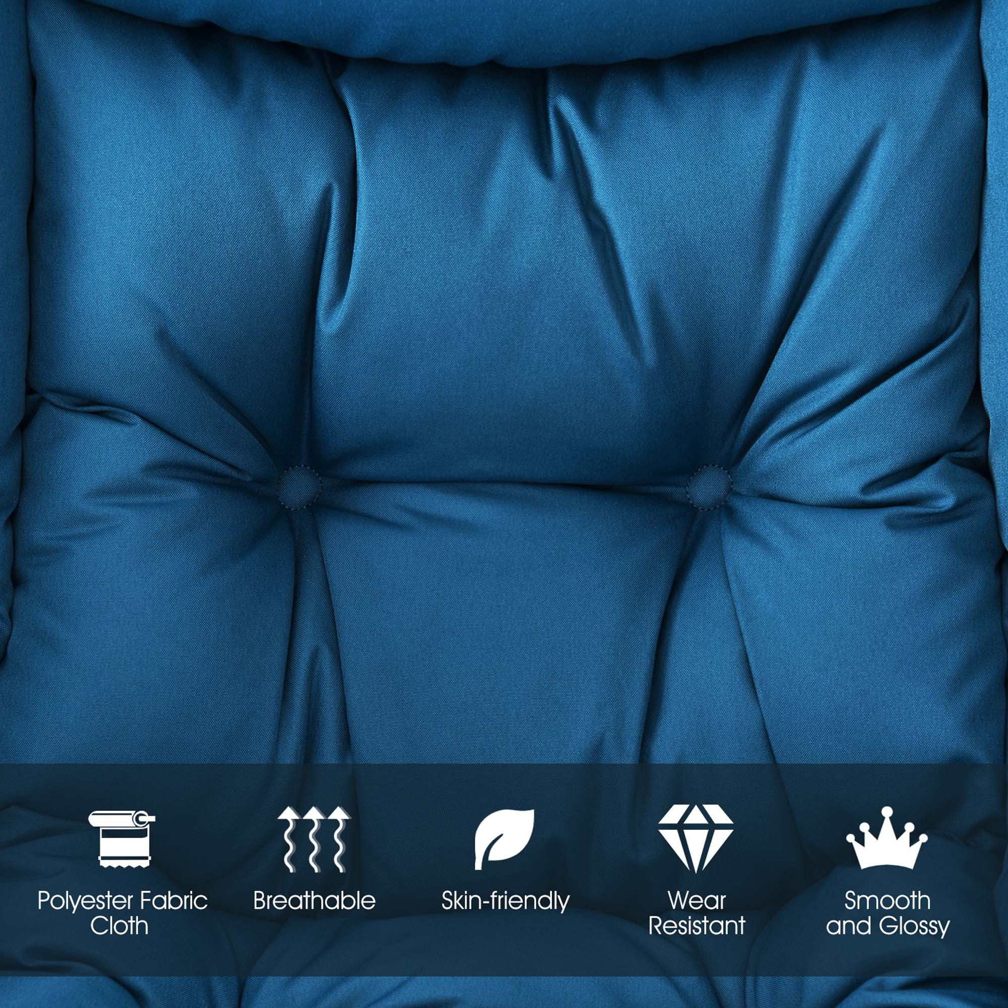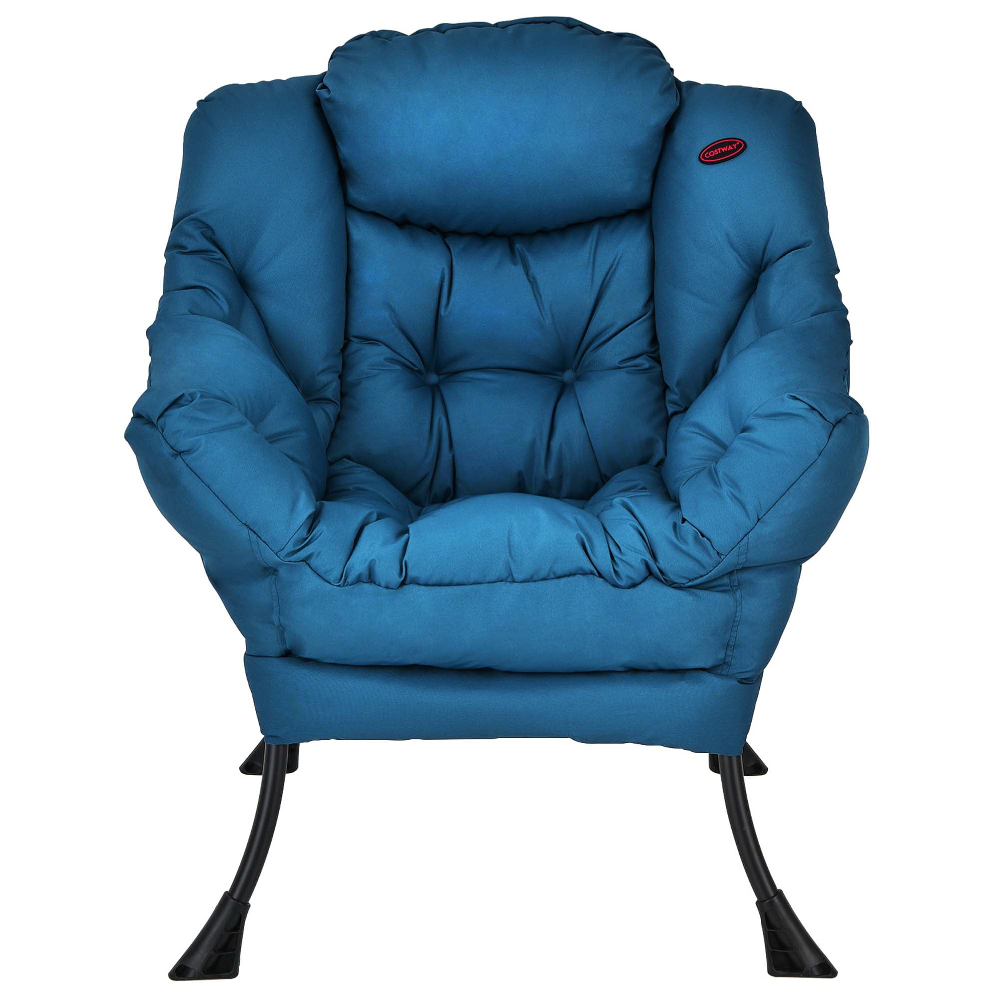 Costway Modern Polyester Fabric Lazy Chair Single Sofa Chair w/ Side Pocket Navy