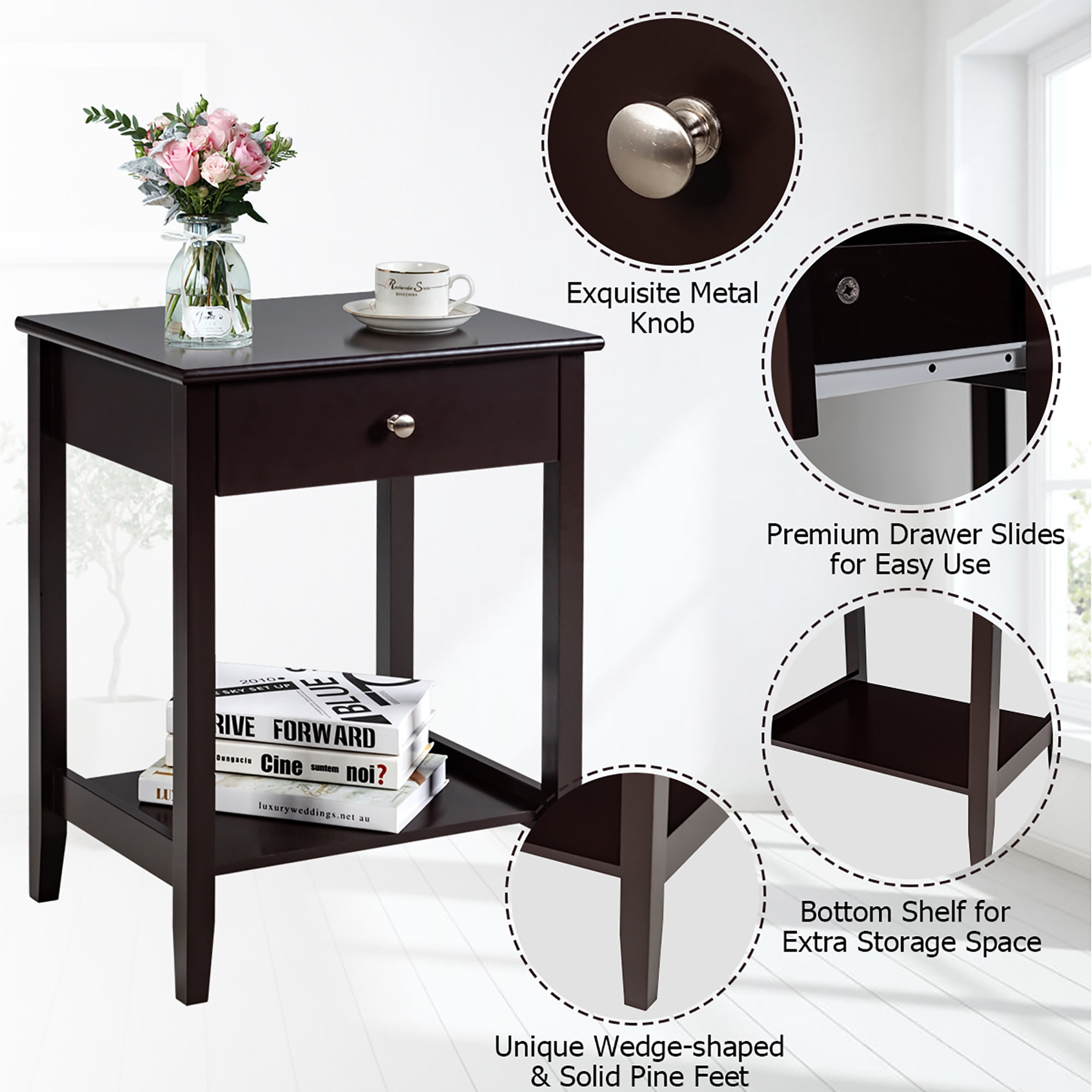 Costway Nightstand End Table Storage Display Bedroom Furniture Drawer Shelf Beside Brown