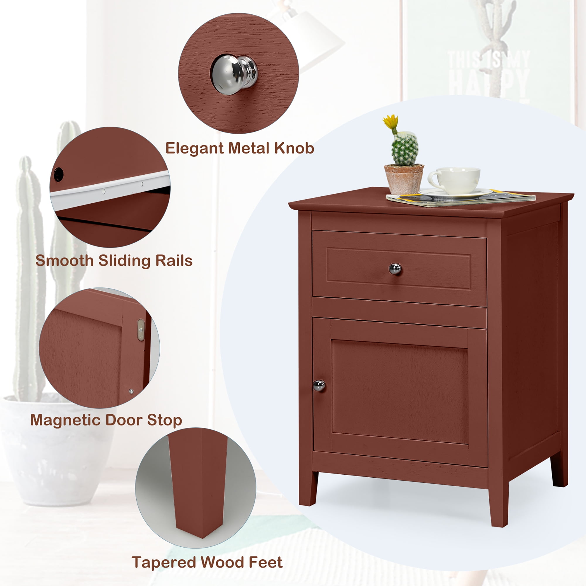 Costway Nightstand with Drawer Accent Side End Table Storage Cabinet Cherry