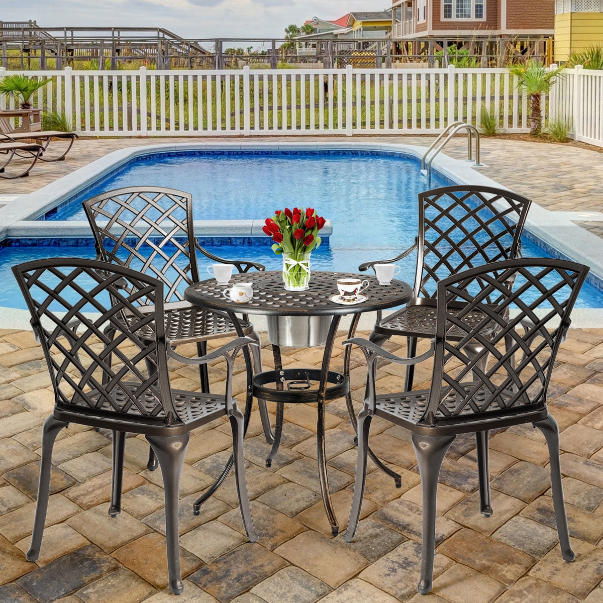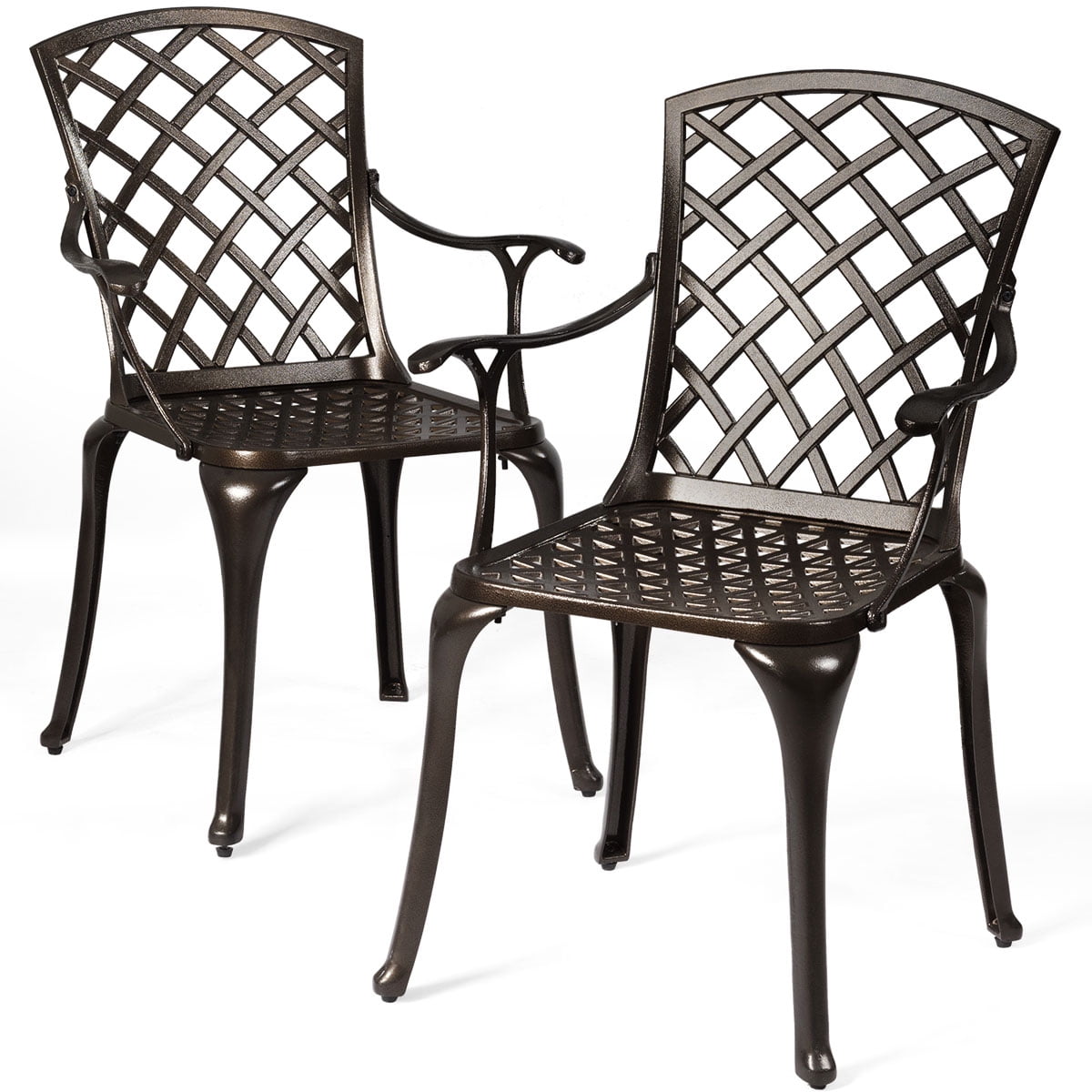 Are you finding some suitable chairs to match your dining table or other furniture? Our 2 pieces chairs may help you to solve this problem. These chairs have cast aluminum solid construction to ensure large weight capacity and sturdy use. Every detail is designed for incredible comfort. The curved designed of back and seat offer ergonomic support while relieving tension and allowing your muscles to relax. And at the bottom of every foot, there is an adjustable knob to help you to keep the chair stable. They are not only a perfect d��cor to your house but also create more comfortable outdoor experience for you to be used for most outdoor scenes. It’s the ideal choice for outdoor amusement, such as garden, porch or yard. Enjoy your great time with your family or your valued friends on these excellent outdoor chairs. Don’t hesitate to buy them. Feature sturdy and sturdy cast aluminum construction Special hollow back and seat design Perfect for outdoor or indoor use Feet designed with adjustable knob to keep stable Ergonomic design for comfortable experience Some installation tools in the parcel Large capacity of the 2 chairs Anti-rust and weather resistant power-coated suitable outdoor use Assembled easily by yourself Specification Material: Aluminum Color: Bronze Product Weight: 27.5lbs Weight Capacity: 242lbs Overall Size: 20.5” x 19” x 37” (WXDXH) Height of Seat: 18.5” Height of Armrest: 26.5” Package include 2 pieces of chairs 2X Chairs An installation manual 1x Instruction