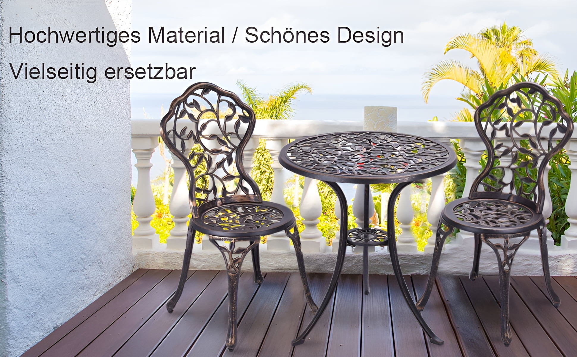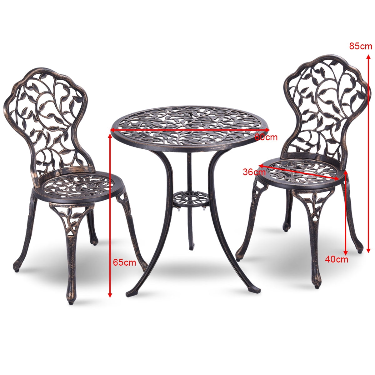 Costway Outdoor Patio Furniture leaf Design Cast Aluminum Bistro Set Antique Copper