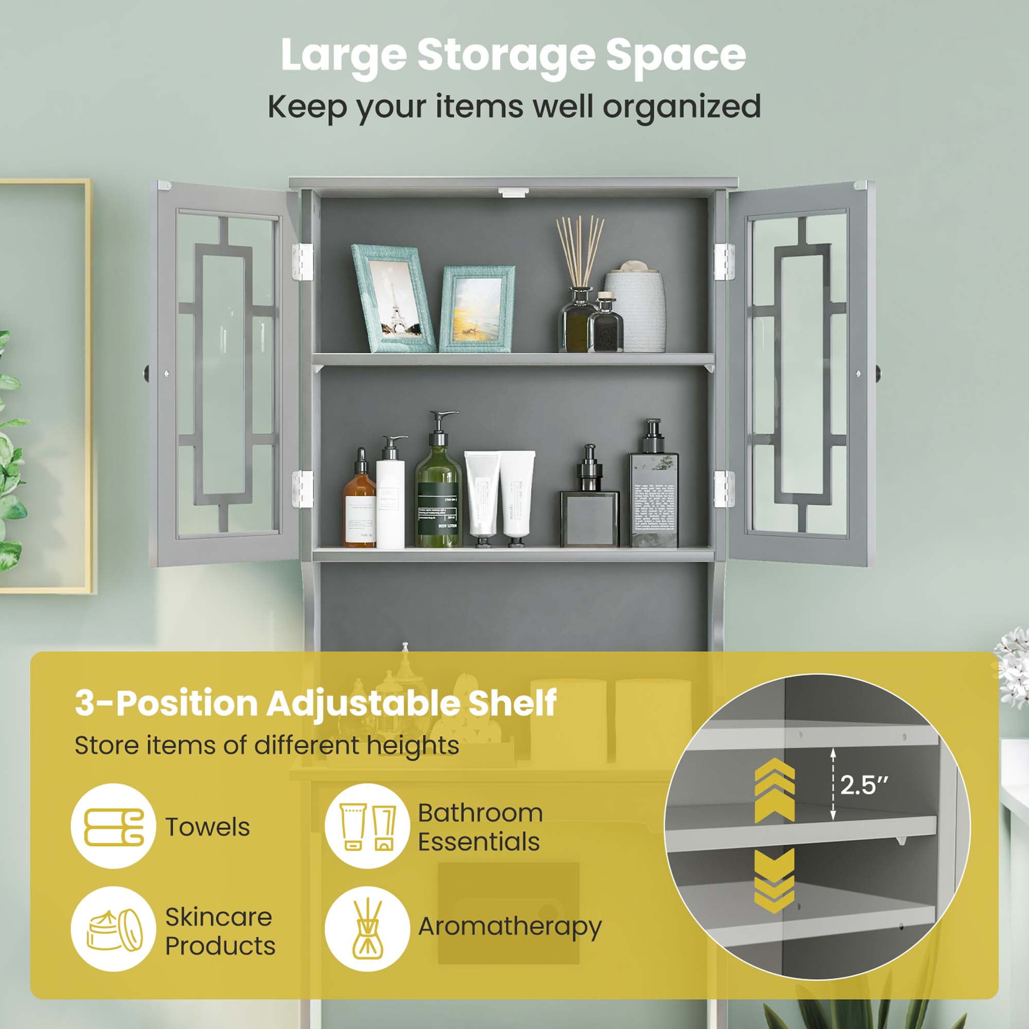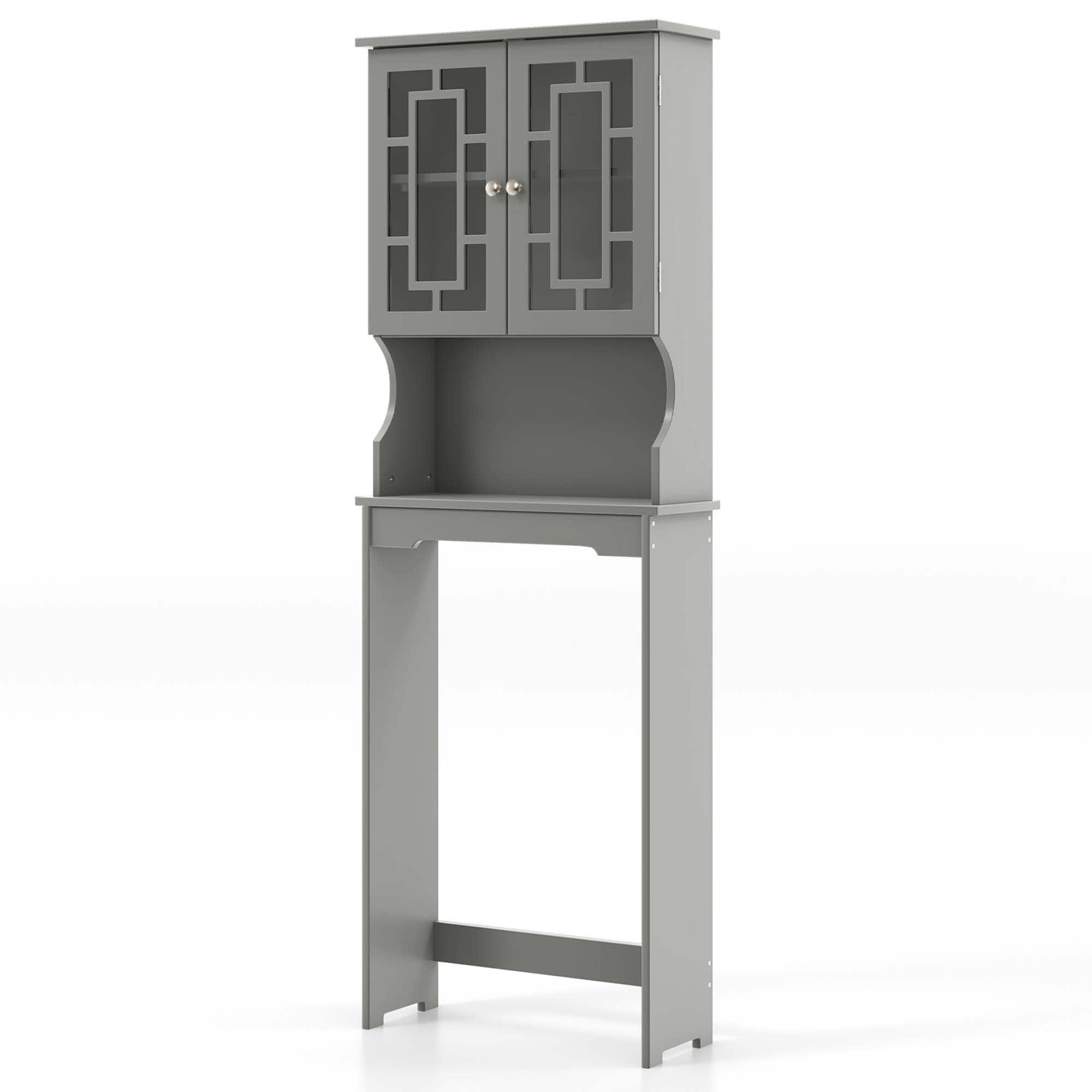 Costway Over the Toilet Storage Bathroom Spacesaver Cabinet Tower Organizer Shelf & Doors Grey