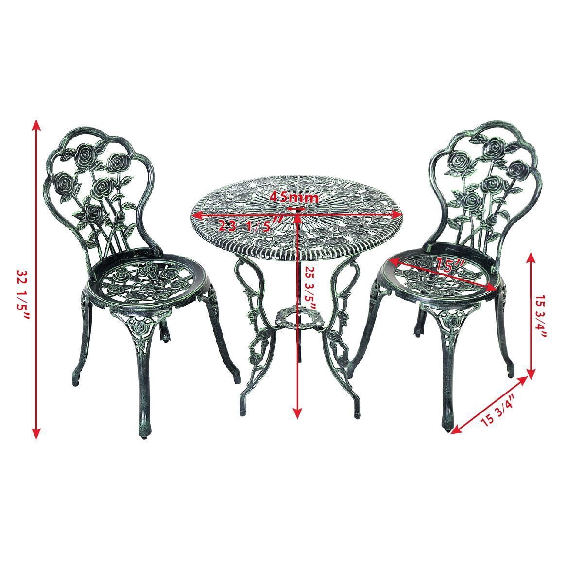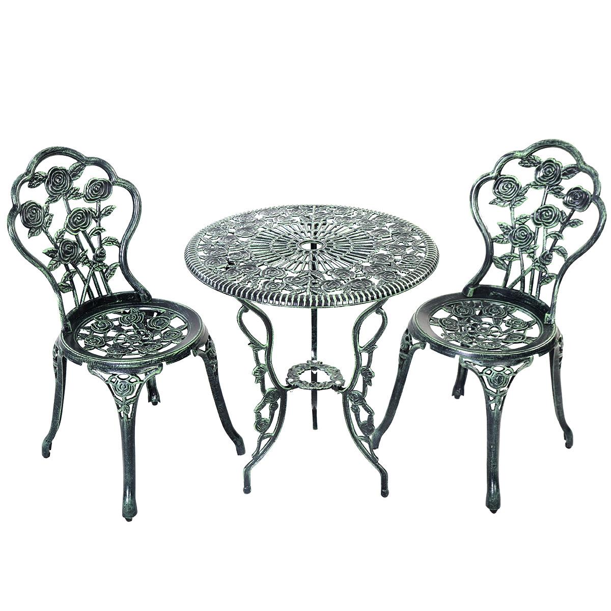 Costway Patio Furniture Cast Aluminum Rose Design Bistro Set Antique Green (Green)