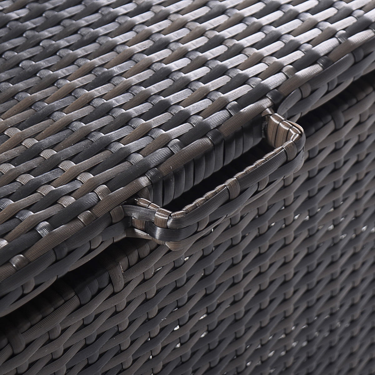 Lightweight Yet sturdy And Stable Construction With two rattan shelf for place drinks, snacks, and bottles Drains easily with inner drainage hole With a rattan handle for easily open and close top lidWith four Universal wheels for labor-saving movement Overall dimension:44.5″x23″x35″(LXWXH)