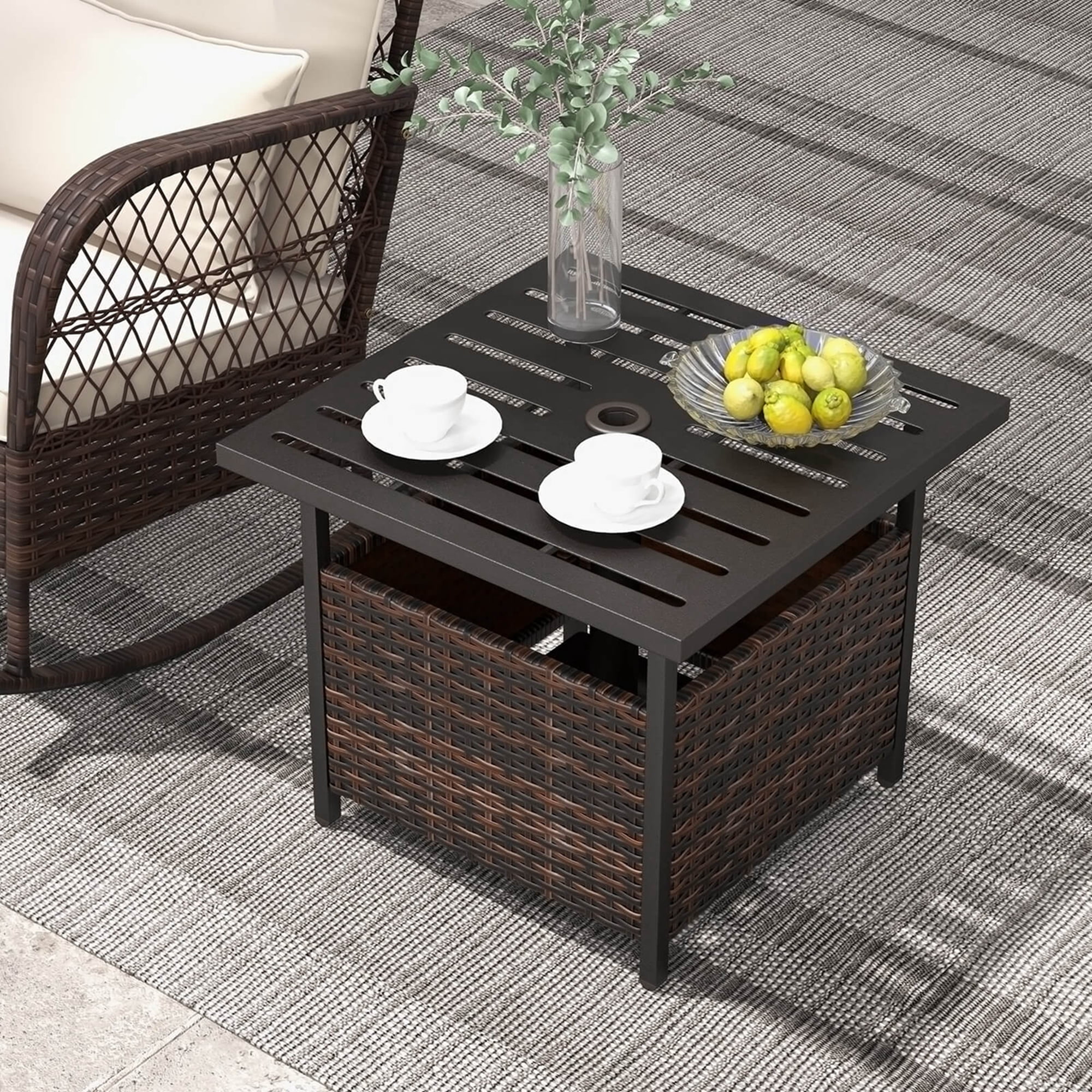 Costway Rattan Wicker Steel Side Table Outdoor Furniture Deck Garden Patio Pool Brown