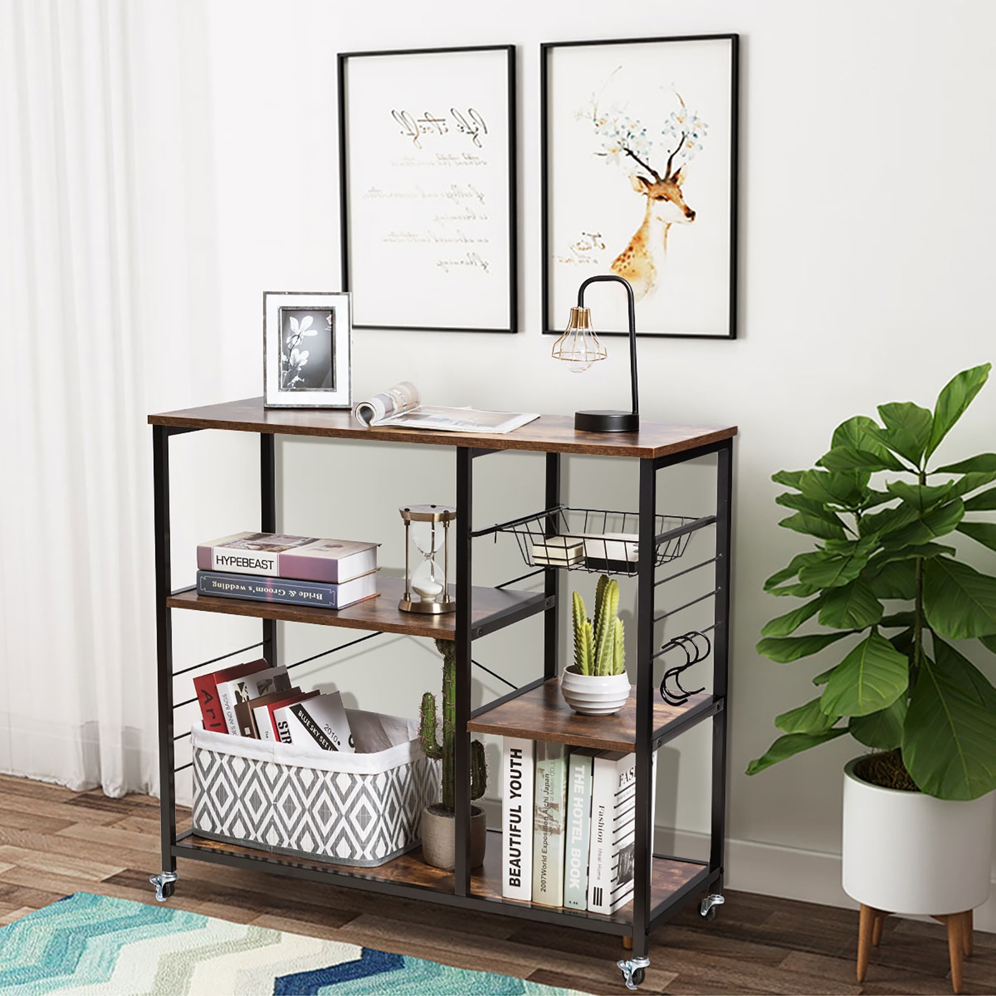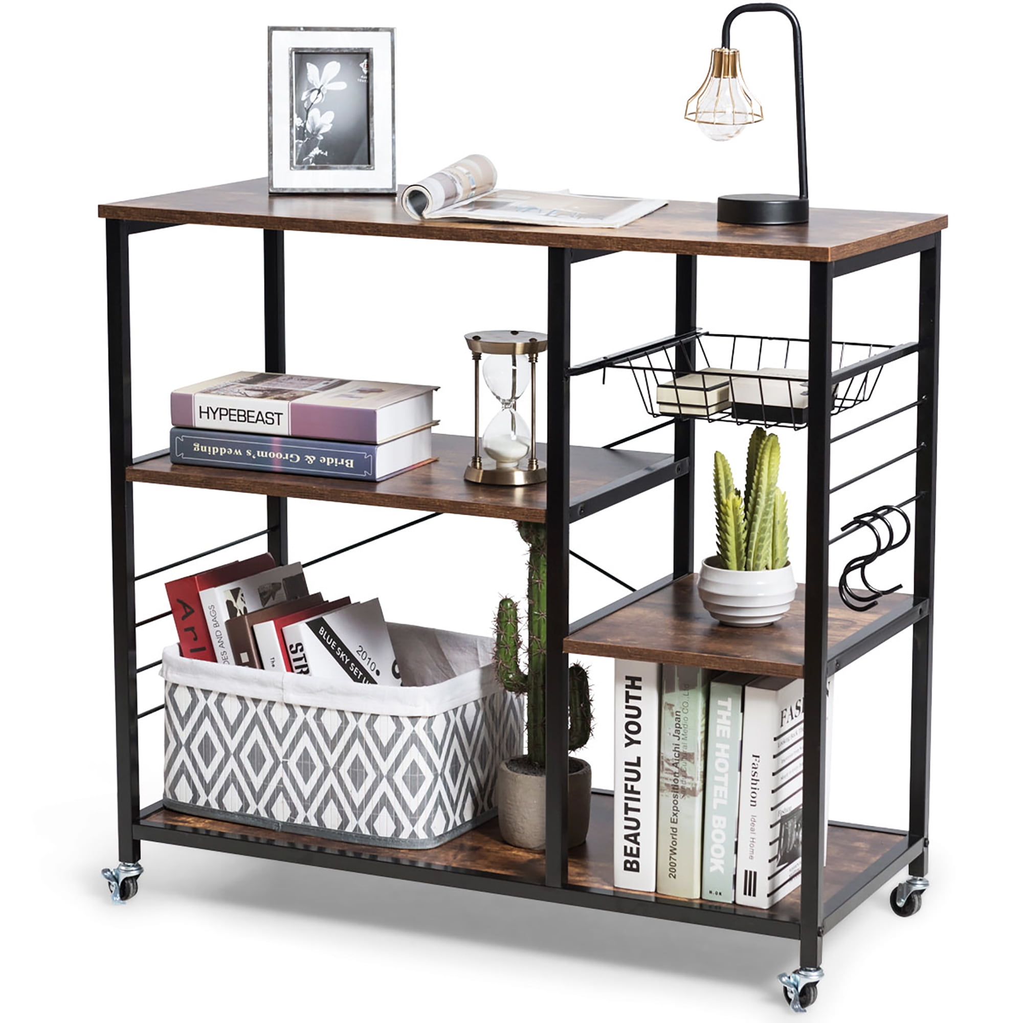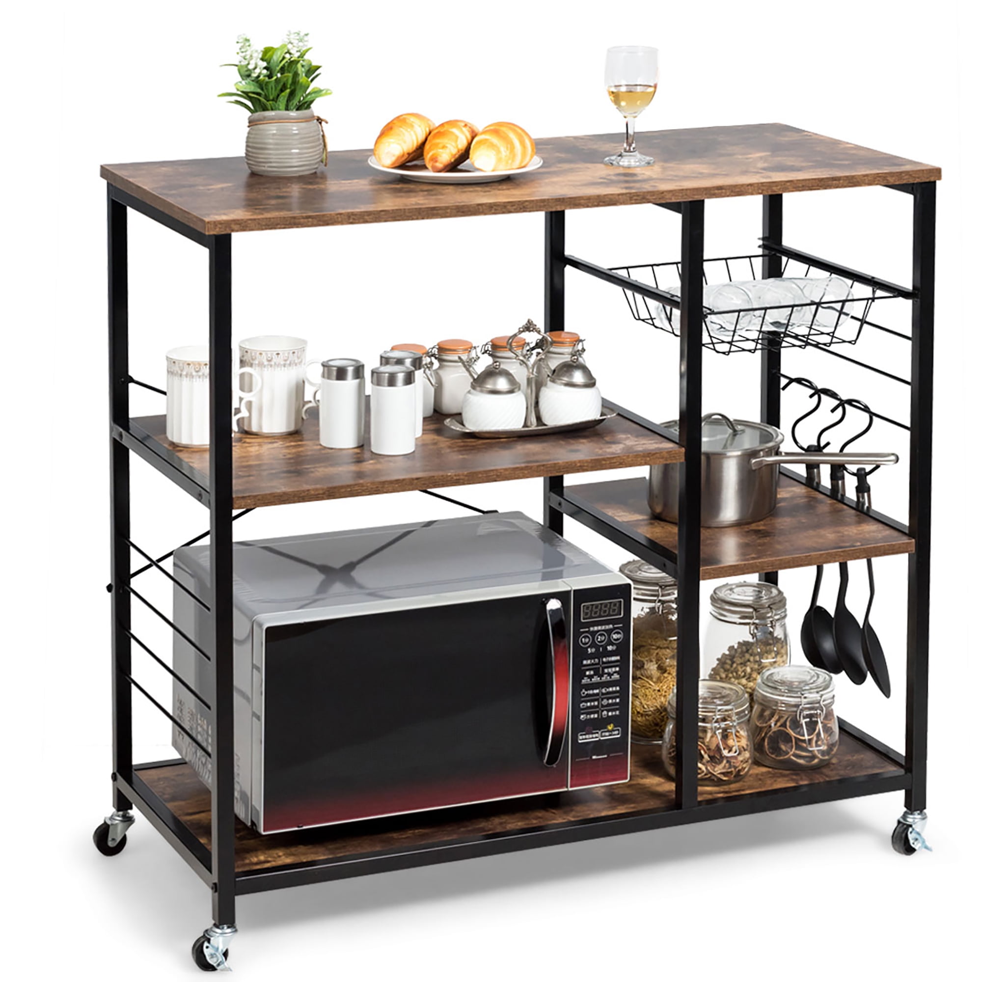 Costway Rolling Industrial Kitchen Baker’s Rack Wood Black