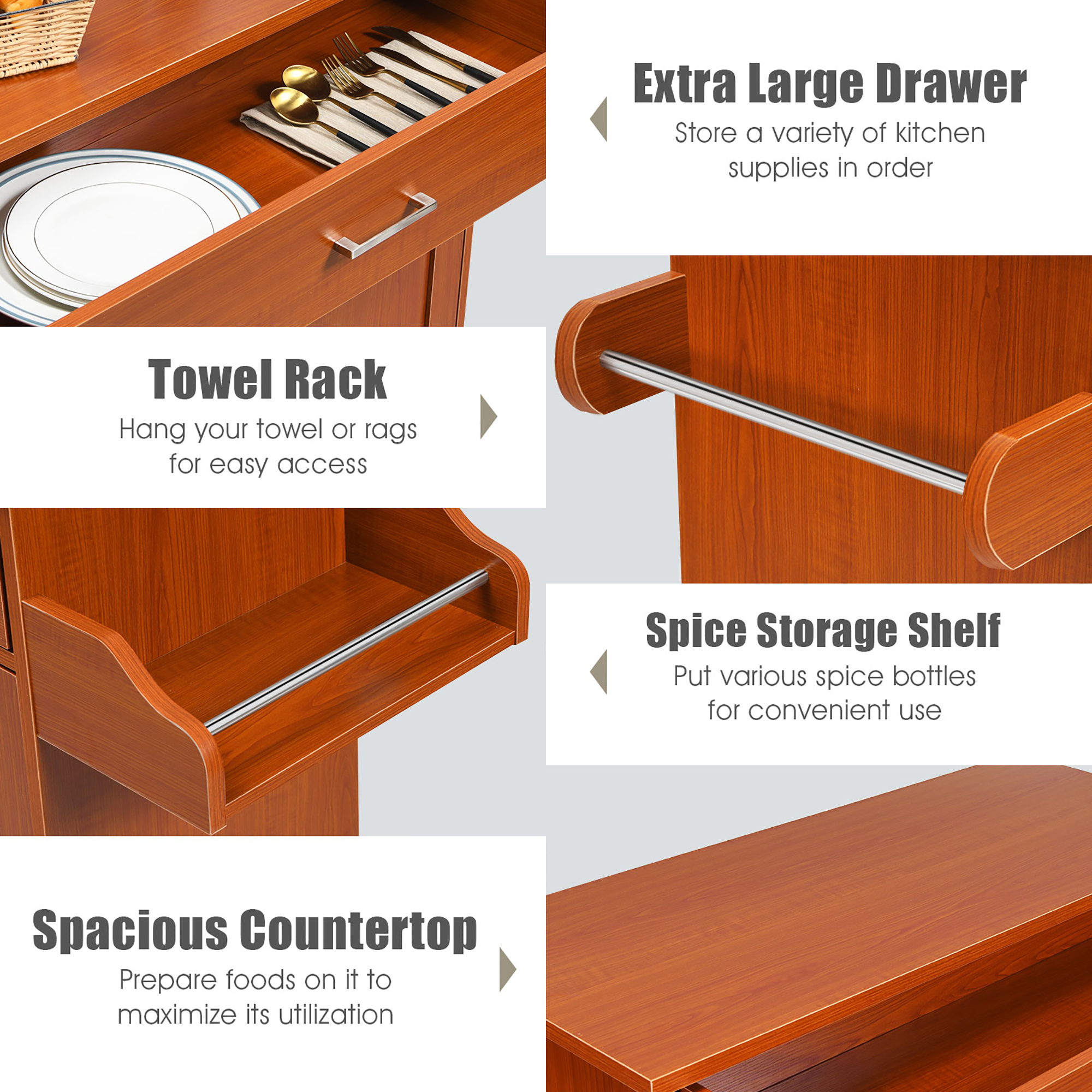 Costway Rolling Kitchen Island Cart Storage Cabinet w/ Towel & Spice Rack Cherry