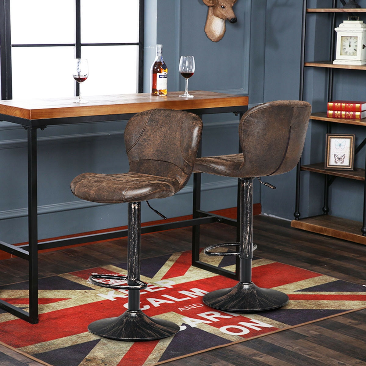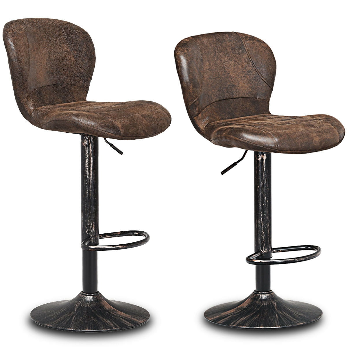 Costway Set of 2 Adjustable Swivel Bar Stool Hot-stamping Cloth with Backrest&Footrest Brown Low Back