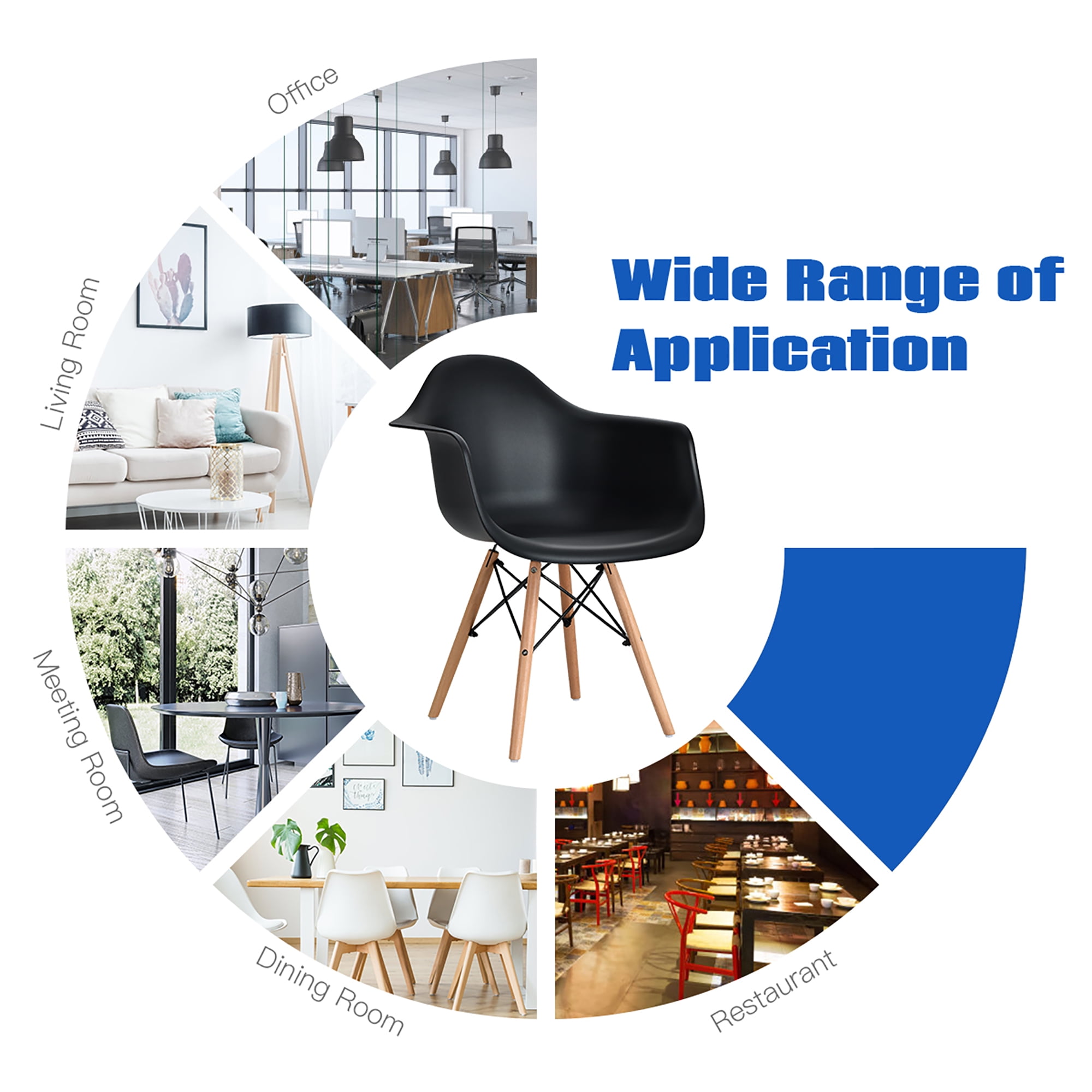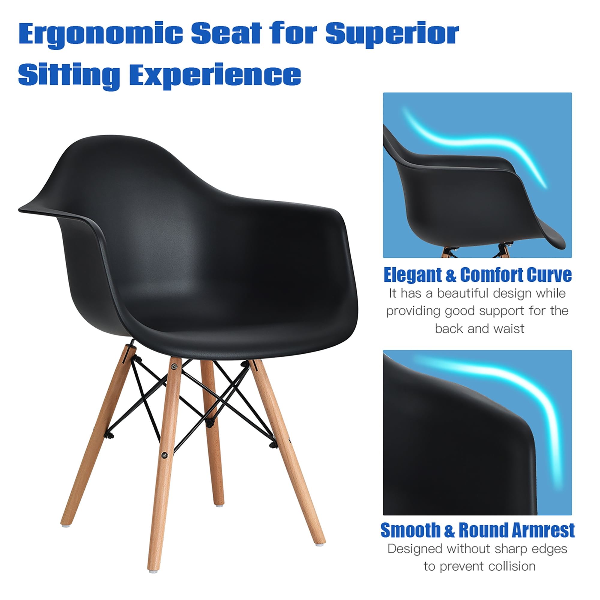 Costway Set of 2 Mid Century Modern Molded Dining Arm Side Chair Wood Legs Black