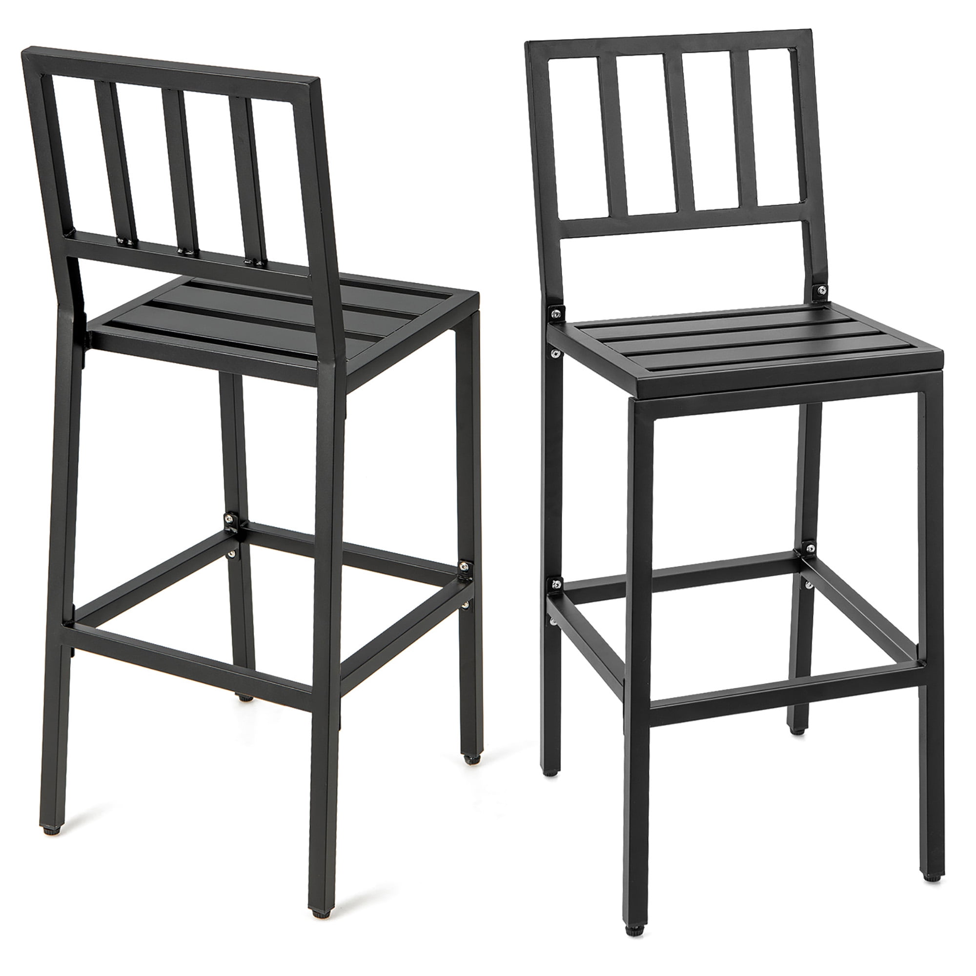 Costway Set of 2 Patio Metal Bar Stools Outdoor Bar Height Dining Chairs with Cushion