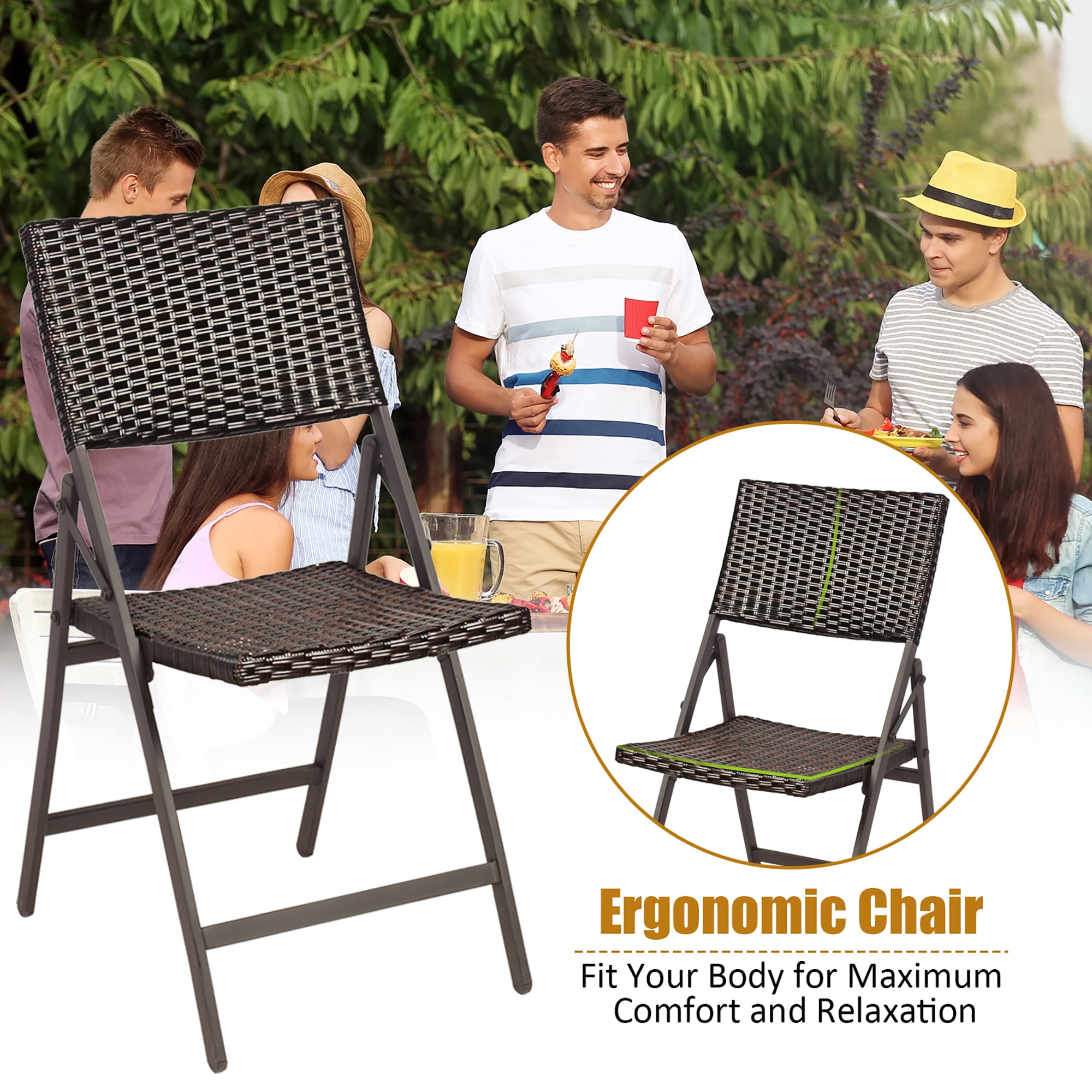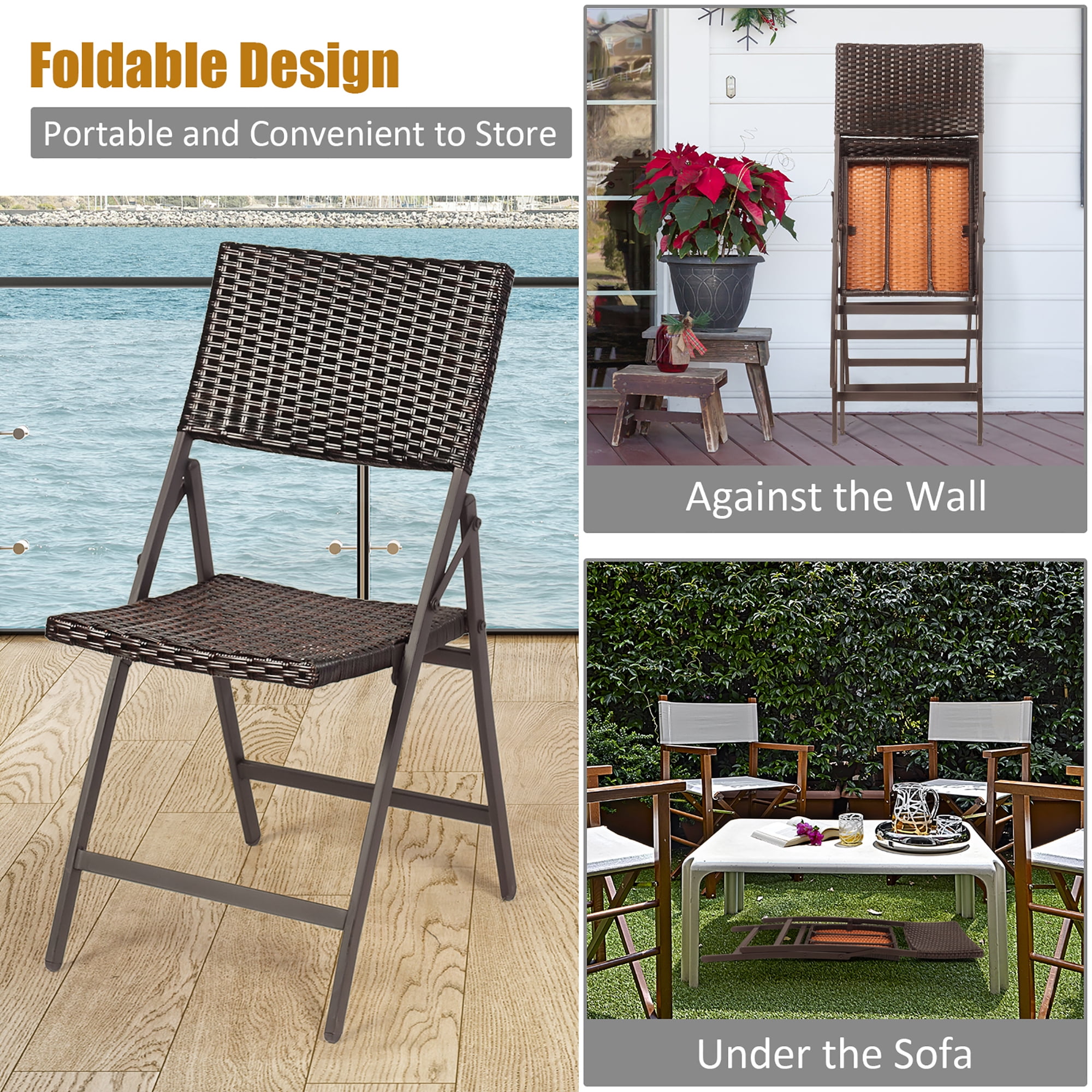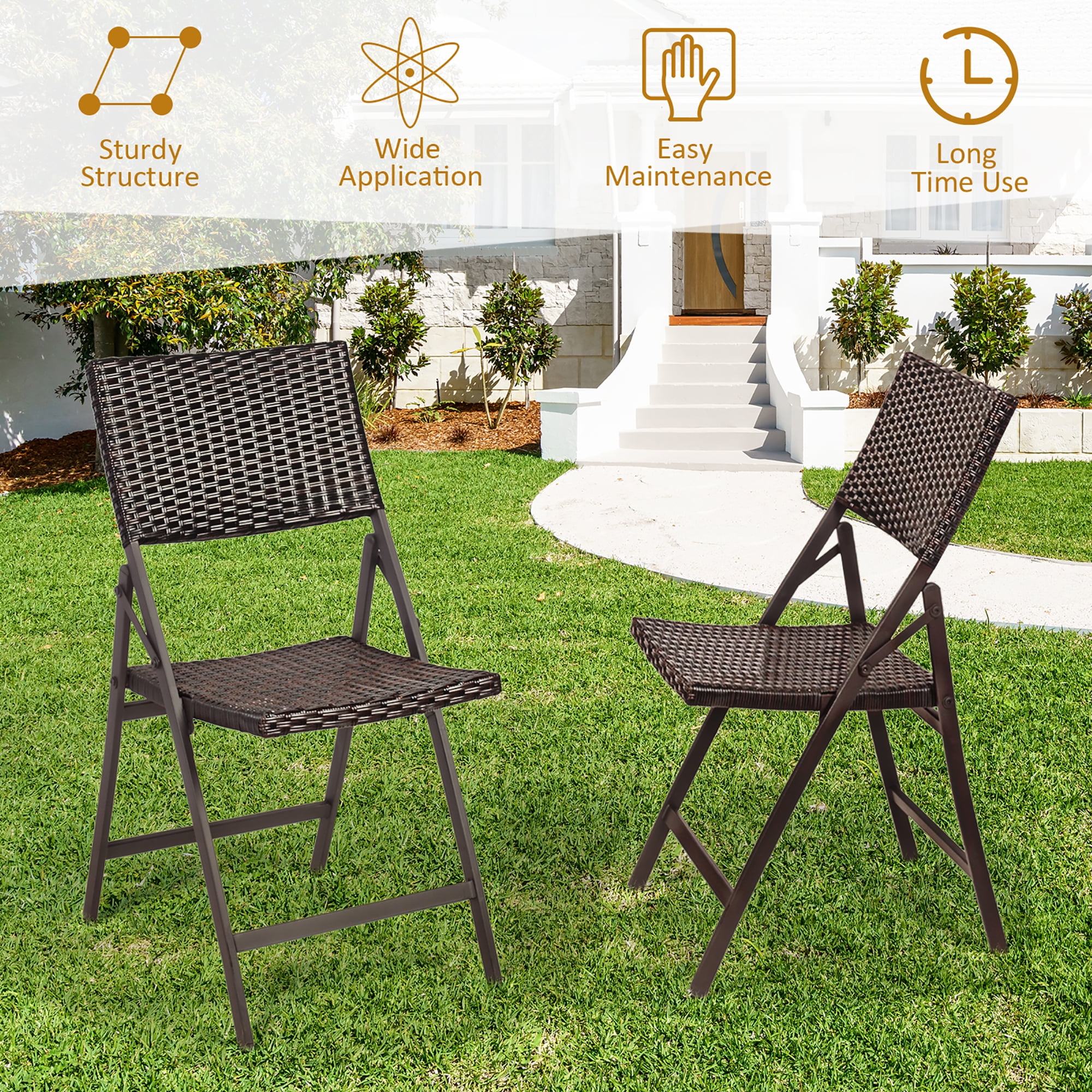 Costway Set of 2 Patio Rattan Folding Dining Chairs Portable Garden Yard Brown