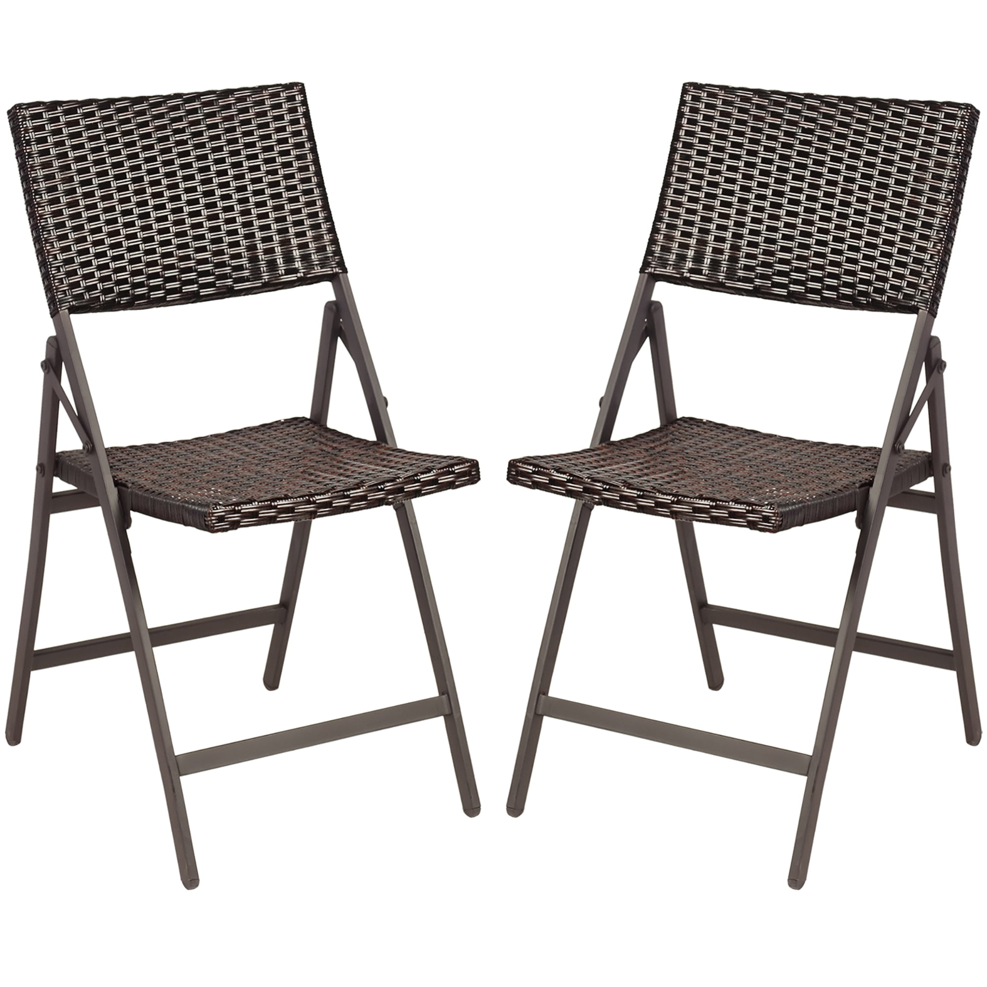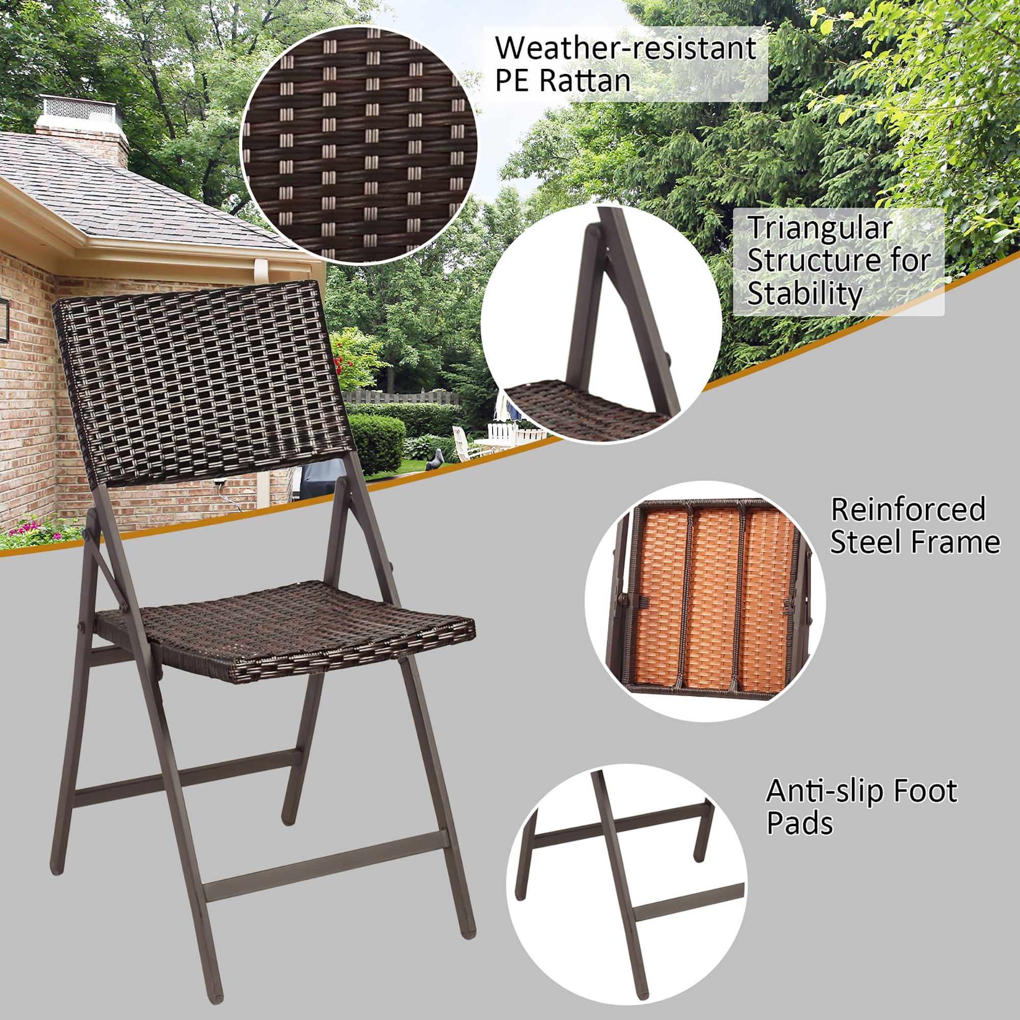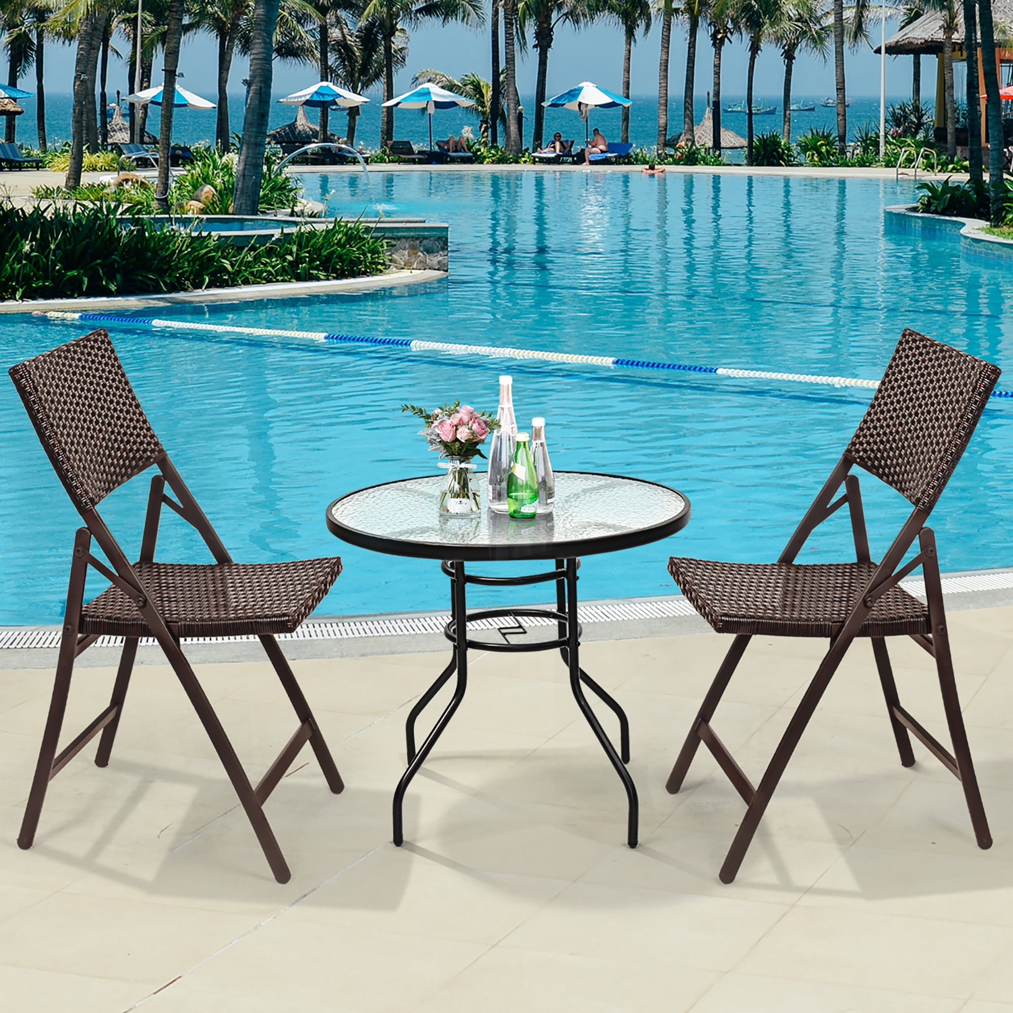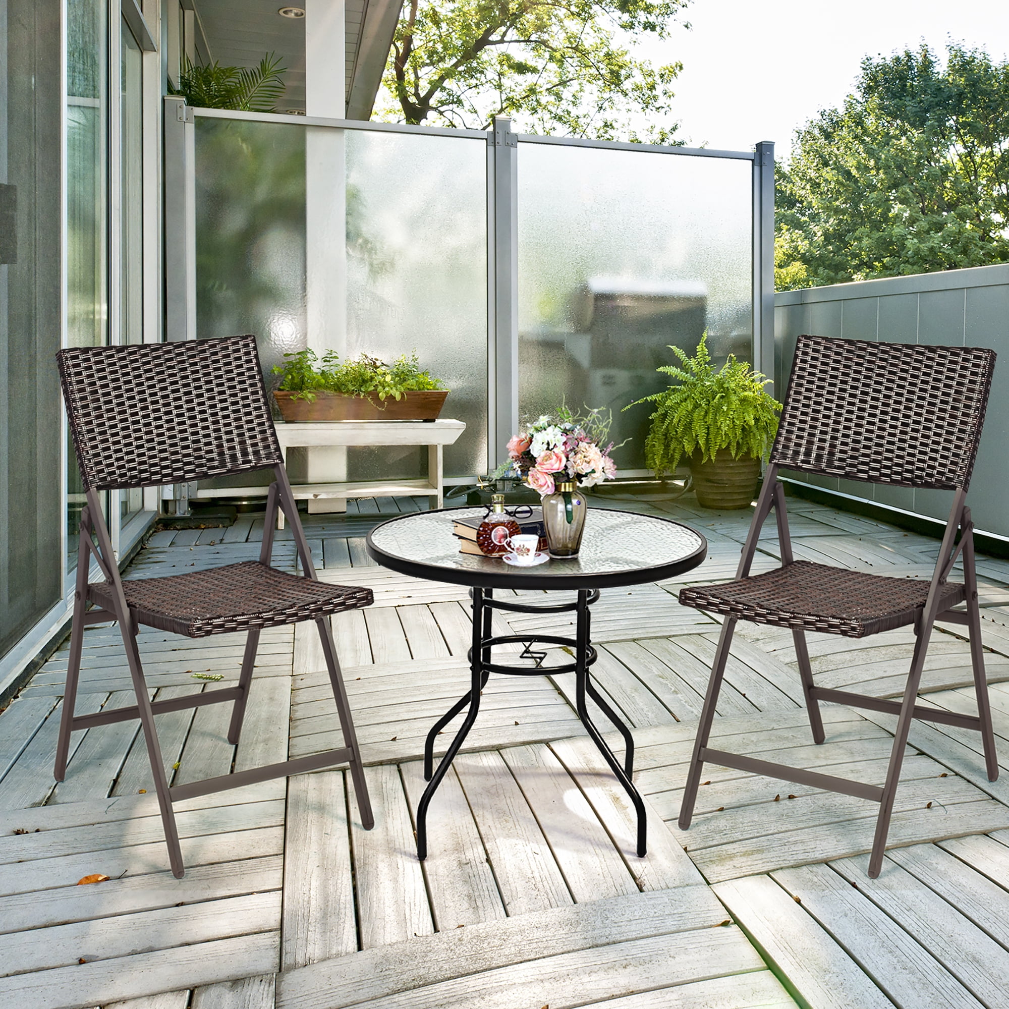 Costway Set of 2 Patio Rattan Folding Dining Chairs Portable Garden Yard Brown