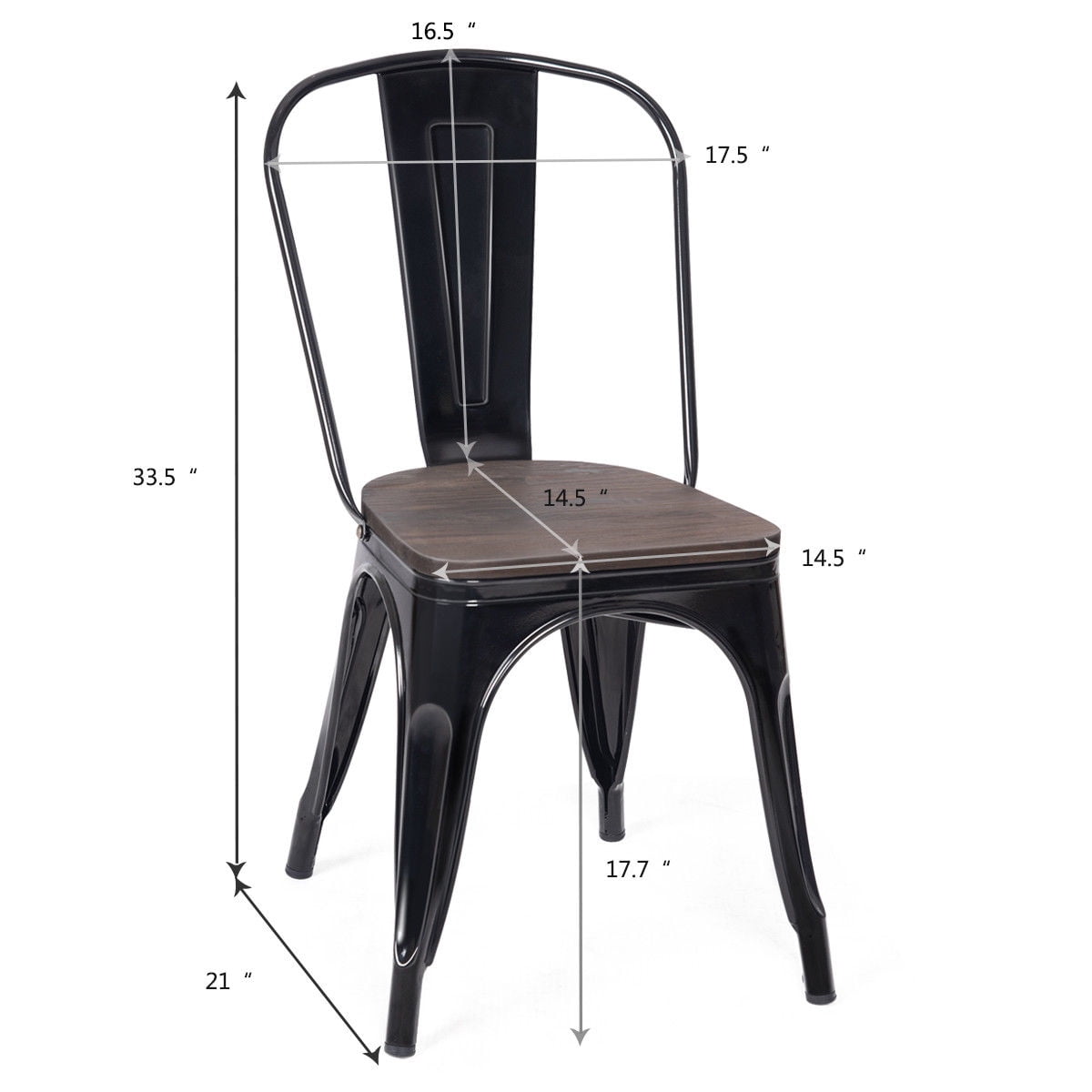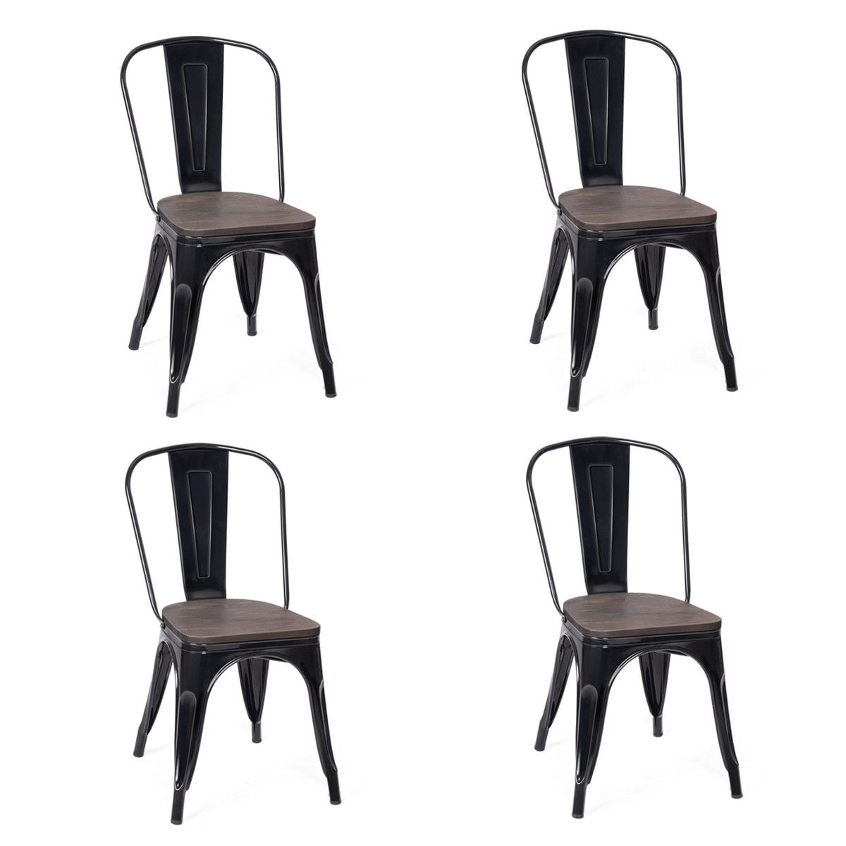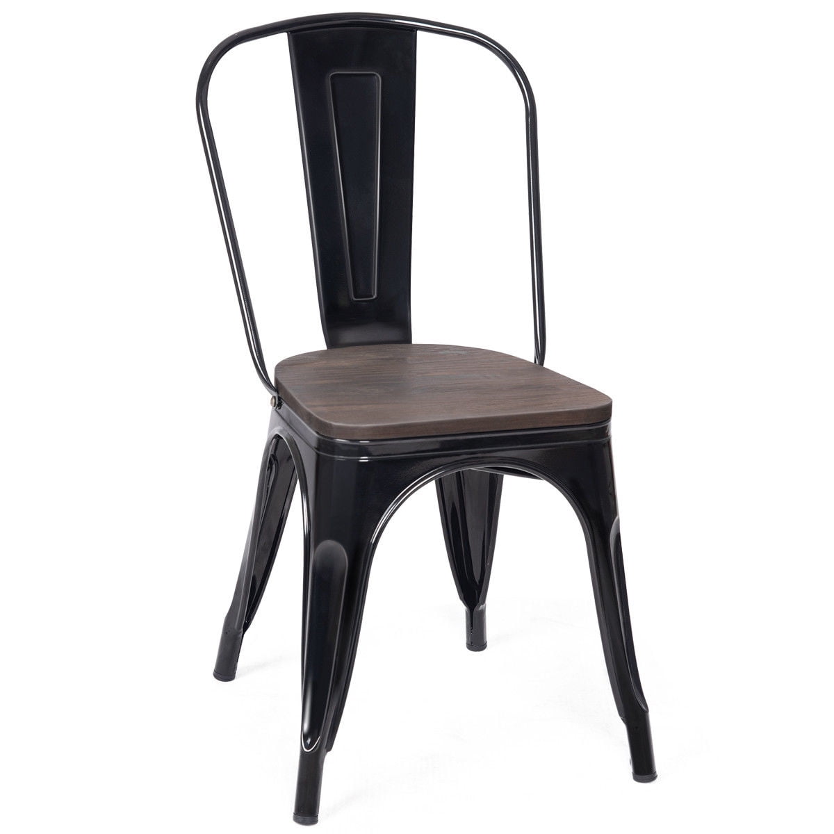 Costway Set of 4 Dining Side Chair Stackable Bistro Metal Wood Stool Black