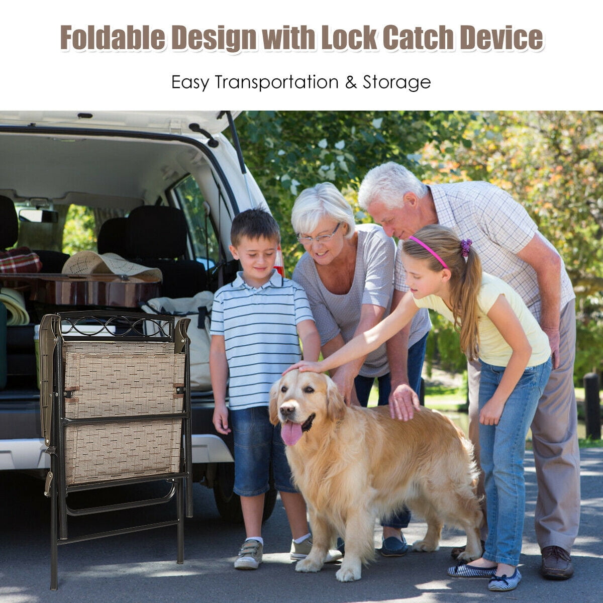 Costway Set of 4 Patio Folding Chairs Sling Portable Dining Chair Set w/ Armrest