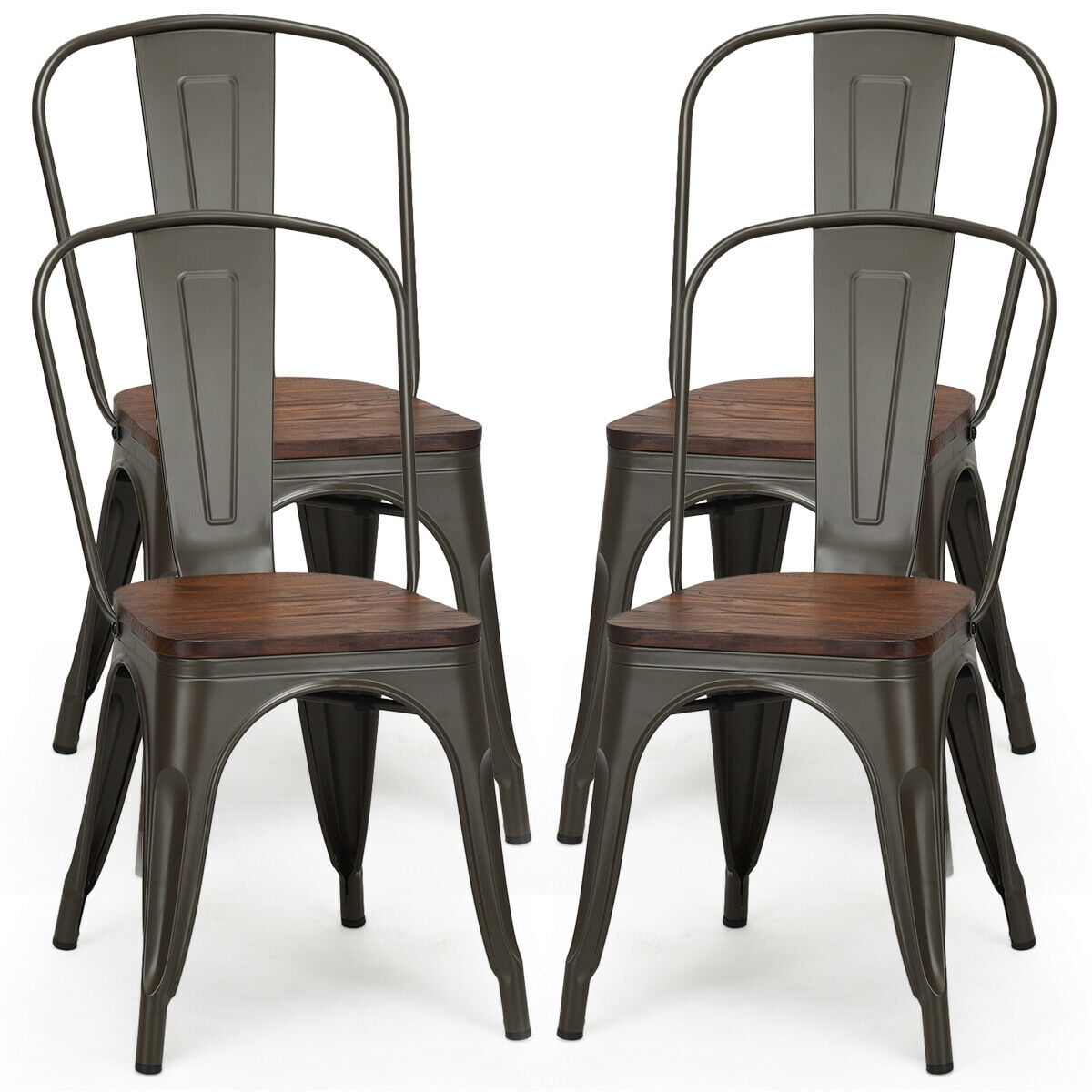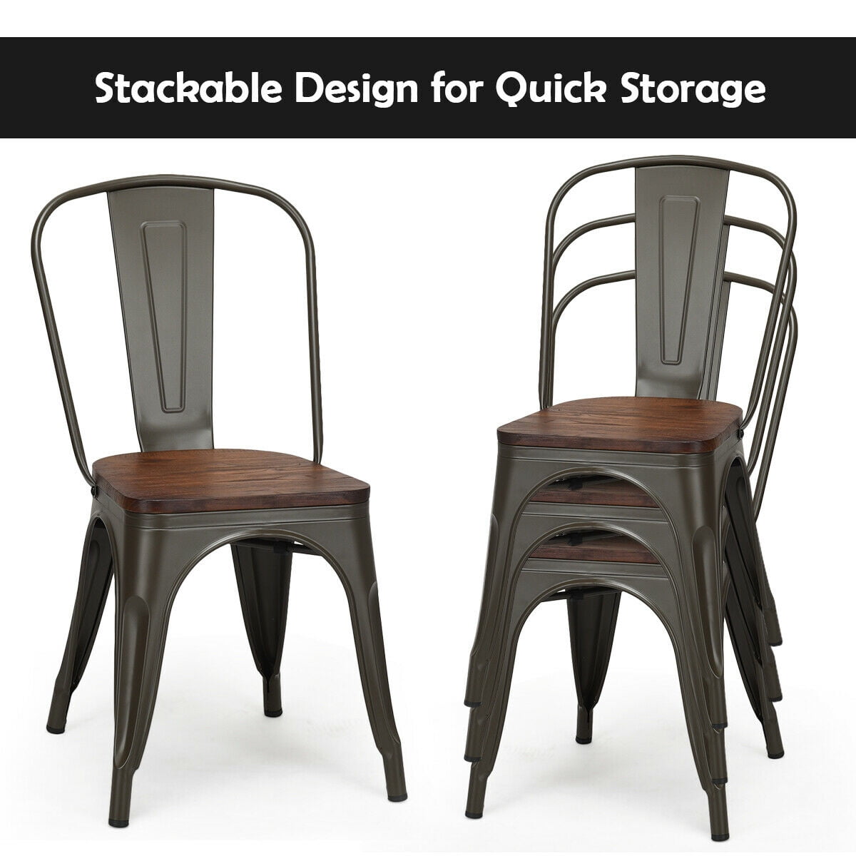 Costway Set of 4 Style Metal Dining Side Chair Wood Seat Stackable Bistro Cafe Brown