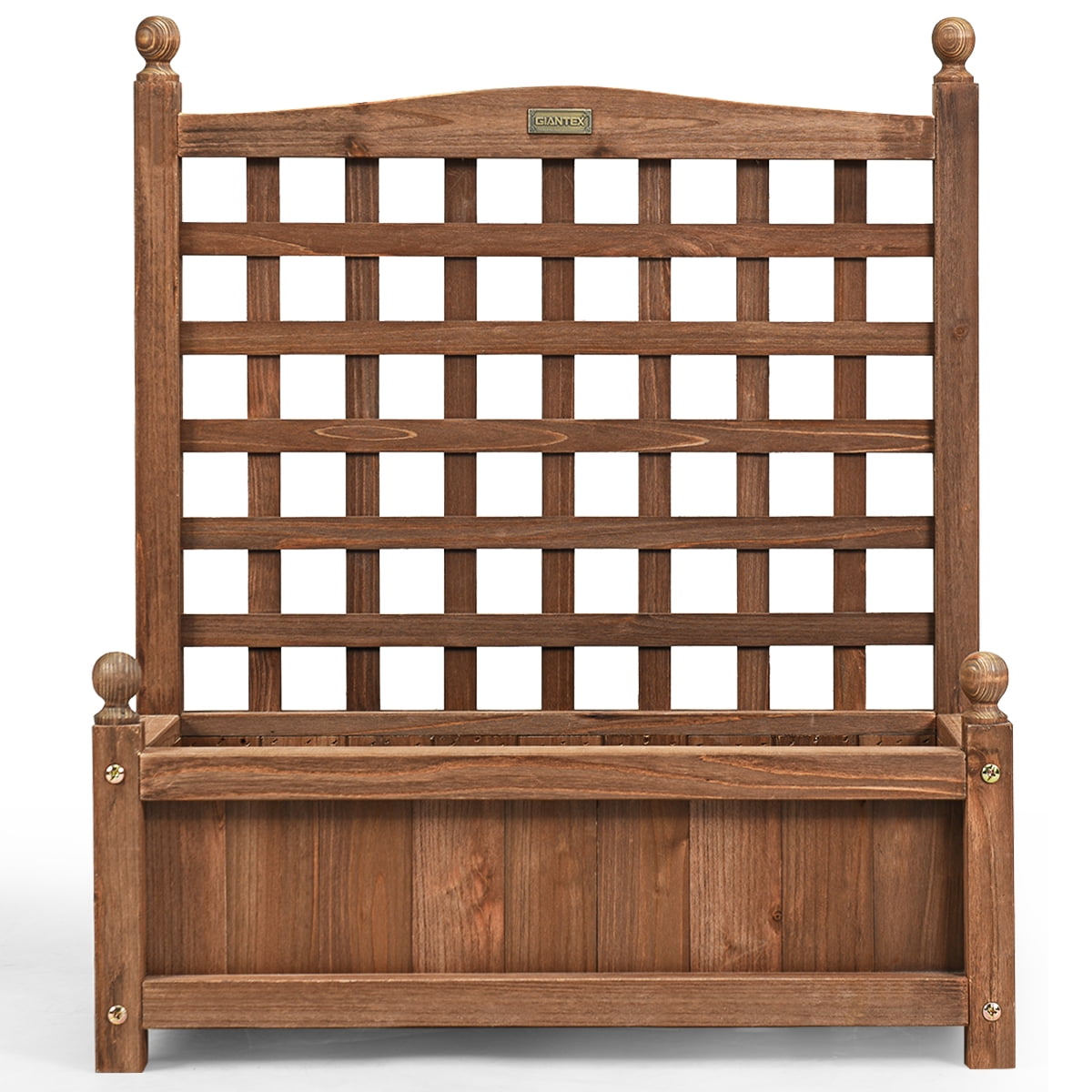 Costway Solid Wood Planter Box with Trellis Weather-Resistant Outdoor 25”x11”x30”