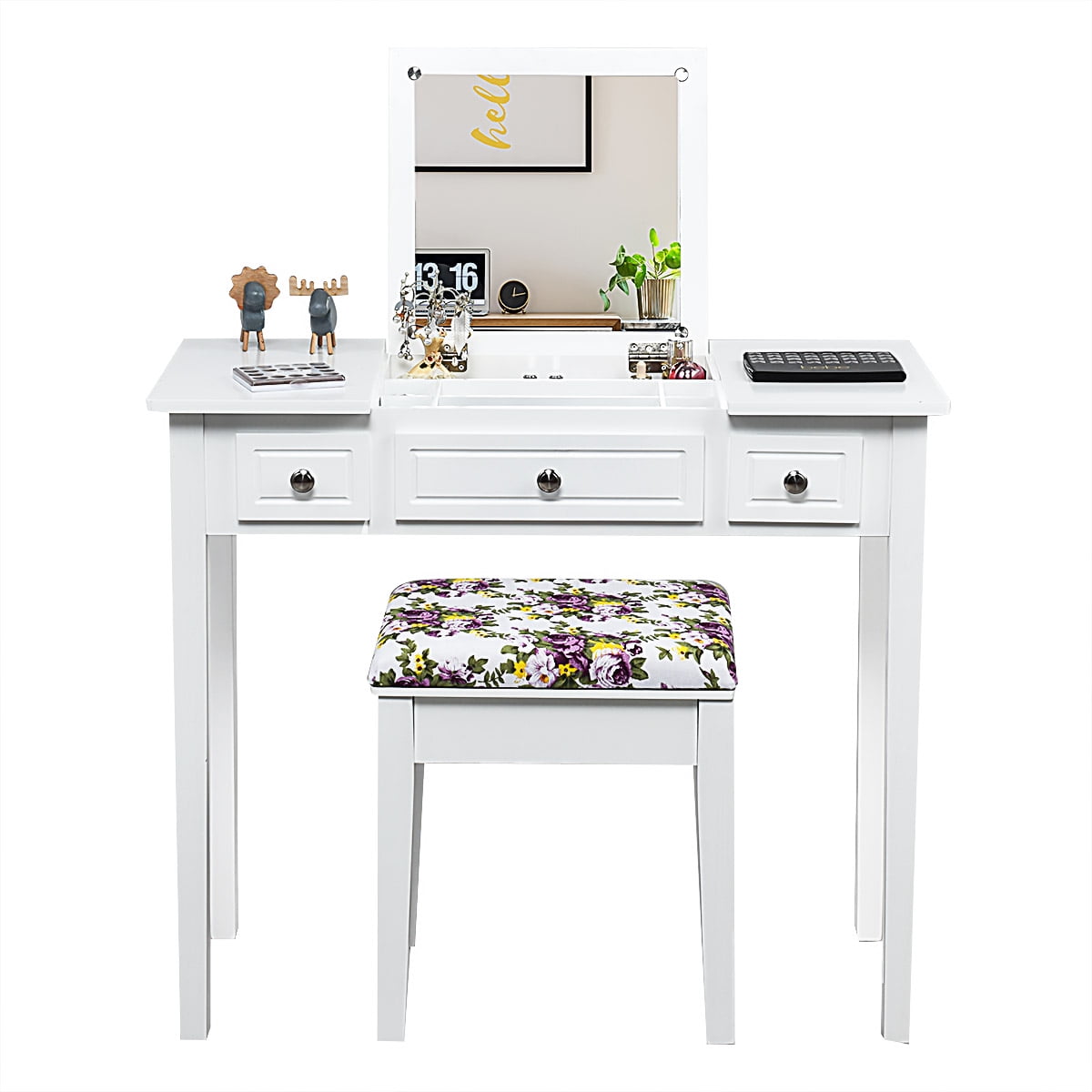 Costway Vanity Dressing Table Flip Top 7 Compartments Makeup Desk