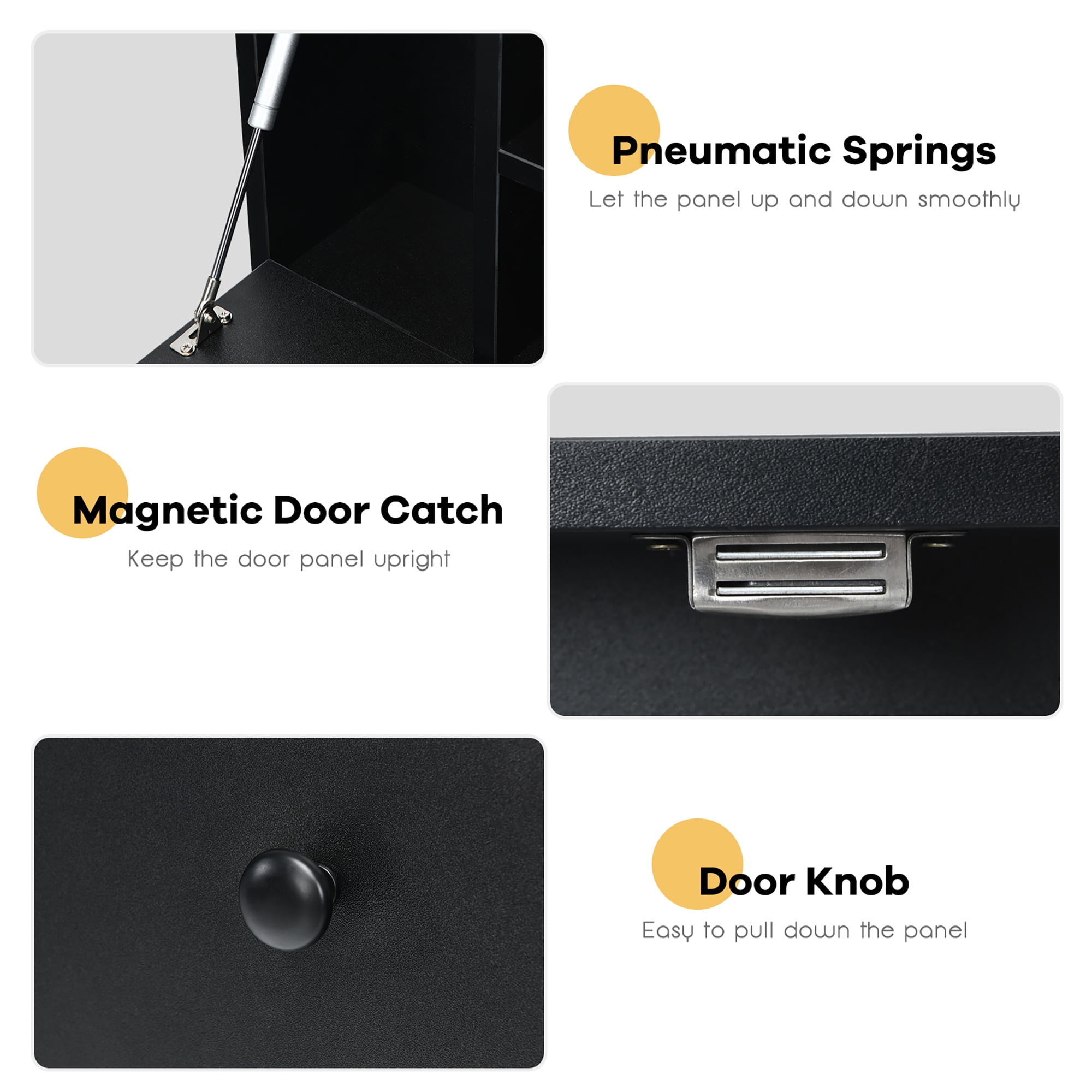 Flexible & Safe Wall-mounted Design: Mounted by stable cabinet hangers, this floating desk is installed safely on the wall and is not likely to fall off. You can adjust the mounting position to customize an ideal height for you to work or read. Moreover, the floating cabinet comes with necessary tools to help you assemble it. Compact Desk with Foldable Top: Compared with conventional desks, this compact floating desk greatly saves floor space and turns the wall space into an efficient working area in your dorm or study room. Besides, the pull-down panel can be closed when not in use, which saves space and turns the desk into a concealed storage cabinet. Ample Storage Space for Essentials: In addition to the foldable desktop, the multifunctional writing desk also has storage shelves and one shallow drawer to keep your working essentials handy and in order. The six open compartments provide room for displaying your knick-knacks. And inside the drawer there are stoppers to prevent it from dropping off. Sturdy Construction & Durable Material: Crafted from premium board, the laptop desk is sturdy enough for daily use. And the thick foldable board attached strongly by pneumatic springs and hinges can hold up to 11 lbs. What’s more, the surface is waterproof and wear-resistant, which is easy for you to clean and maintain. Sleek Appearance & Versatile Use: This computer desk has a simple stylish appearance and can match different furnishing styles. Together with multiple functions, this unit can be used as a desk in a home office, a vanity table in the bedroom and an organized storage place in the living room.