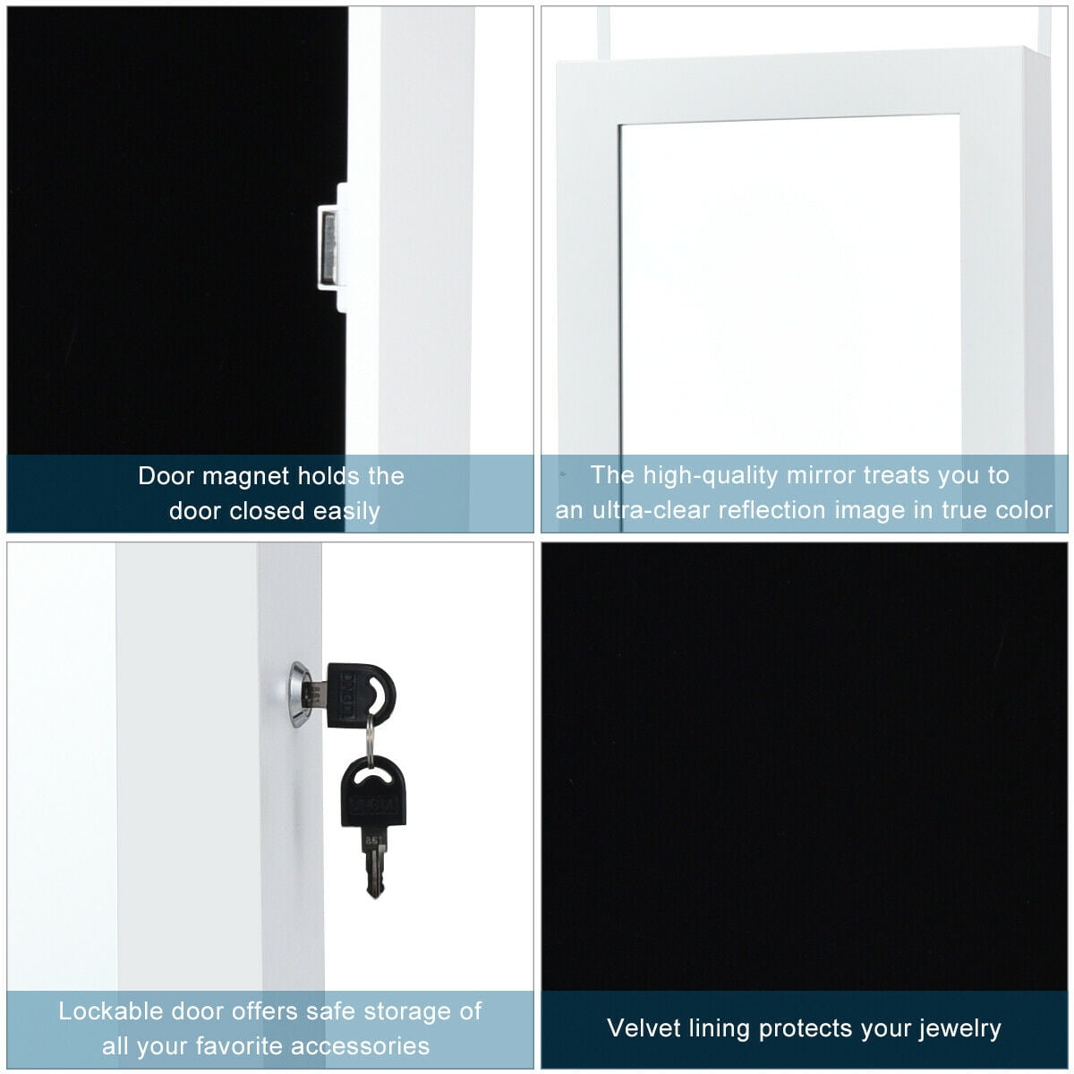 Costway Wall Mounted Mirrored Jewelry Cabinet Organizer w/LED Lights