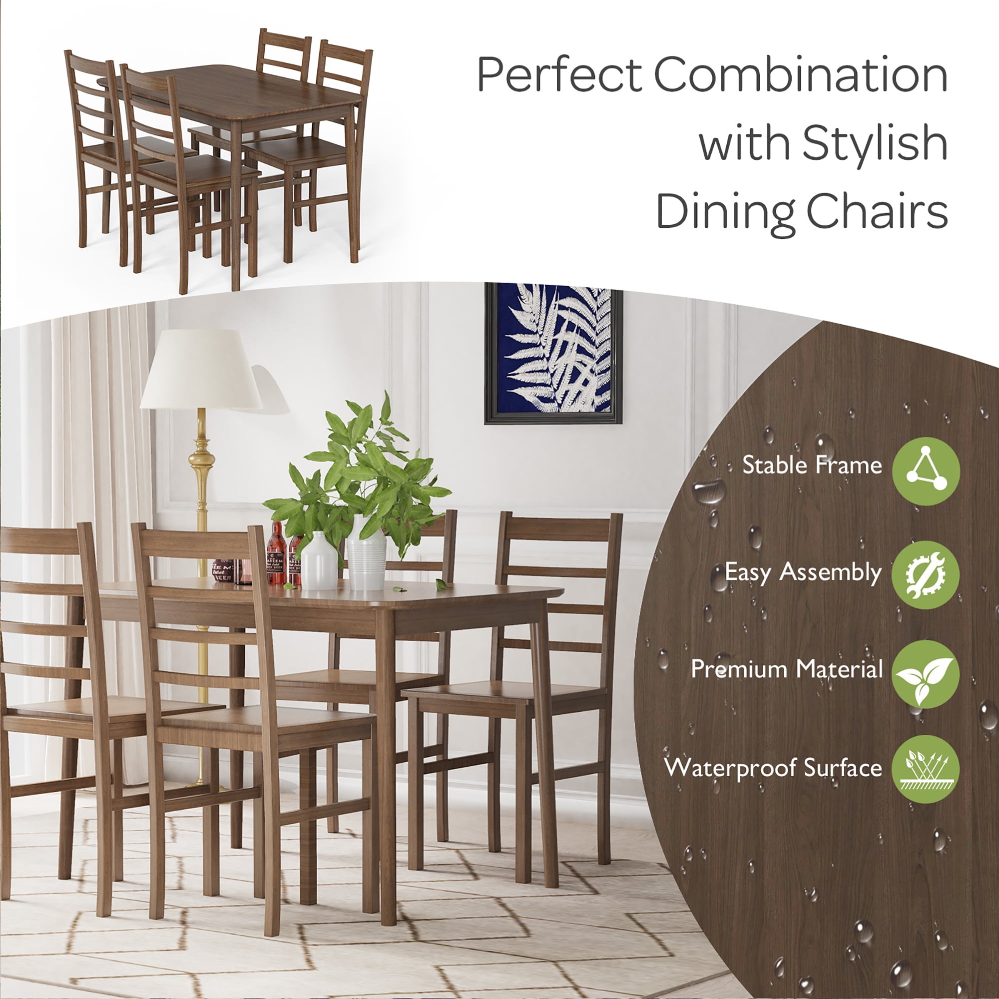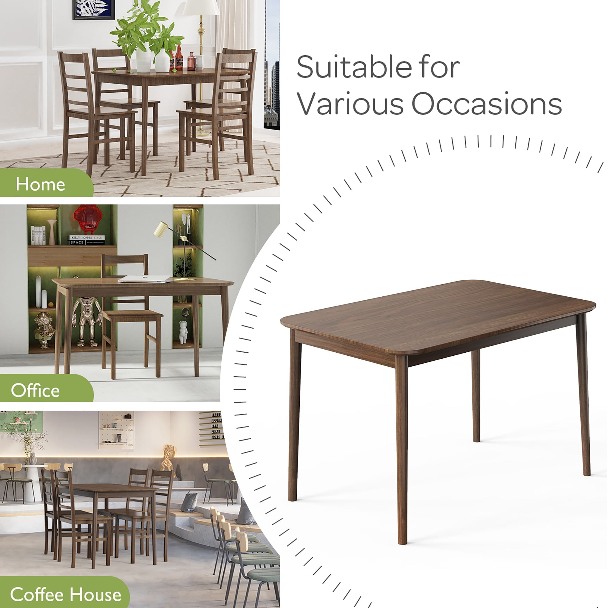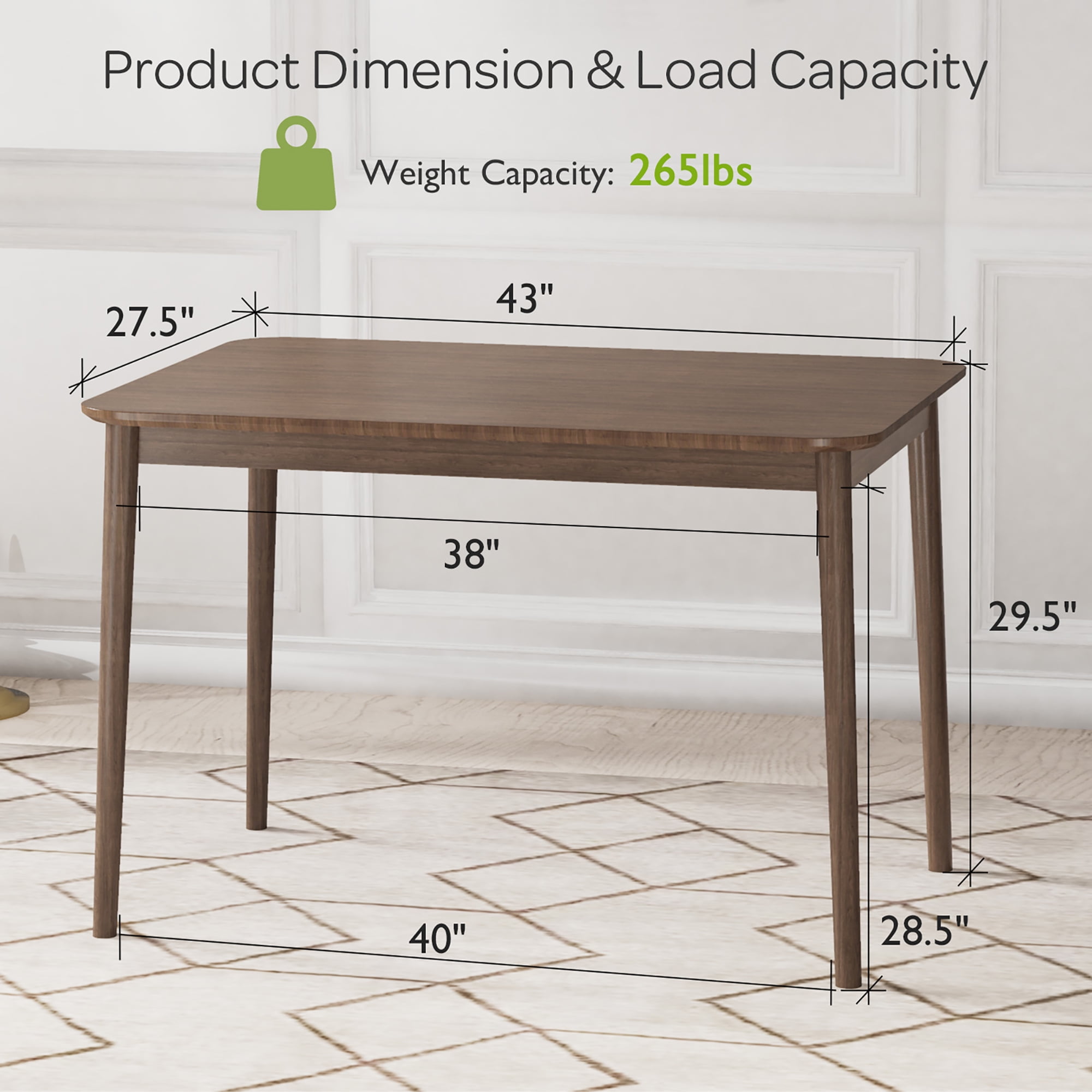Sturdy & sturdy Construction: Constructed of high quality MDF material, this dining table is wear resistance and burr-free, which is not easy to scratch and has a long service life. Besides, 4 solid rubber wood legs ensure overall stability, and the dining table can support up to 265lbs without wobbling or deformation. Practical Dining Table: 27.5’’ x 43.5’’ desktop size is perfect for a family of 4 people, providing spacious dining space to enjoy breakfast, lunch and dinner with family and friends. In addition, there is ample space for placing tableware, decorative plants, salads, desserts, drinks and more. Simple Style & Safety Design: Considering beauty and practicability, our adopts clean lines plus rounded corners, making this dining table match perfectly with any home furniture style, which is also a great combination to your dining chair. Meanwhile, the corners of the table are designed with reinforced structure to enhance stability. Ideal for Various Scenes: This multifunctional dining table with minimalist style and elegant appearance can be served as a learning desk, storage table or bar table, and you can place it in your kitchen, dining room, restaurant, bistro and so on according to your different needs. Easy to Assemble & Clean: This dining room table comes with a clear instruction and all necessary hardware, so that you can complete the installation in a short time without effort. What’s more, the smooth surface is waterproof and easy to clean with a damp cloth.