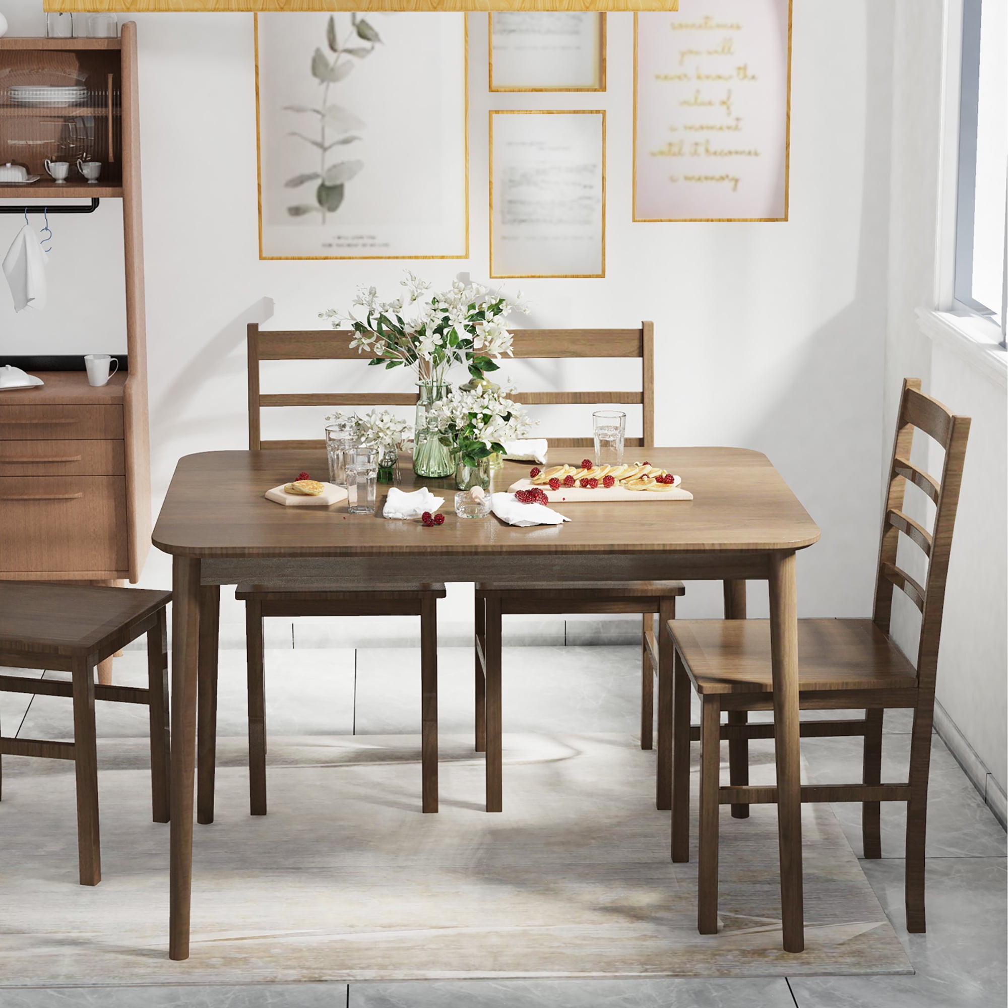 Costway Wood Dining Table 43.5” Modern Kitchen Table Rectangle with Solid Rubber Wood Legs