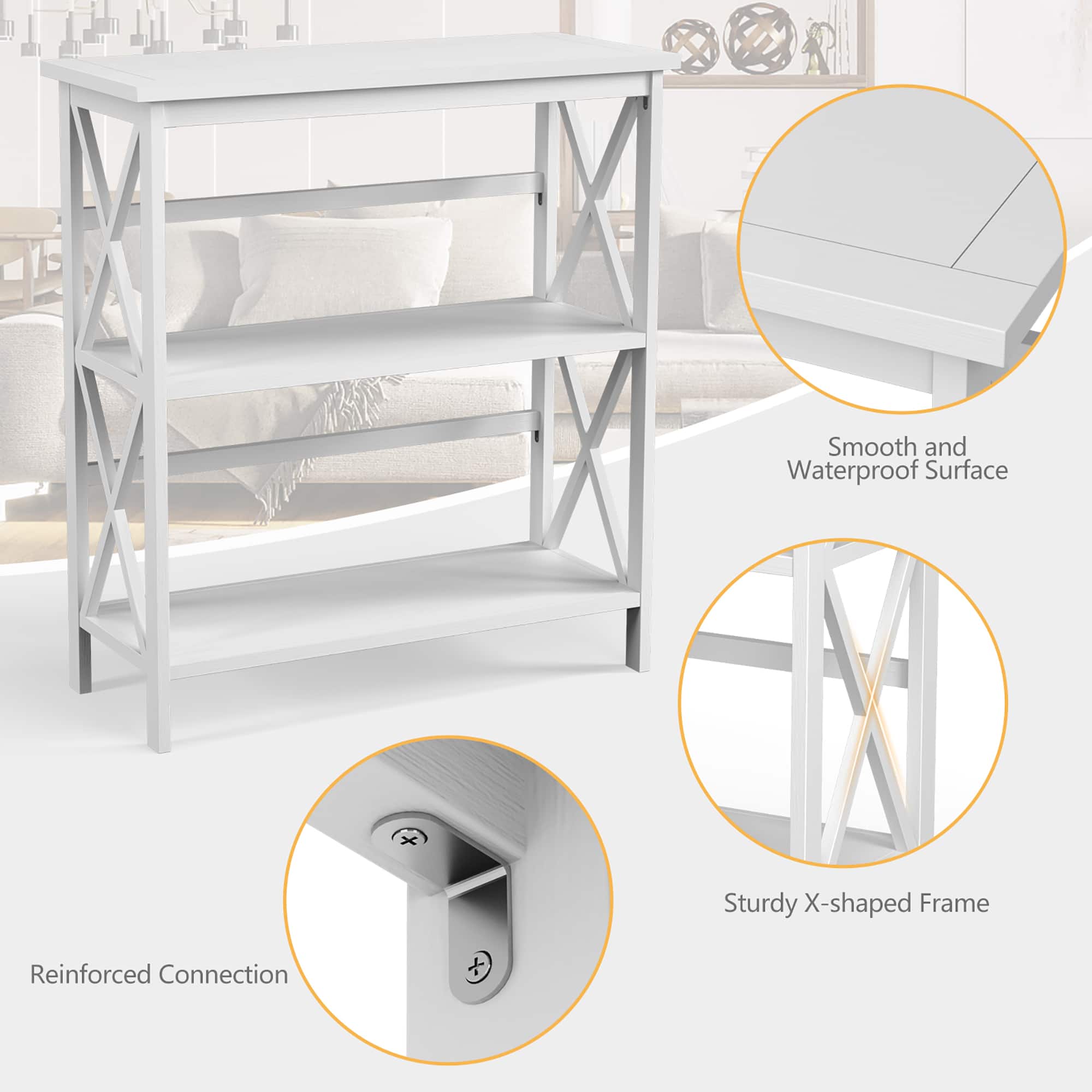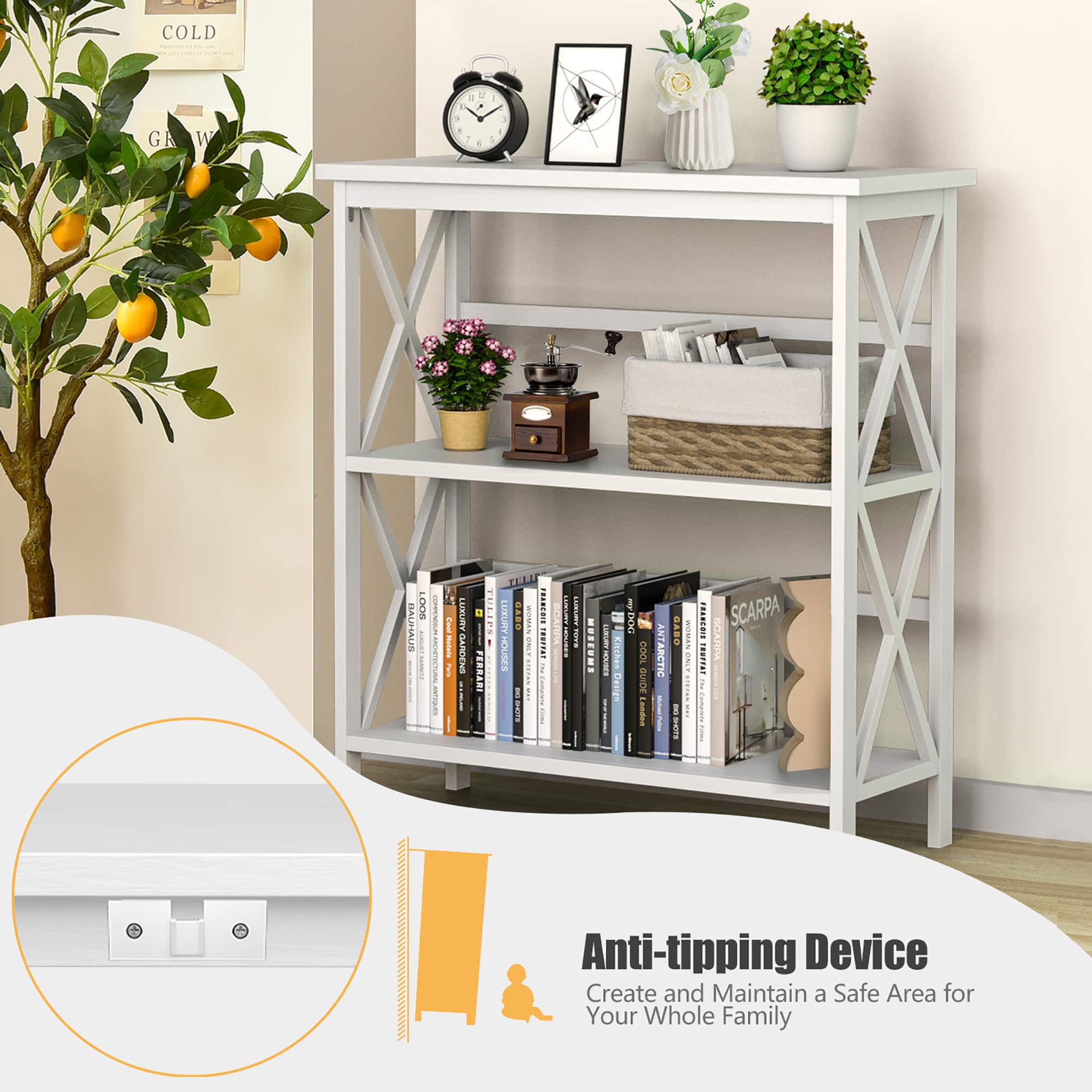 - Product Name: Wooden Shelf Bookcase 3-Tier Open Bookshelf W/X-Design Freestanding Rack White