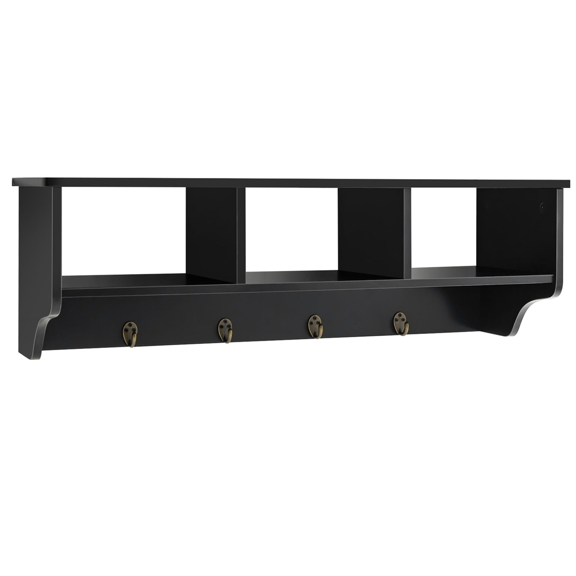 Costway Wooden Wall Mounted Coat Rack Hanging Cubby Organizer Storage Shelf with Hooks Black