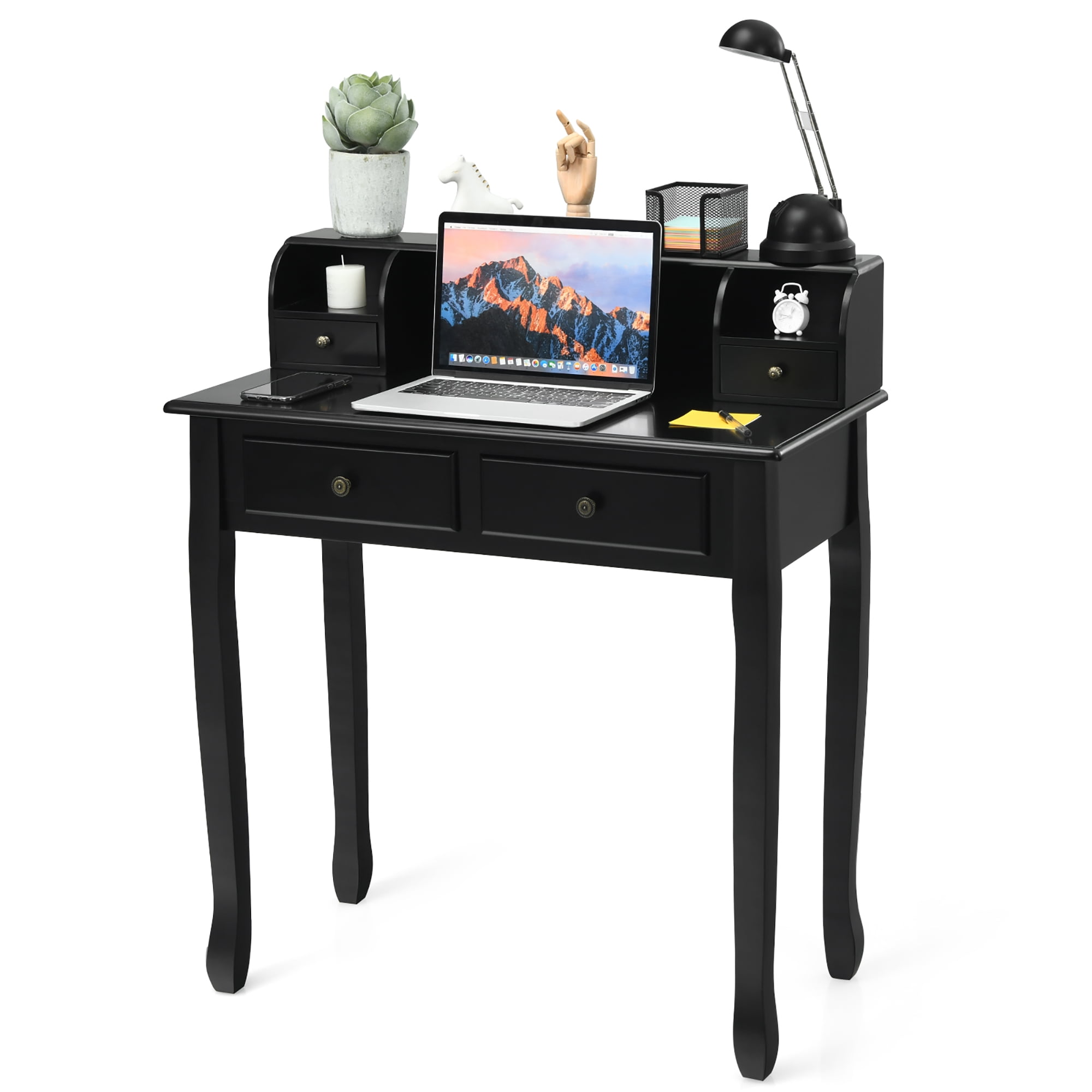 Costway Writing Desk Makeup Vanity Table Home Office Computer Desk 4 Drawer Black