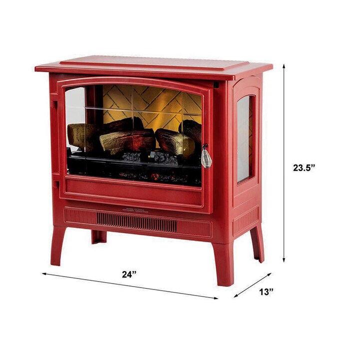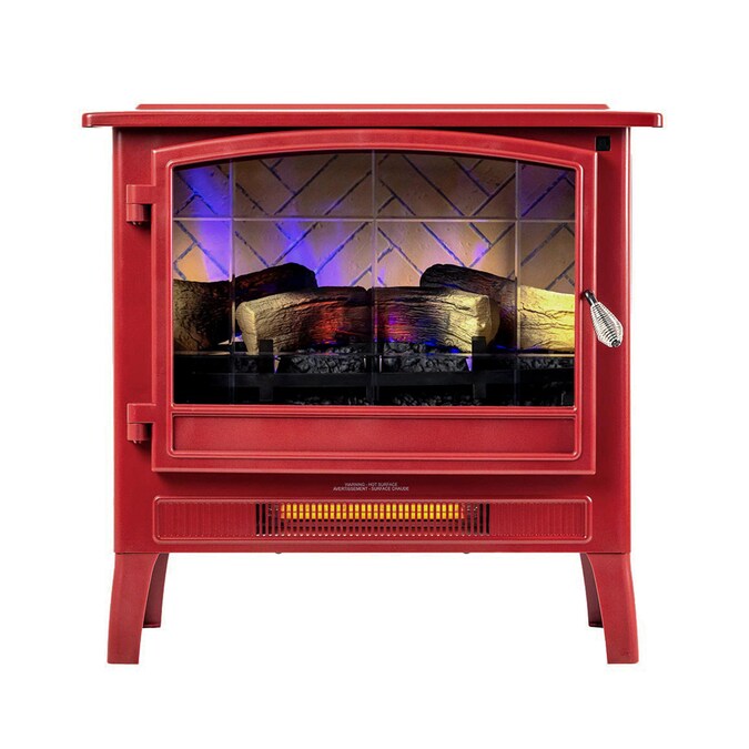 True to the quality and authentic character you’d expect from country living, this classic infrared electric fireplace stove creates supplemental warmth and adds stylish charm to your room. Featuring bright, led-lit flame projections and inner glowing hand-finished logs, this electric fireplace stove provides the look and feel of a wood burning fire. With a large arched etched-glass door and two side glass panels, you’ll experience the soothing flames from virtually any angle in your space. Customizable flame projections give you the added capability to change the look of the fire to your preference with just a press of a button. Quality detailing includes all-metal body construction and herringbone patterned faux brick background. Meticulously designed with a bottom venting infrared heater to maximize the viewable flames, you’ll be able to warm spaces up to 1,000 sq. Ft., while the thermostatic settings ensure your room stays comfortable at your chosen temperature. For all season operation, simply turn off the heater to continue to experience the flickering flames year-round.