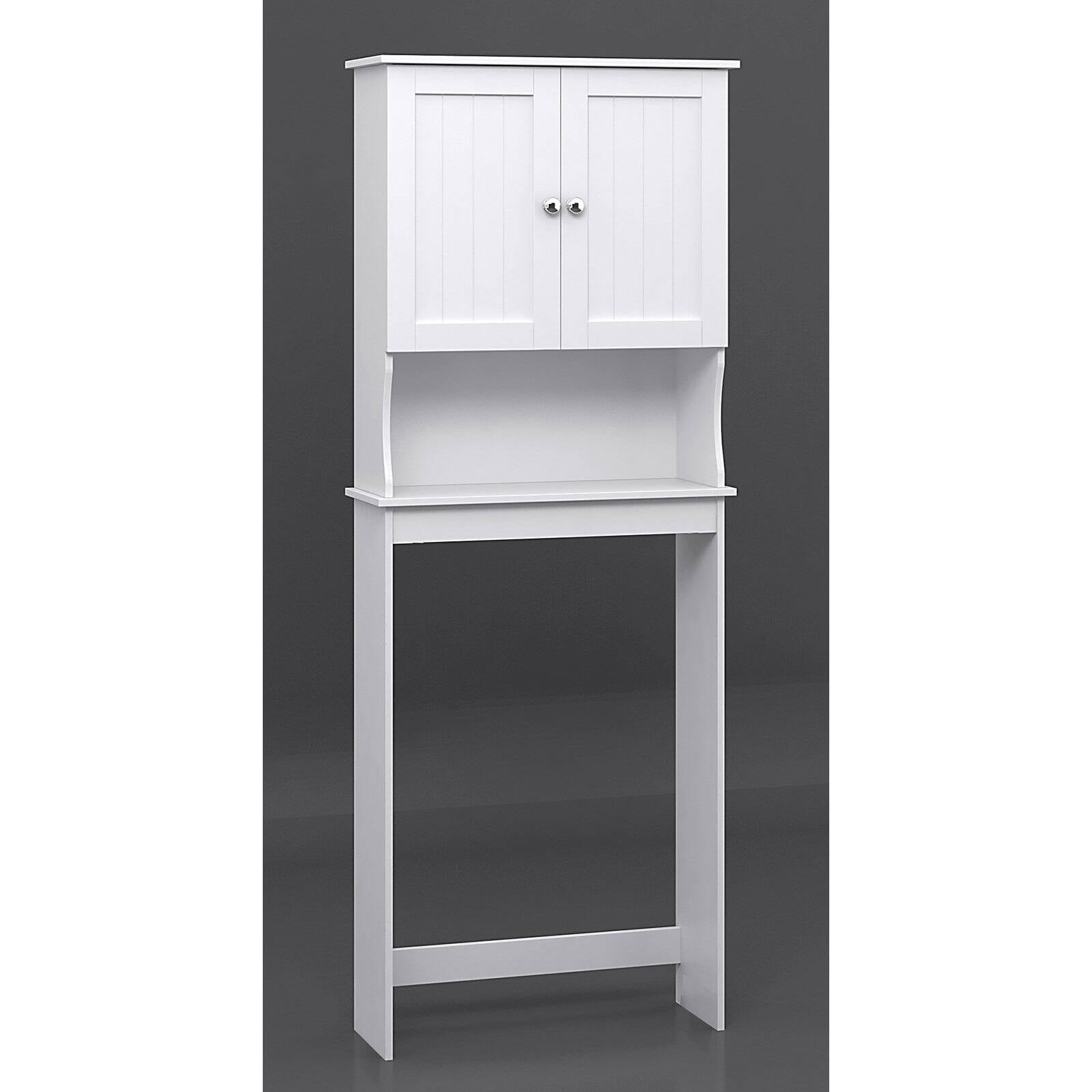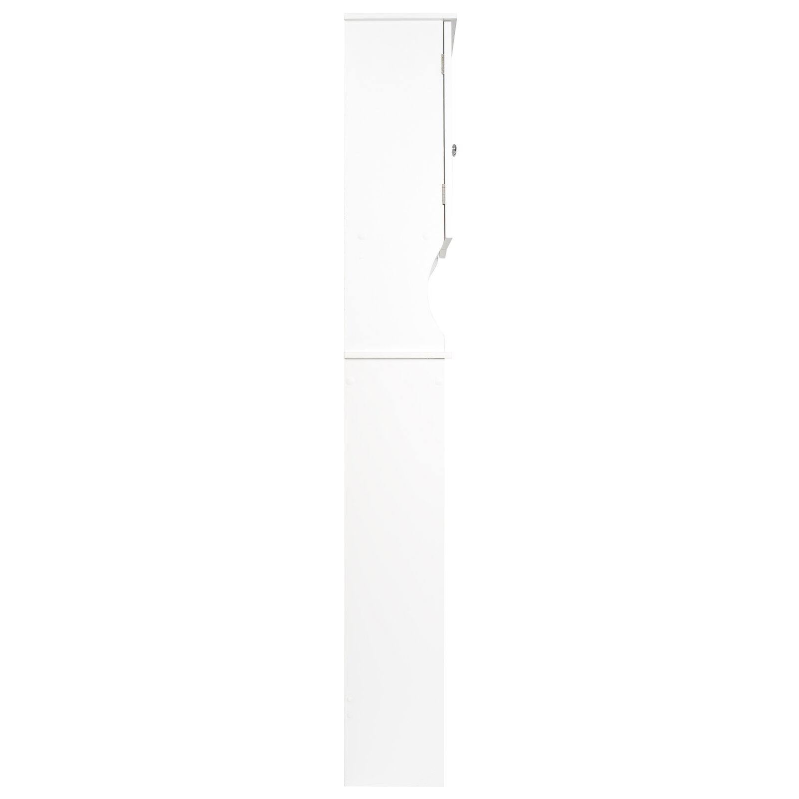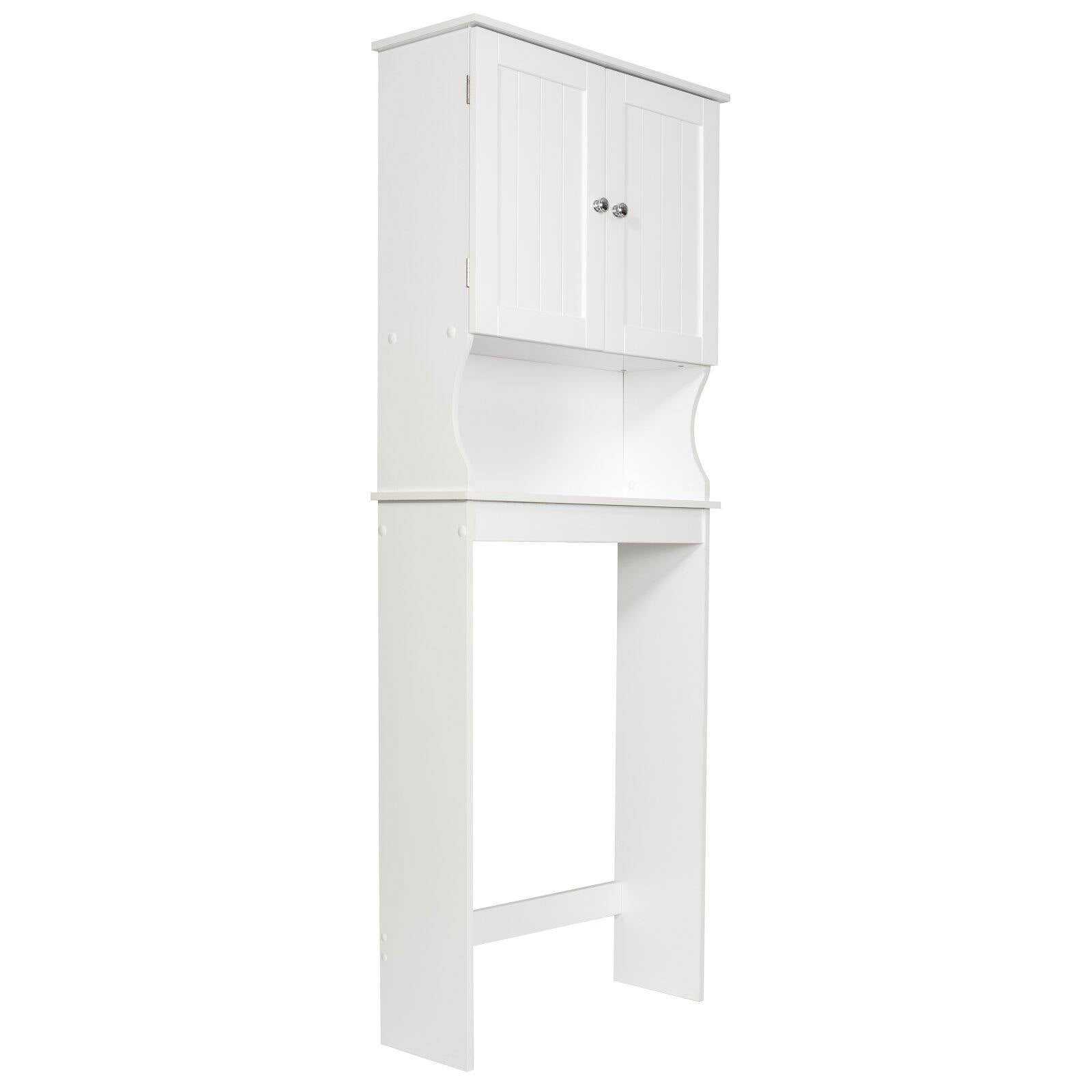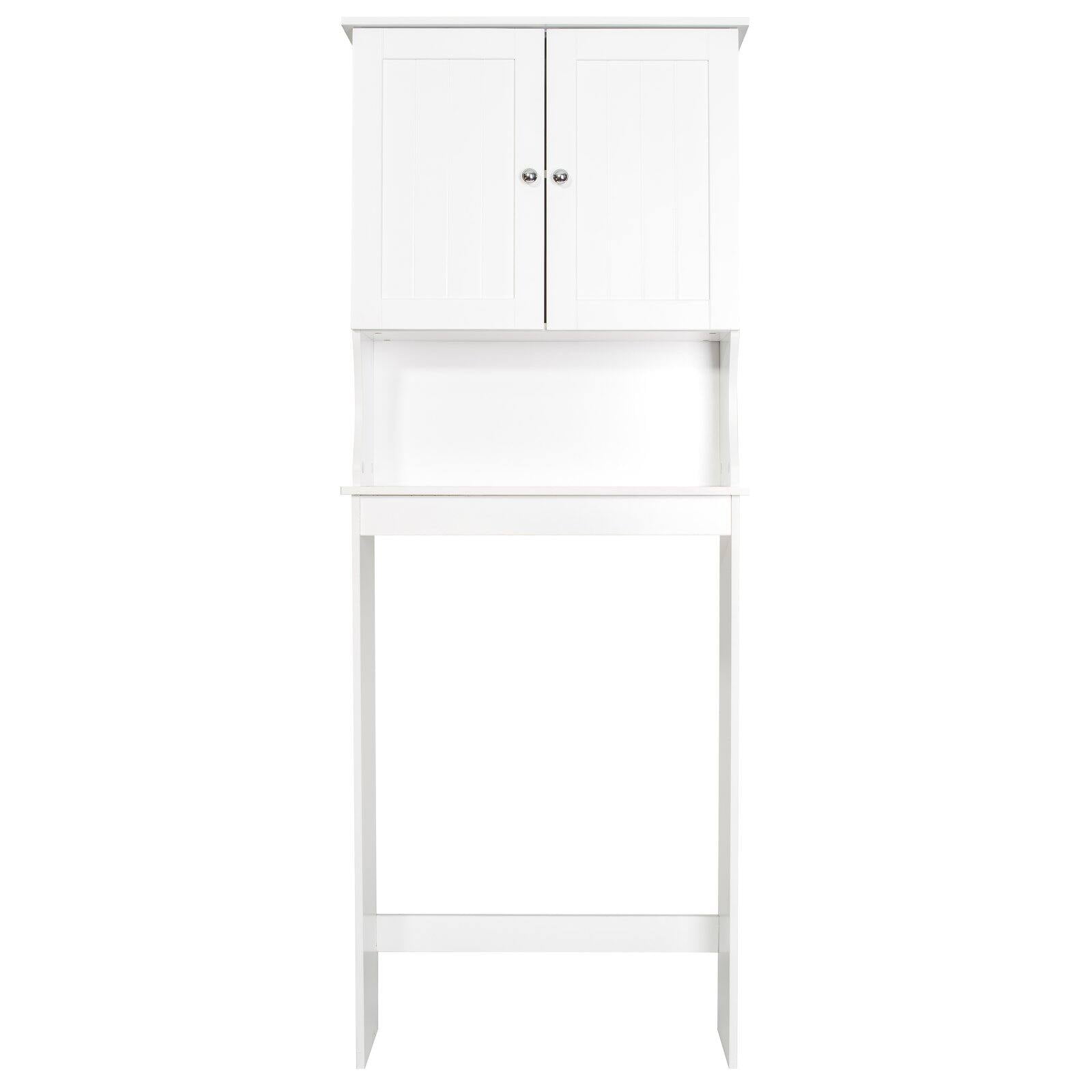 The Redmon Country Two Door Over the Toilet Space Saver Cabinet is great for adding extra storage and organization in any bathroom, laundry, or pantry. This space saver has two shelves behind the doors (one fixed and one adjustable to multiple positions to accommodate taller items). Two additional fixed position open shelves are included in the design. The easy-to-follow assembly instructions include a 1-minute video link and/or our responsive customer service phone assistance if needed. The finish is semi-gloss plus quality materials made to last for many years or reliable use. The hardware included is brushed nickel. Also included is a simple anti-tip kit to attach to the wall for added security. The overall assembled dimensions are 23.625″W x 8.875″D x 62.00″H.