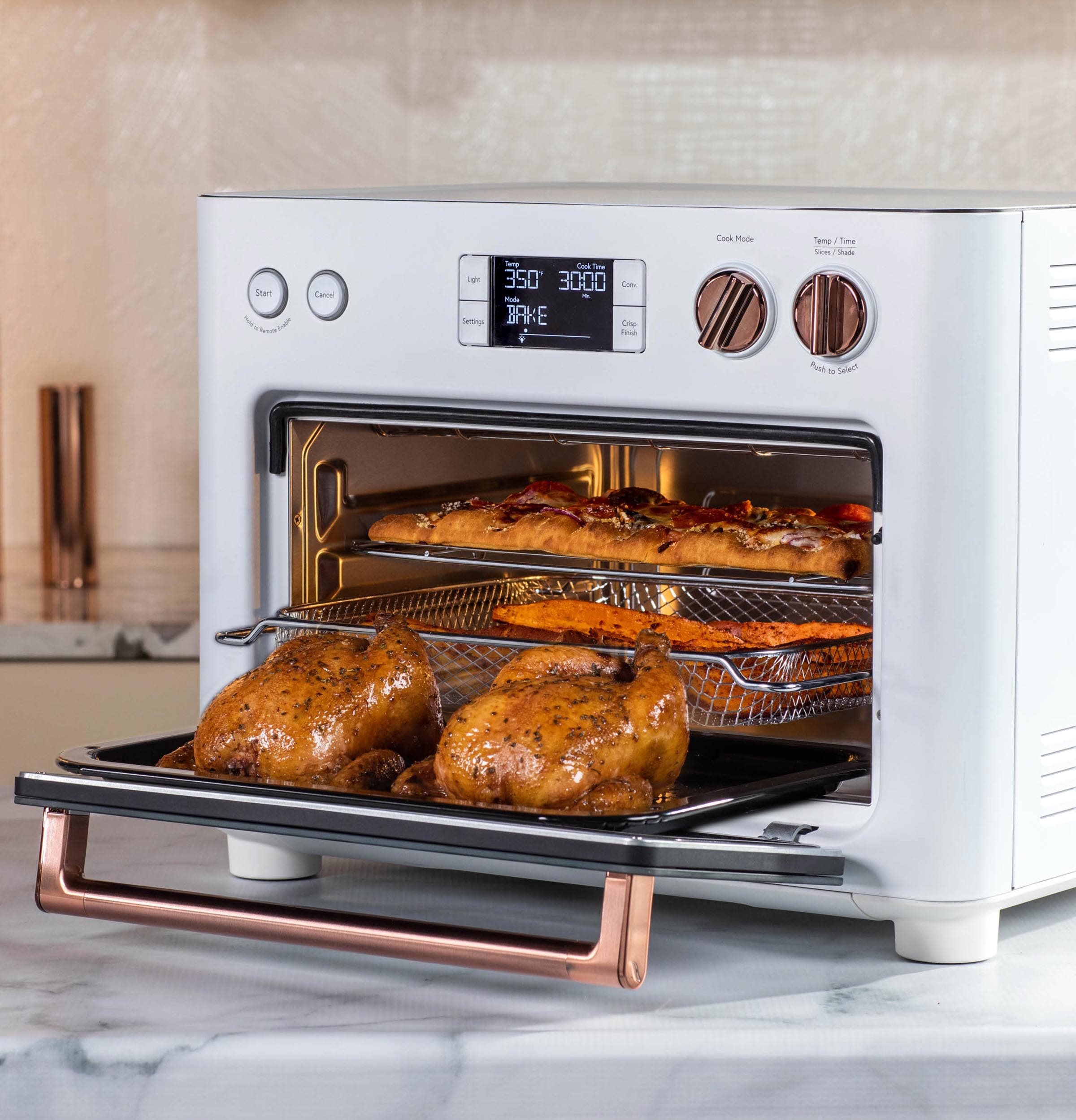 Package Contents: Toaster Oven; Heavy-Duty Wire Rack; Baking Tray; 12″ Pizza Pan; Air Fry/Dehydrate Basket; Crumb Tray