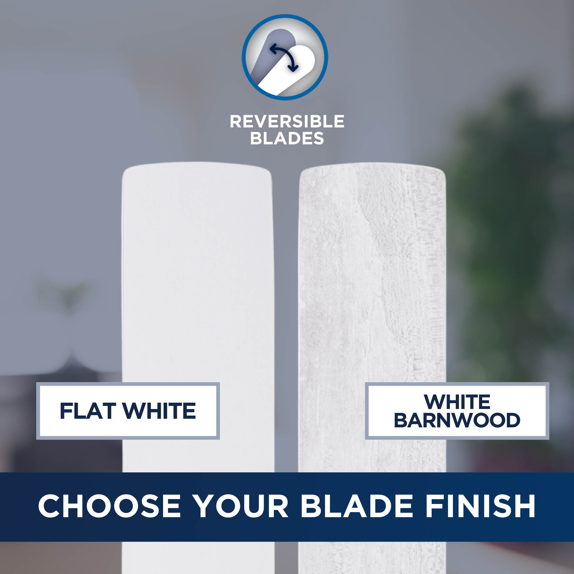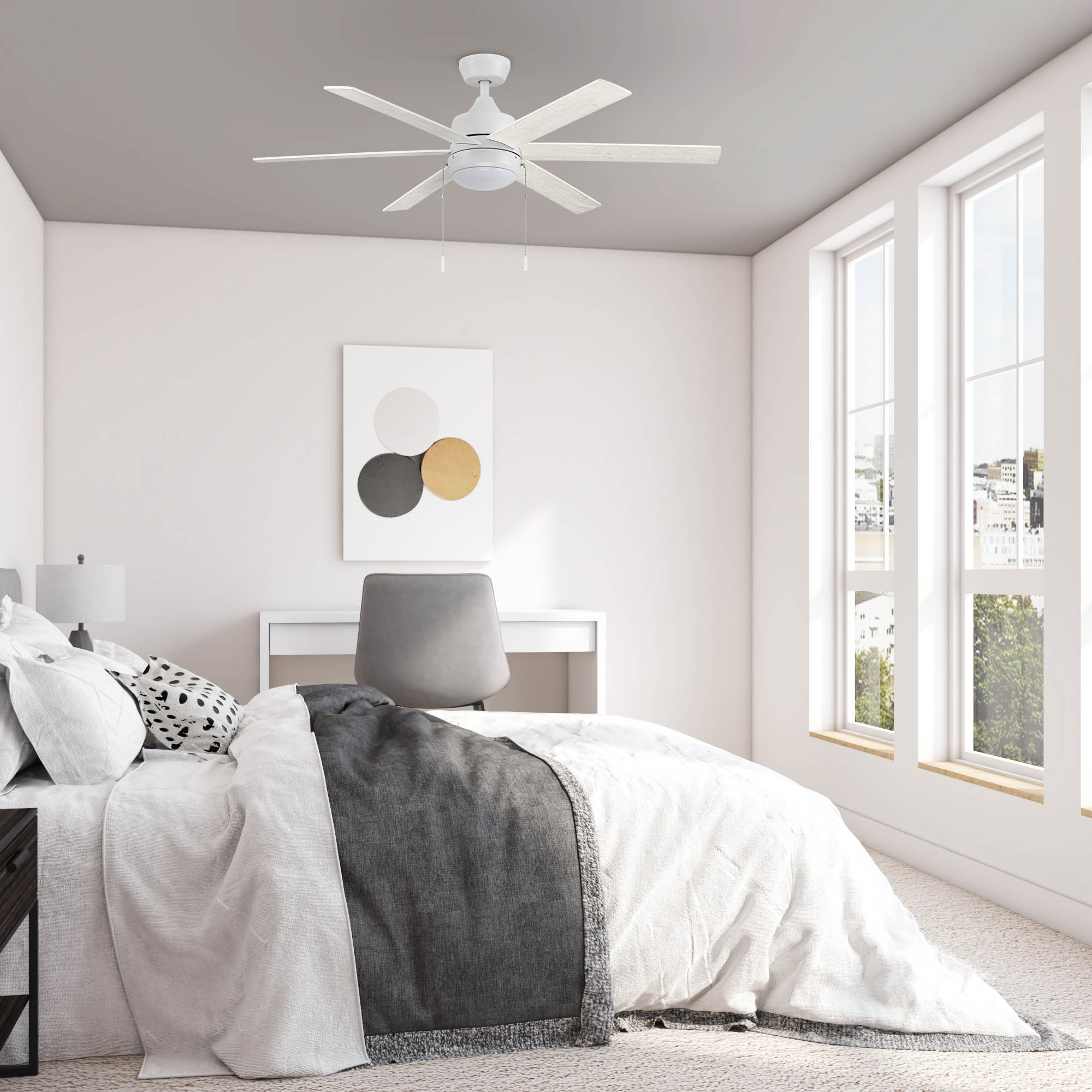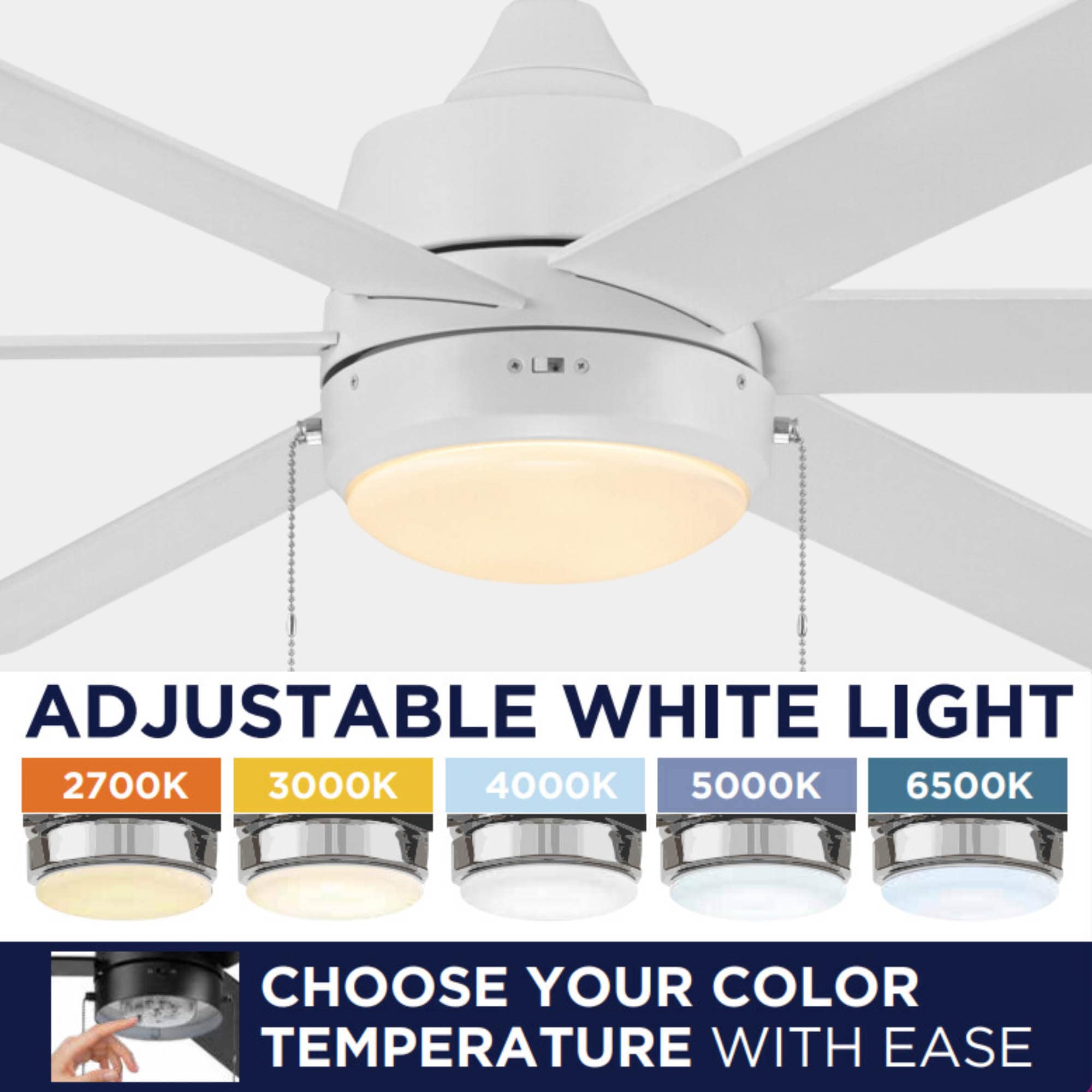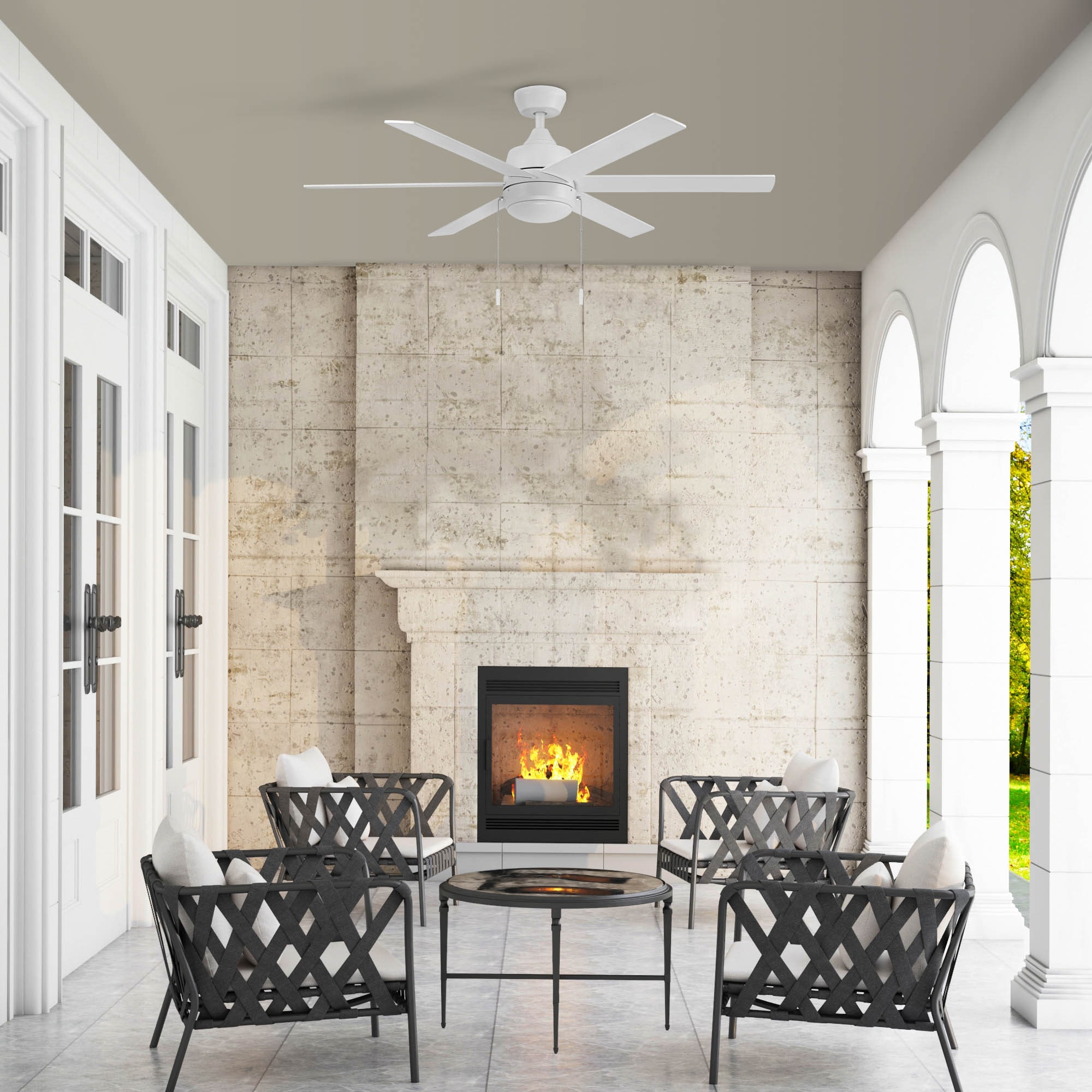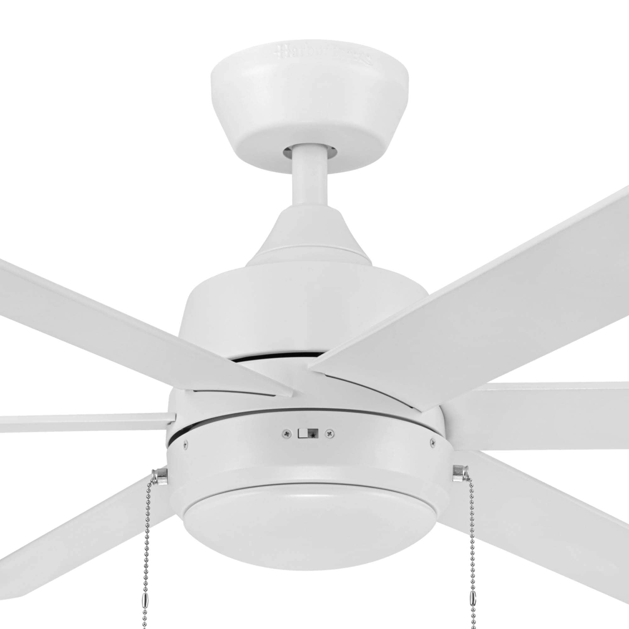 The Harbor Breeze Covedale is a 52 inch indoor/outdoor ceiling fan with lights, perfect for your medium to large sized modern space(s). This white ceiling fan features Easy2Hang installation, an integrated LED light kit and 6 reversible blades. With its three speed, reversible motor, this pull chain-controlled fan will provide comforting air circulation year-round. Harbor Breeze ceiling fans provide style, function, and illumination to help make your house a home.
