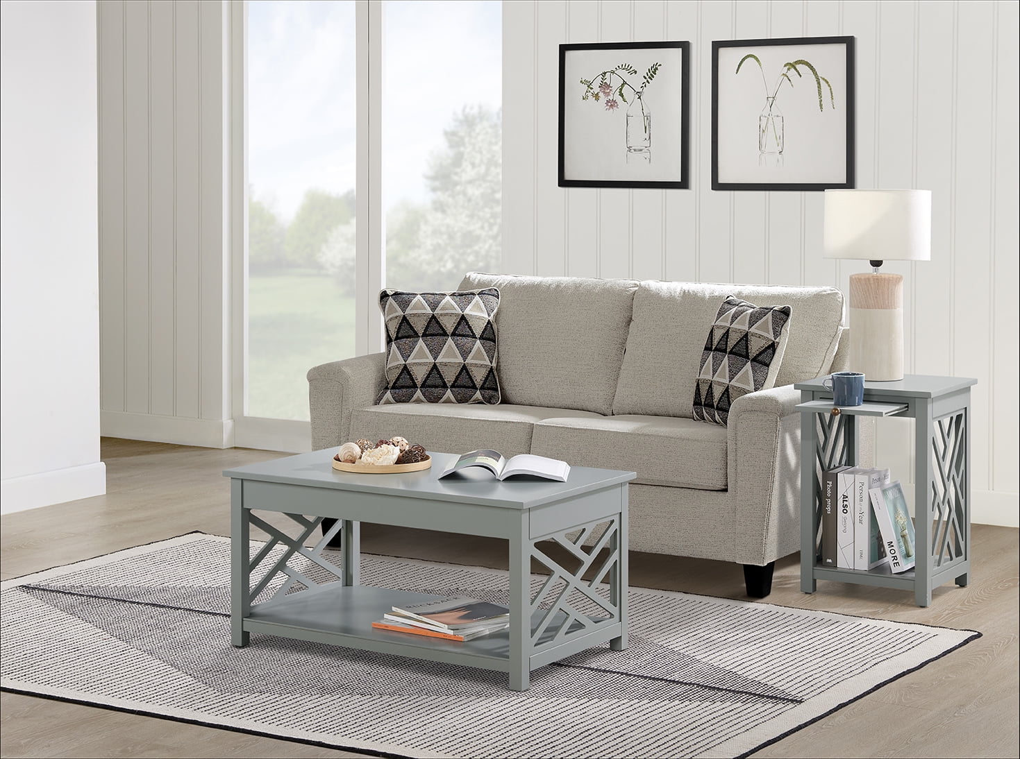[VERSATILE AND STYLIZED] This stylish collection of furniture works seamlessly in a variety of decorating styles, allowing you to accentuate your modern or traditional home design with its clean lines and decorative details [STORAGE & DISPLAY] Coffee table and end tables with tray shelves offer storage and display. Coffee table: 36″W x 22″D; shelf: 32″W x 18″D. End tables: 11 3/4″W x 11 3/4″D. Tray shelf: 10″W x 11 3/4″D. Perfect for versatile decor needs [GORGEOUS AND COLORFUL] Coventry Set comes in Dove Gray or White, perfect for adding cozy accents to apartments, lofts, or cottages. The open design creates an airy feel, enhancing the welcoming vibe of your home [EFFORTLESS ASSEMBLY & MAINTENANCE] Enjoy minimal assembly with the Alaterre Furniture Coventry Set; designed for quick setup and easy maintenance, ensuring your living space remains stylish and functional without hassle [SPACIOUS OPEN DESIGN] Offering versatility, this eye-catching set comes with a spacious open design that can accommodate a range of decorating styles