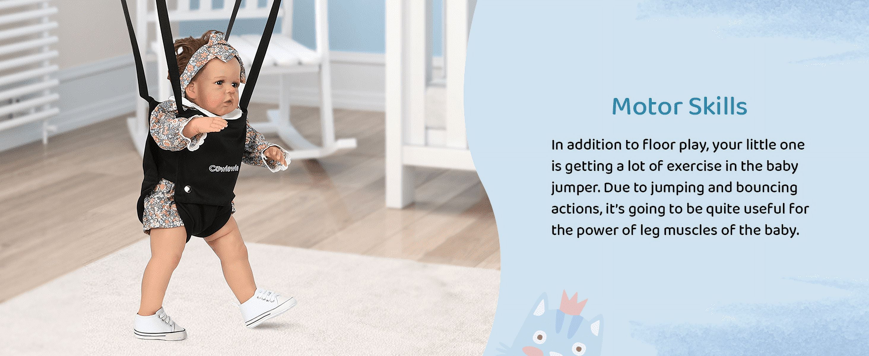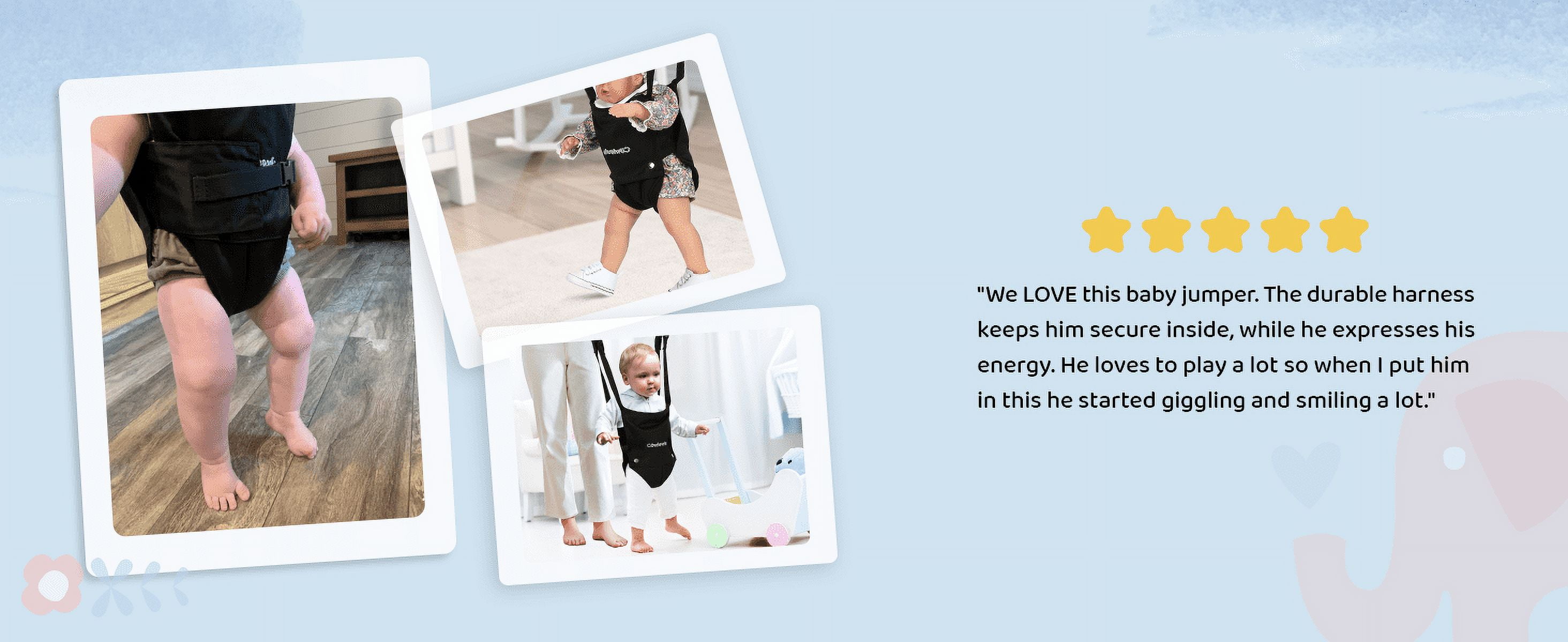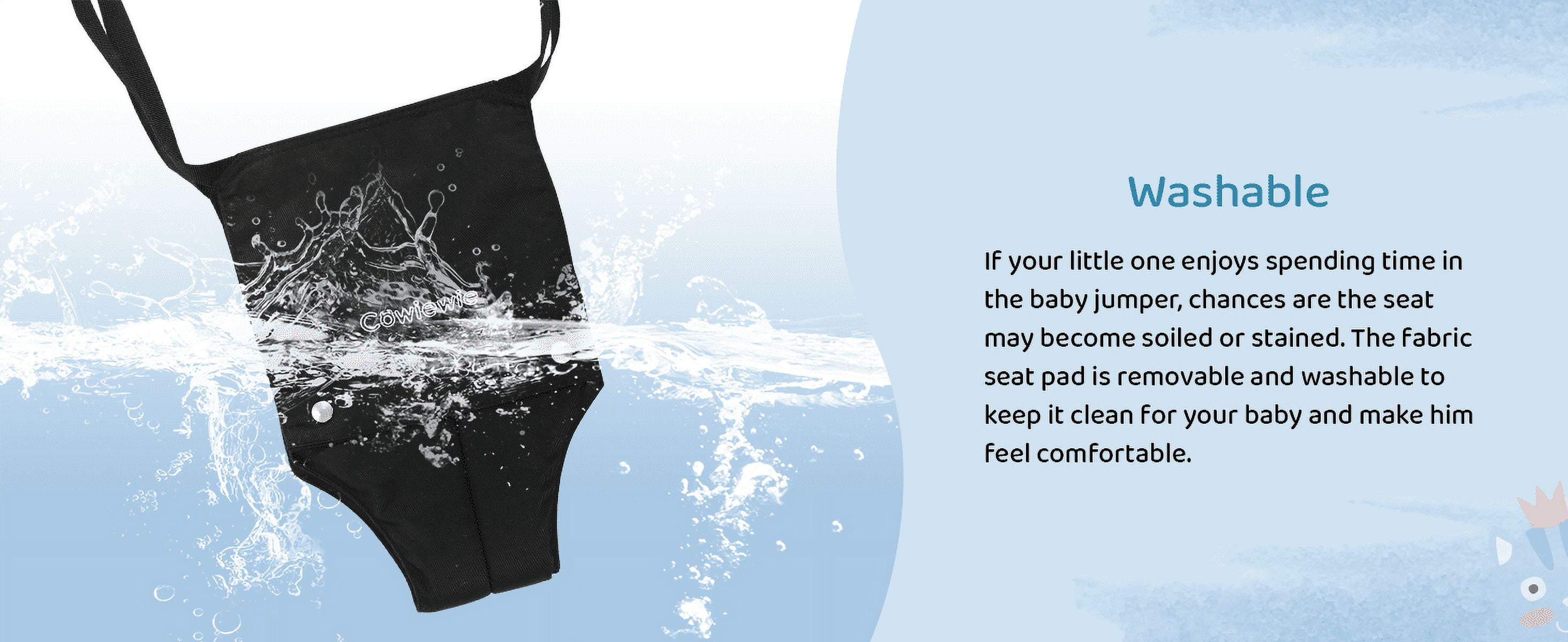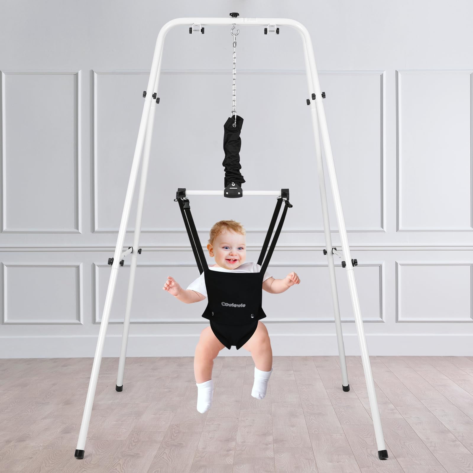 ➕【】The seat pad is breathable 3D mesh design and mutiple-layer cotton, no worry hurt inner thighs. The wide and firm velcro seat belt and jumper height is adjustable, as your baby gets taller(Chain adjustable up to 16in) ➕Helps supports baby’s spine firmly, ensuring correct, upright posture during exercise. Even a big baby easily has room to bounce. So you can ensure your baby’s feet are optimally positioned on the floor for proper development. 【】When your children too young to walk, the standing jumper helps infants build balance, develop coordination and rhythm, as well as strengthens leg muscles. Also baby gets tired from all the jumping so sleeps better. When your children start learning to walk, just take down the seat pad, then add it with a hand-held walker, you can easily assist your baby’s walking without breaking your back ➕【】This baby jumper is a lot safer than the one that you just hang above the door, no risk of child running into the door frame and getting hurt ➕ add cloth cover to the outside of the spring to prevent the hand from being pinched. The outer triangular frame is aslo so stable that it is difficult for even an adult male to shake it. Absolutely protect your baby safety! 【】 Clear and detailed instructions, you only need no more than 10 minutes to assemble it. As well as fold up when finished. Assemble size: 40.15x 42.9in, package size: 27.9×13.5×3.7in, package weight: 15.5lb Because of its simple fold-flat design, perfect for on-the-go use, whether that is to grandma’s house or on your next camping trip. It will fit in the trunk of your car while still allowing you enough room for your other luggage. ➕【Warm Tips】The jumper can hold up to 50lb (22kg), suitable for 6-24months infant. Expert suggest that a baby can start using a jumper once they have strong, independent head control. Jumpers provide great fun for babies and a break for parents. Mom working next to her, quietly enjoying her “me time.” It allows the baby to turn around and watch you as you clean house etc and gives the baby independence to move and turn and jump. Let baby see the world from a new perspective. Hearty chuckles and big smiles whenever baby in it. Nothing sweeter than the sounds of a happy baby getting exercise ➕【】Soft seat pad is removable and washable,very convenient, no need to worry about cleaning ✅【】ASTM F963-17 Standard, meet Consumer Safety Specification for Toy Safety ➕Pipe diameter:25mm