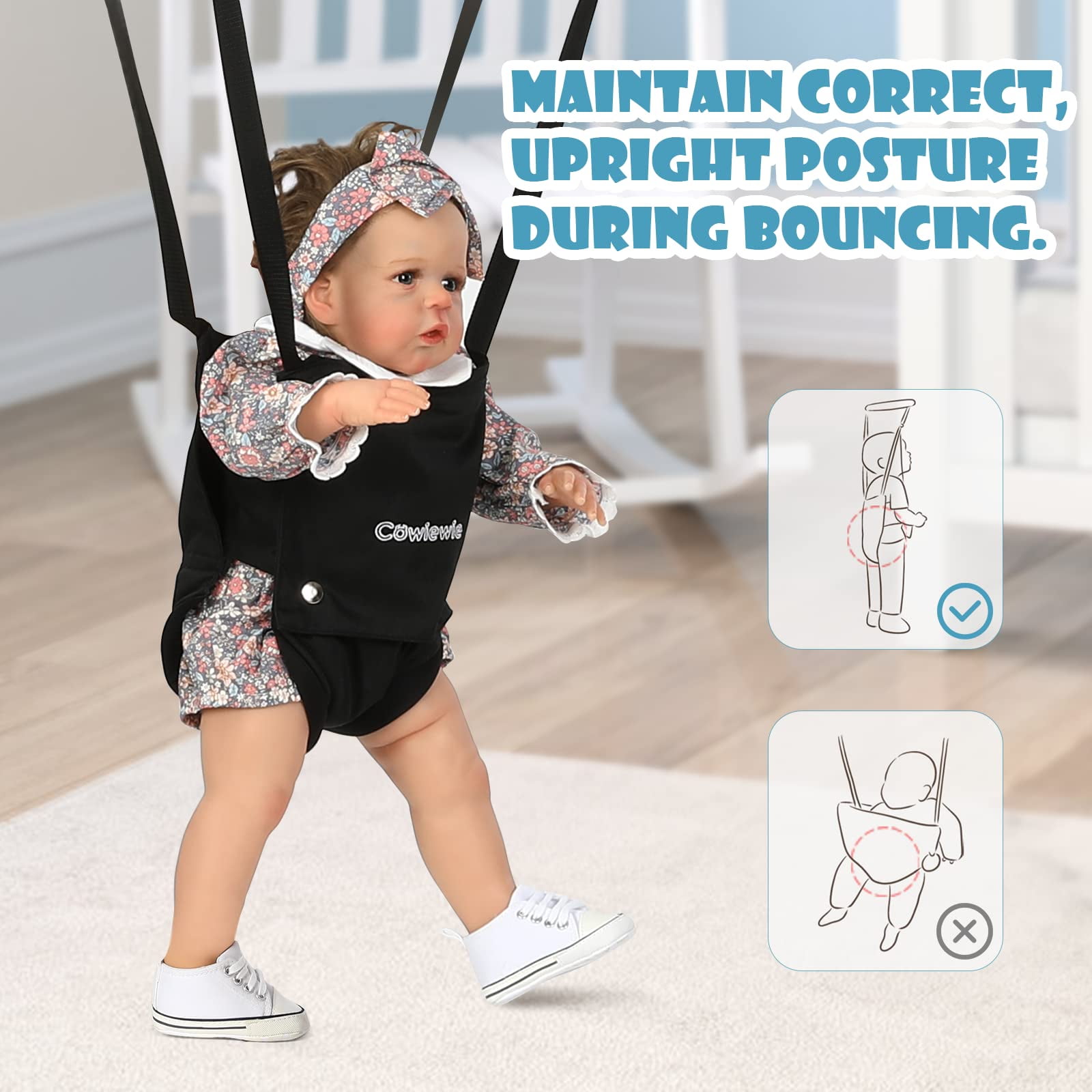 Cowiewie 2 in 1 Baby Jumper Bouncer or Walker for Activity Center for 6-24 Months Infant, White+Black
