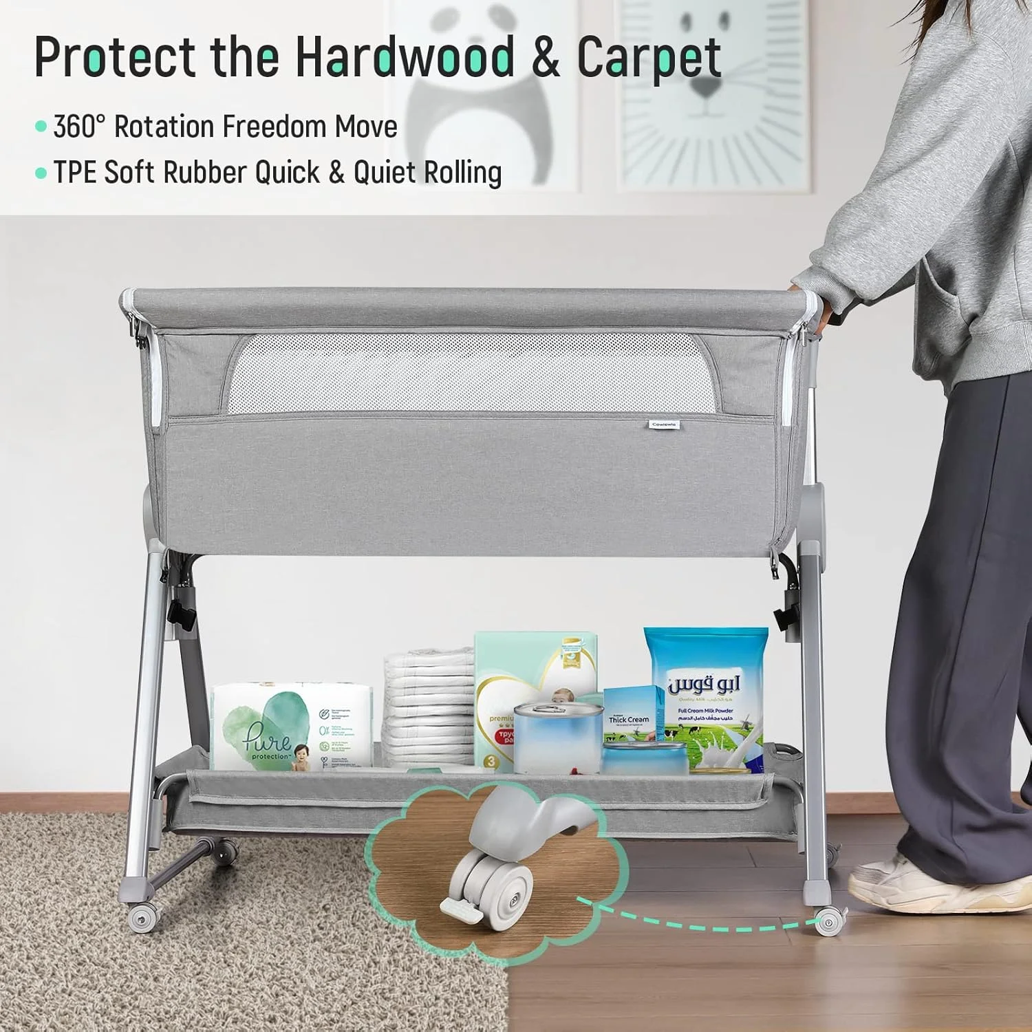 Cowiewie Bassinet for Babies Large Volume and Mobile with Storage Basket Bedside Sleepers for 0 to 6 Months Baby Infants