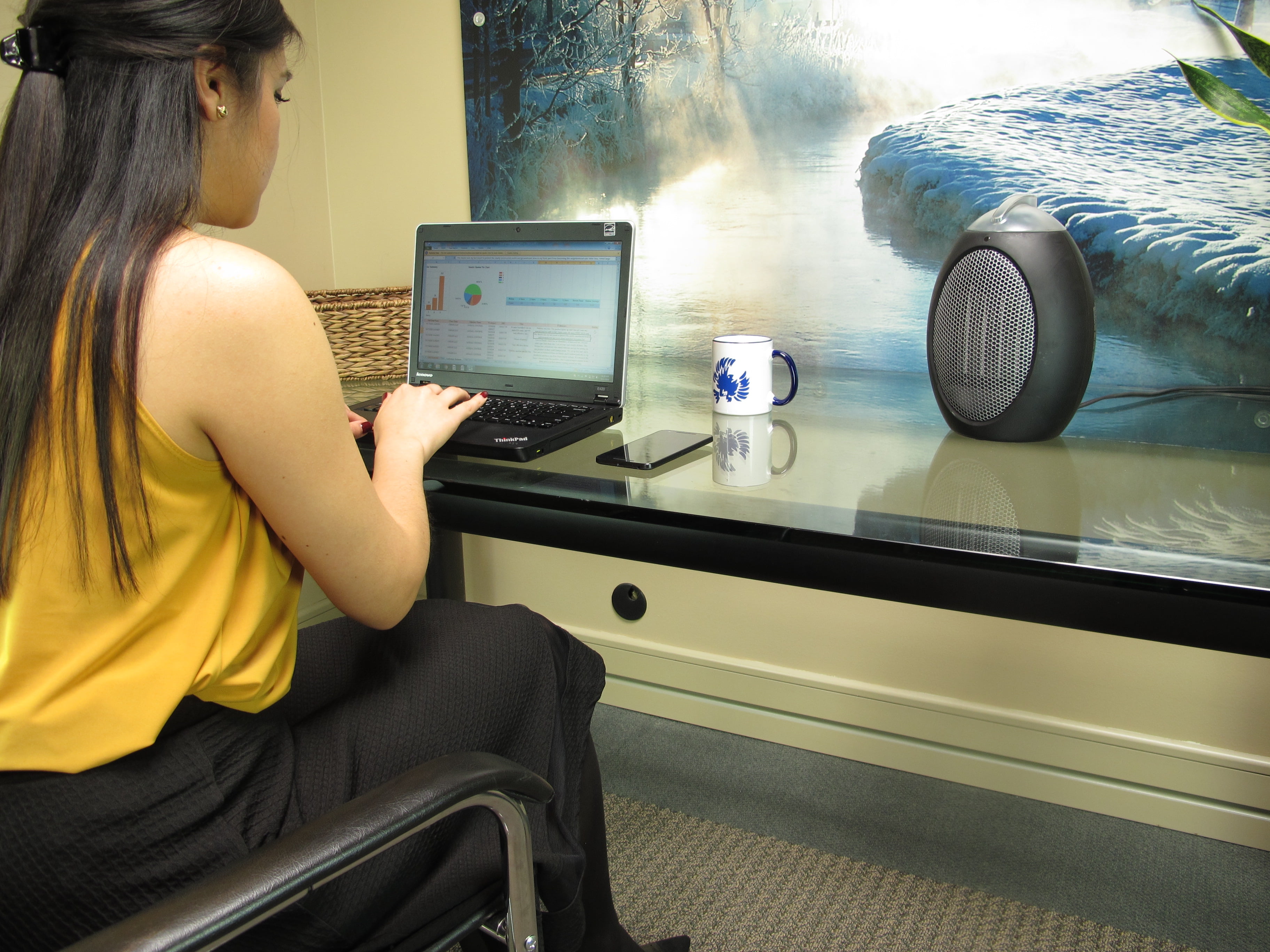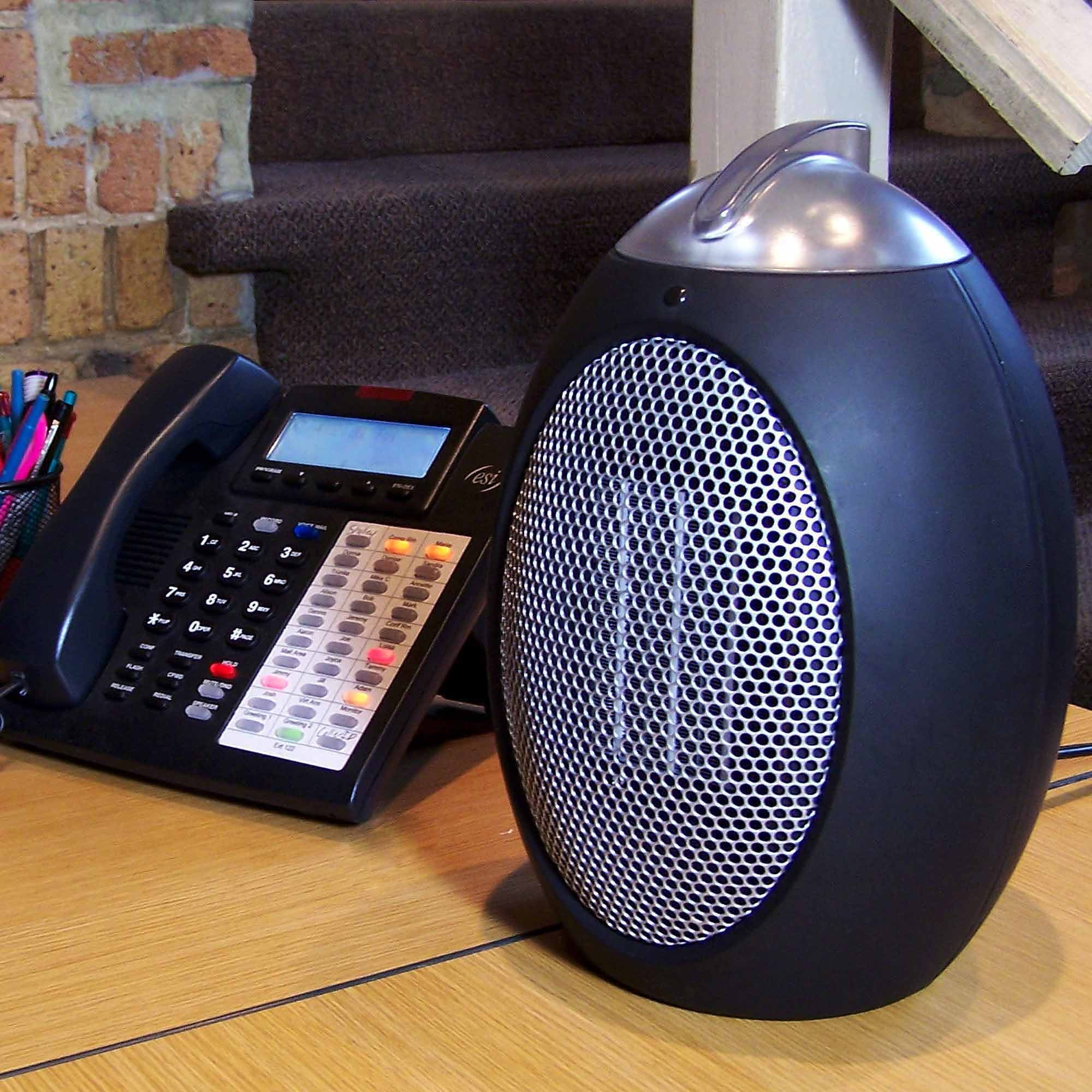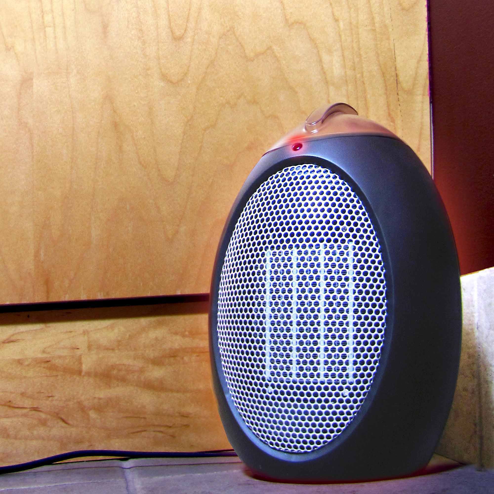 Energy-saving personal space heater gently warms a small to medium sized room or space, allowing user to lower the thermostat & stay warm while saving money & electricity.