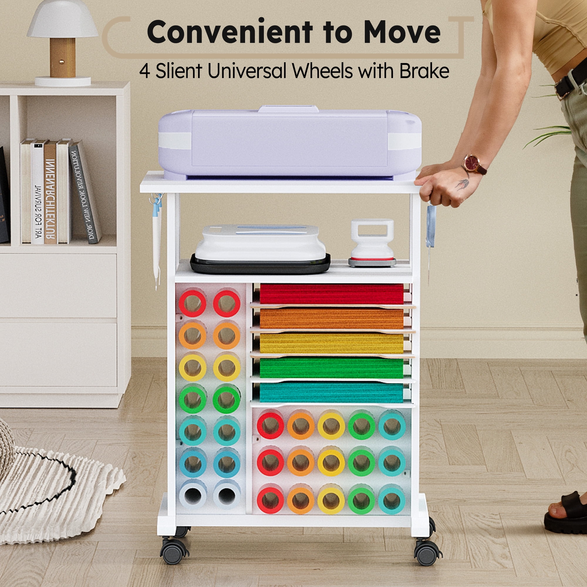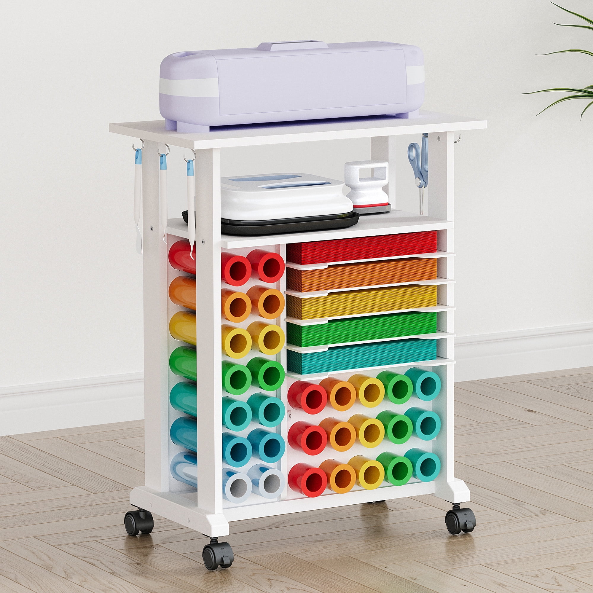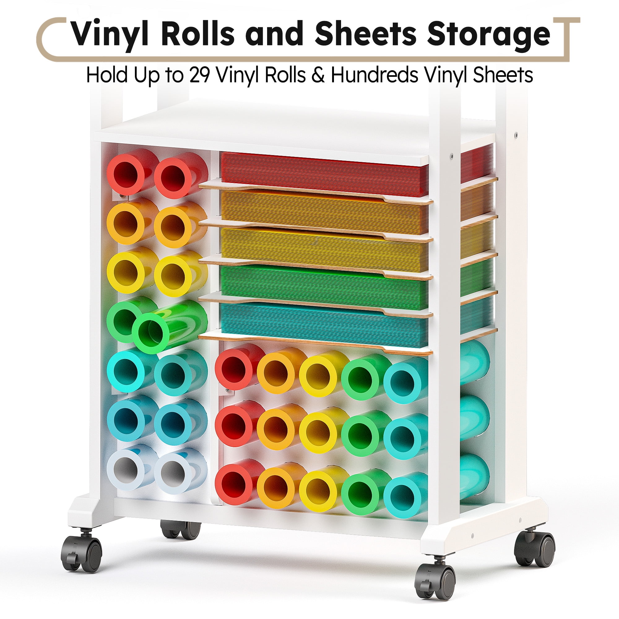 Crafit Craft Storage Rolling Cart with 29 Vinyl Roll Holders and 5 Paper Storage for Craft Room